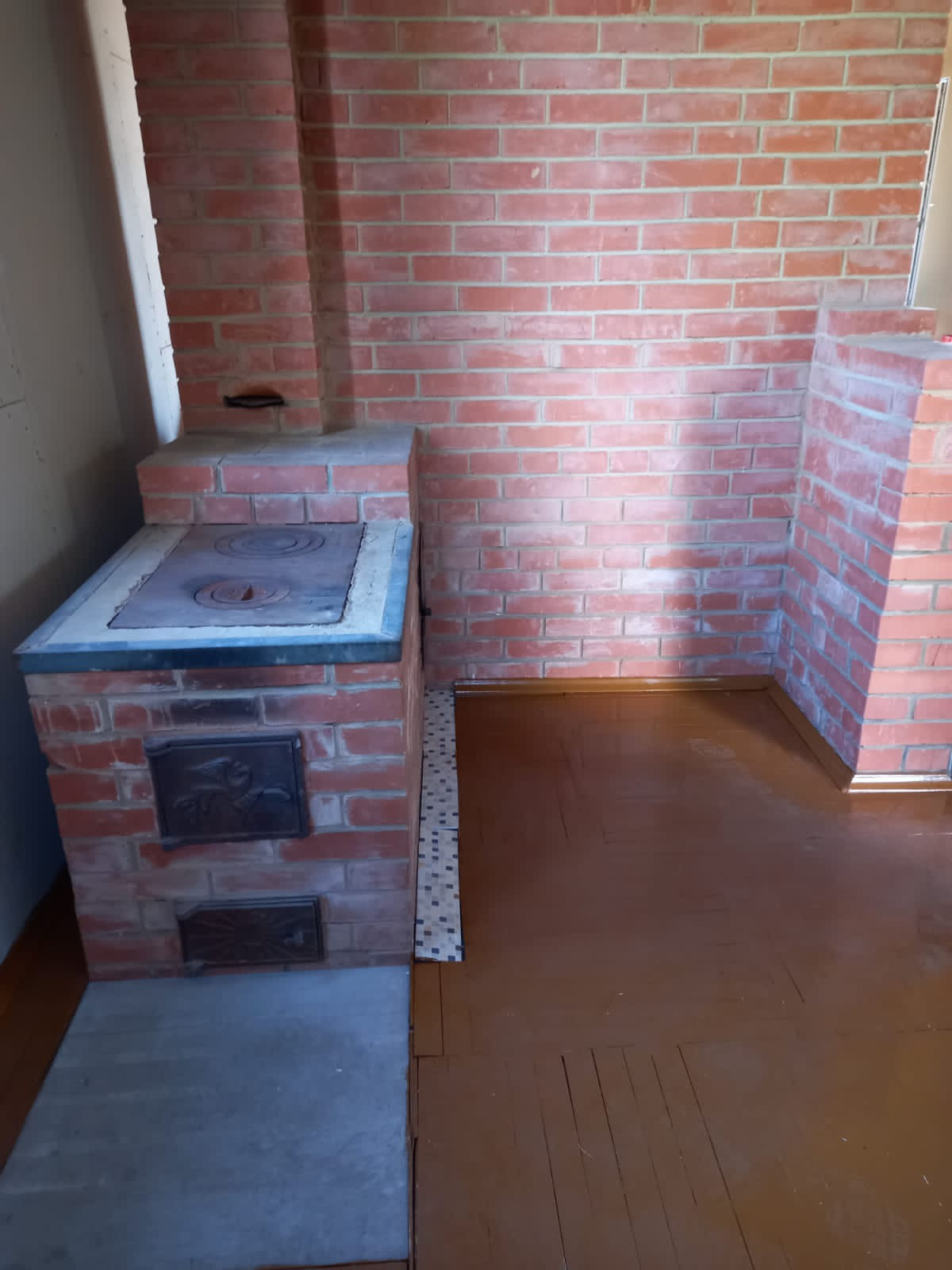 Первый этаж: одно пространство с 8 окнами. Стены обшиты ГКЛ. Печь. Деревянные полы, линолеум…