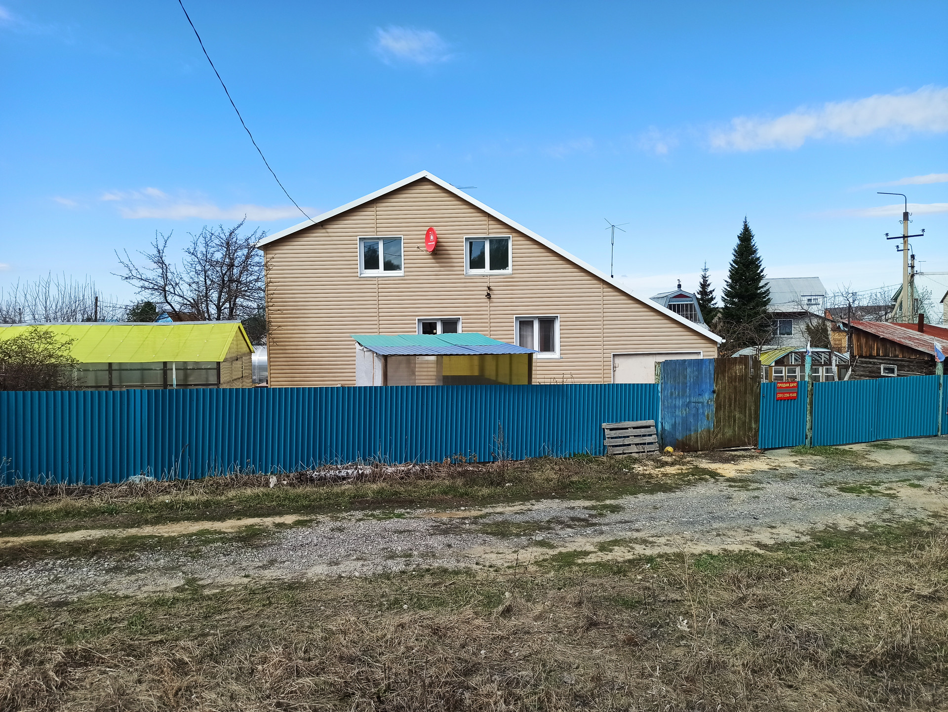 Дача расположена на главной улице, в 50 м от правления, охрана, видеонаблюдение, лес через дорогу, река вдоль всего СНТ, остановка автобуса в 20м, пропускная система въезда.