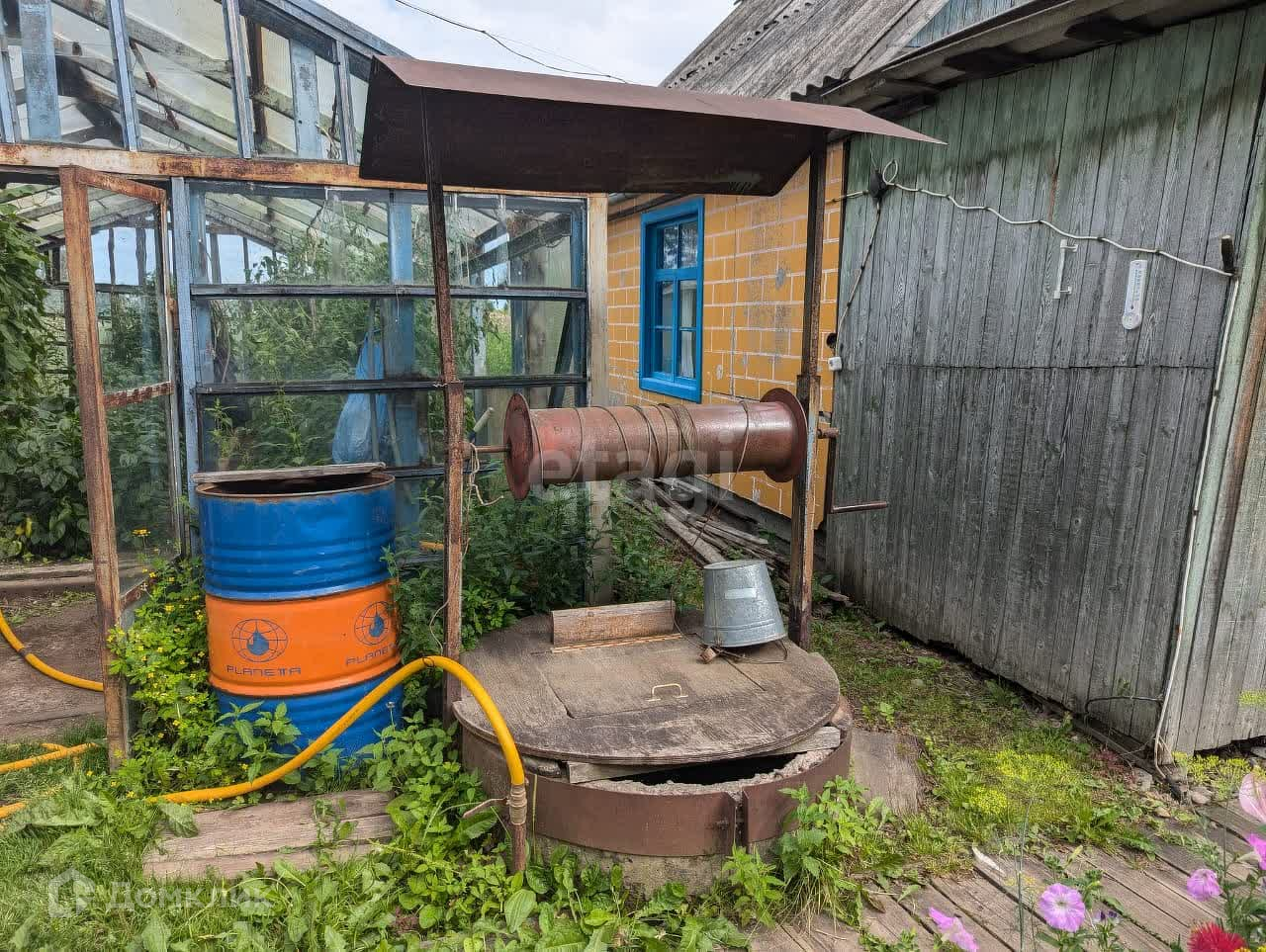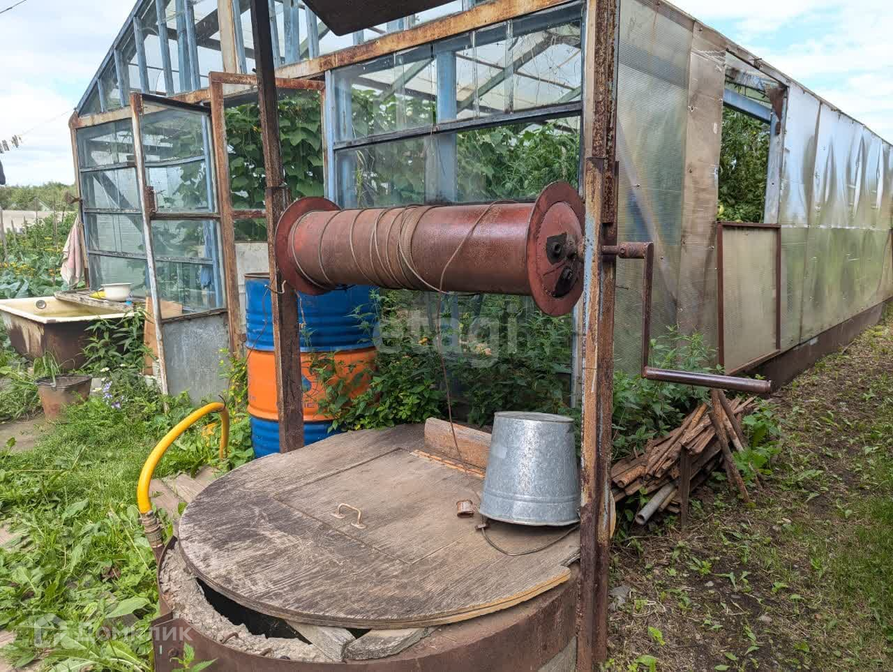На участке имеется: дом. кухня, веранда, баня, сарай, контейнер для хранения инструмента, колодец, теплица, парник, бак под воду и бочки для полива, а также летний водопровод. На участке отличная плодородная земля, торф и перегной.
