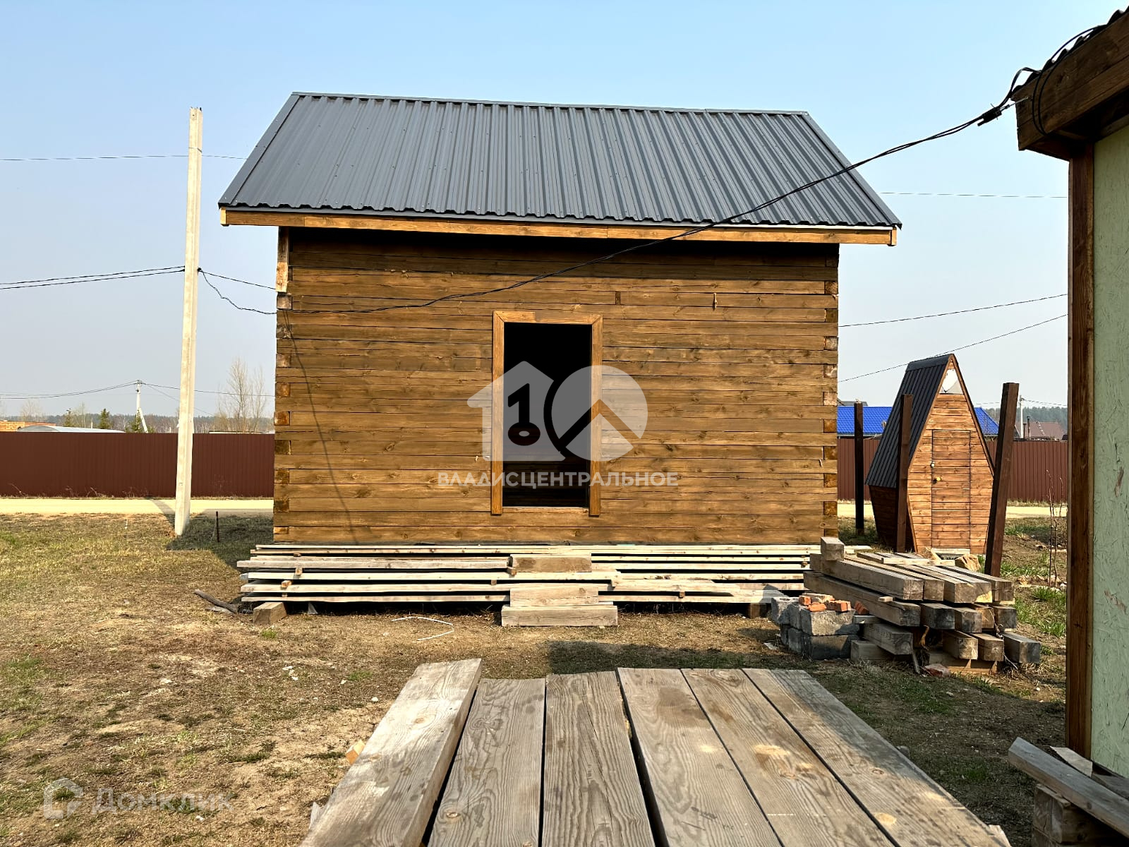 Также на участке построена утепленная бытовка , внутри обшита вагонкой ( 4м*2м).