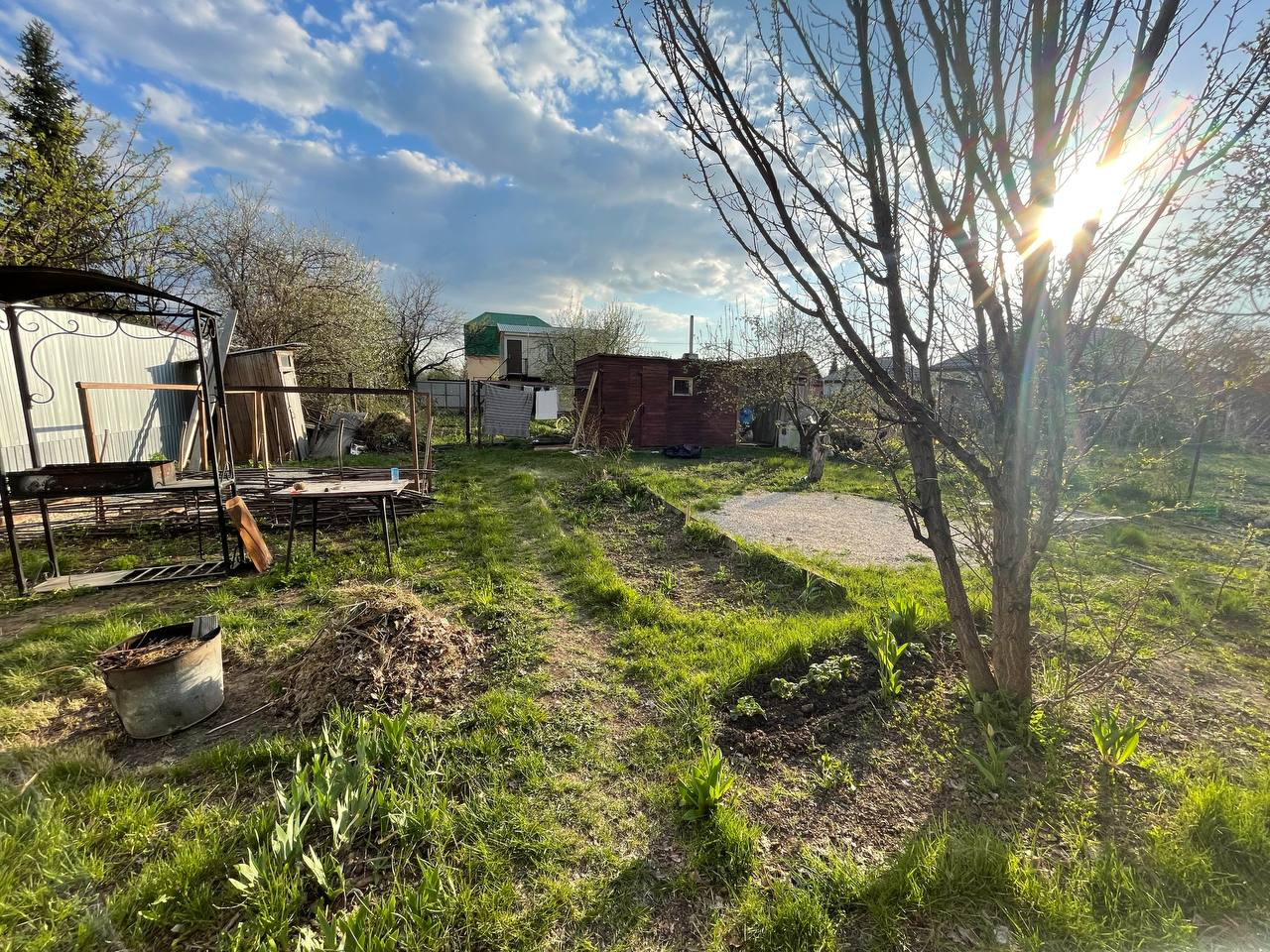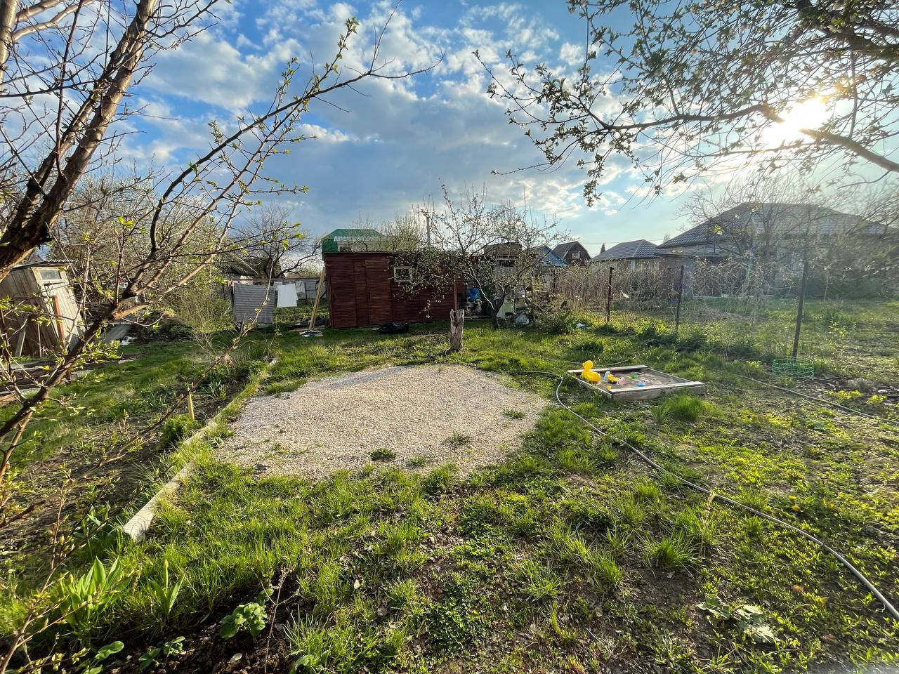 Участок 4 сотки в собственности. Участок ухожен, имеются плодовые деревья: яблони, груши и многое другое. На участке новый хозблок, биотуалет, скважина, душ. Свет круглый год, рядом проходит газ.