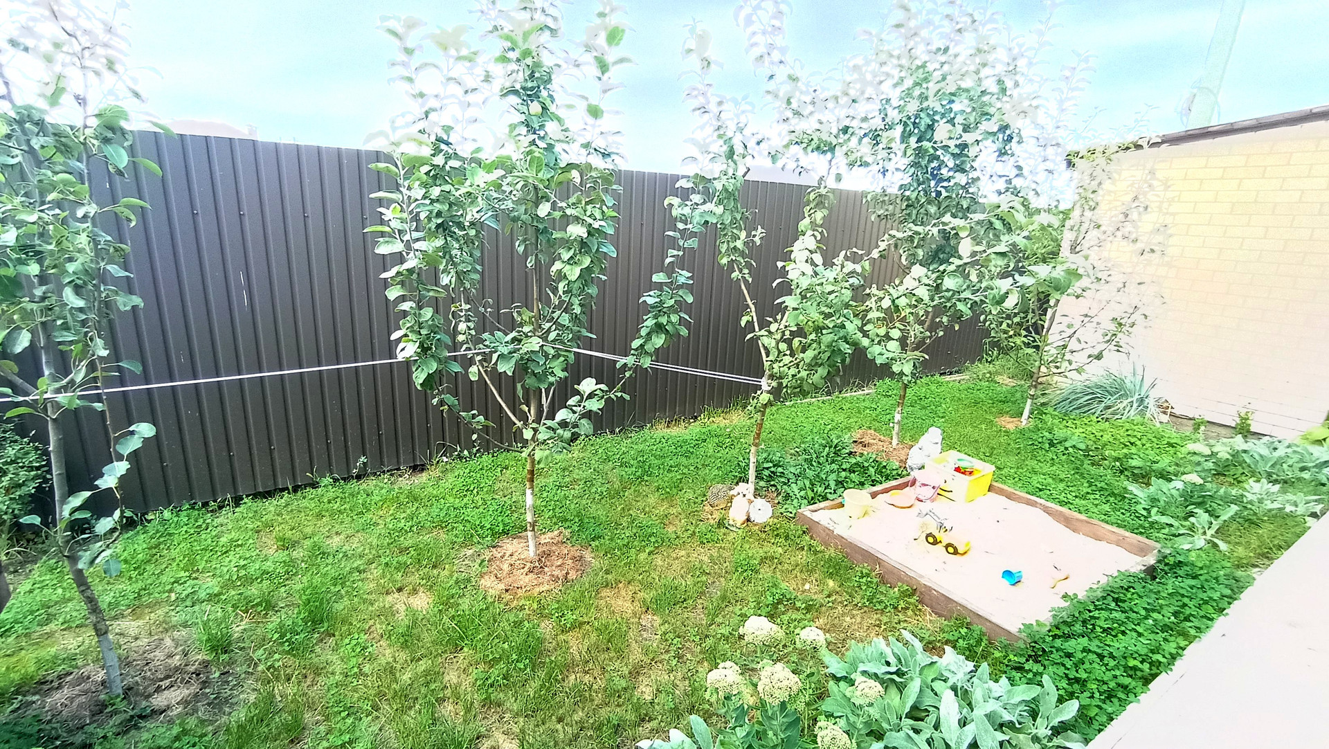 По периметру  высажены плодовые деревья.