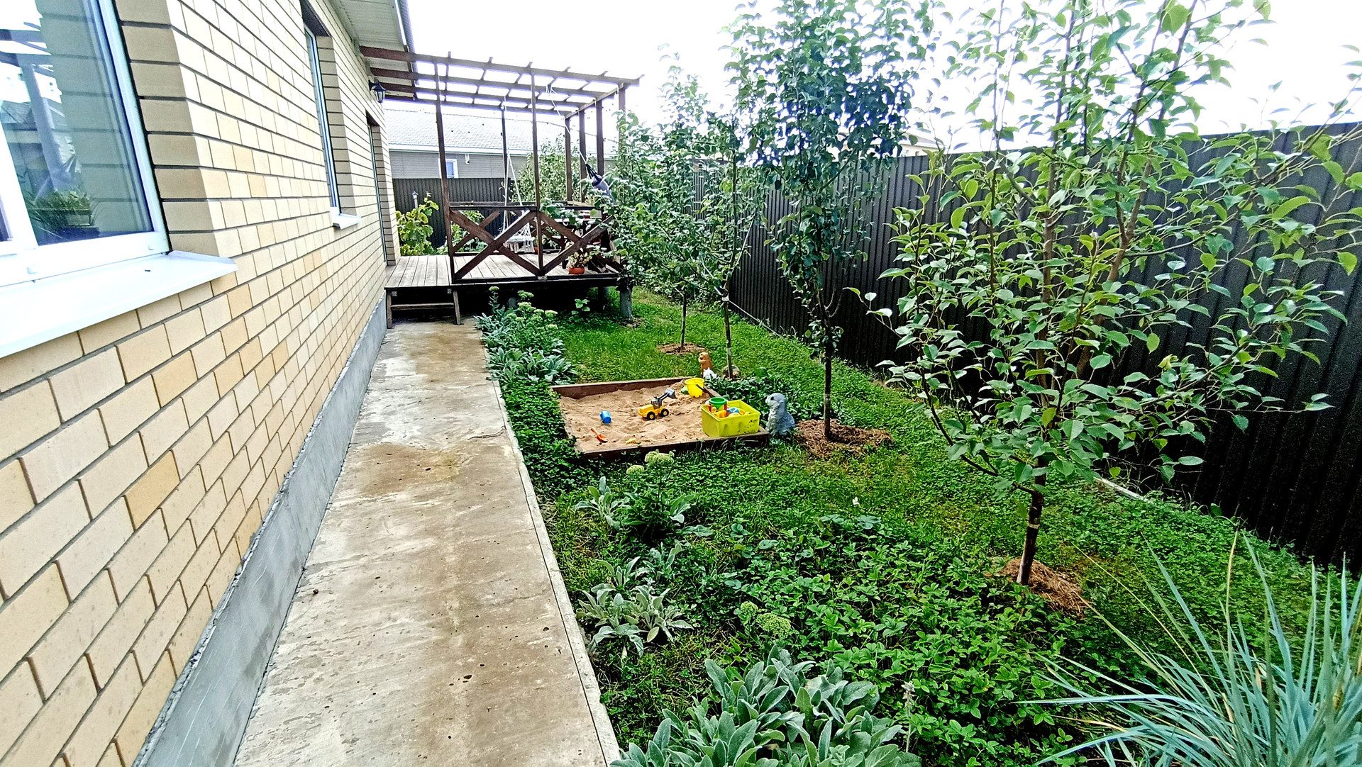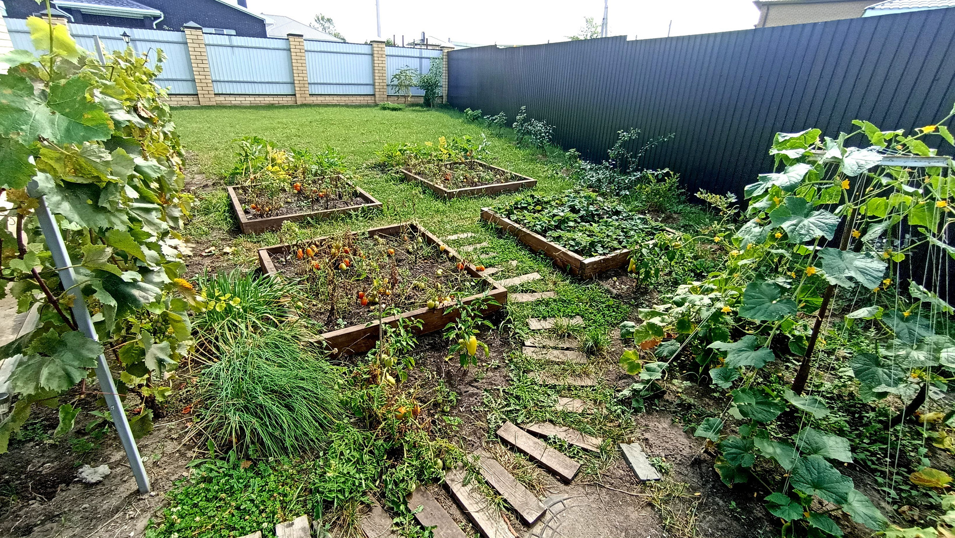 Благоустроенный земельный участок с зонами для отдыха, барбекю, зона для выращивания овощных культур и ягод, детская площадка, место для машины.