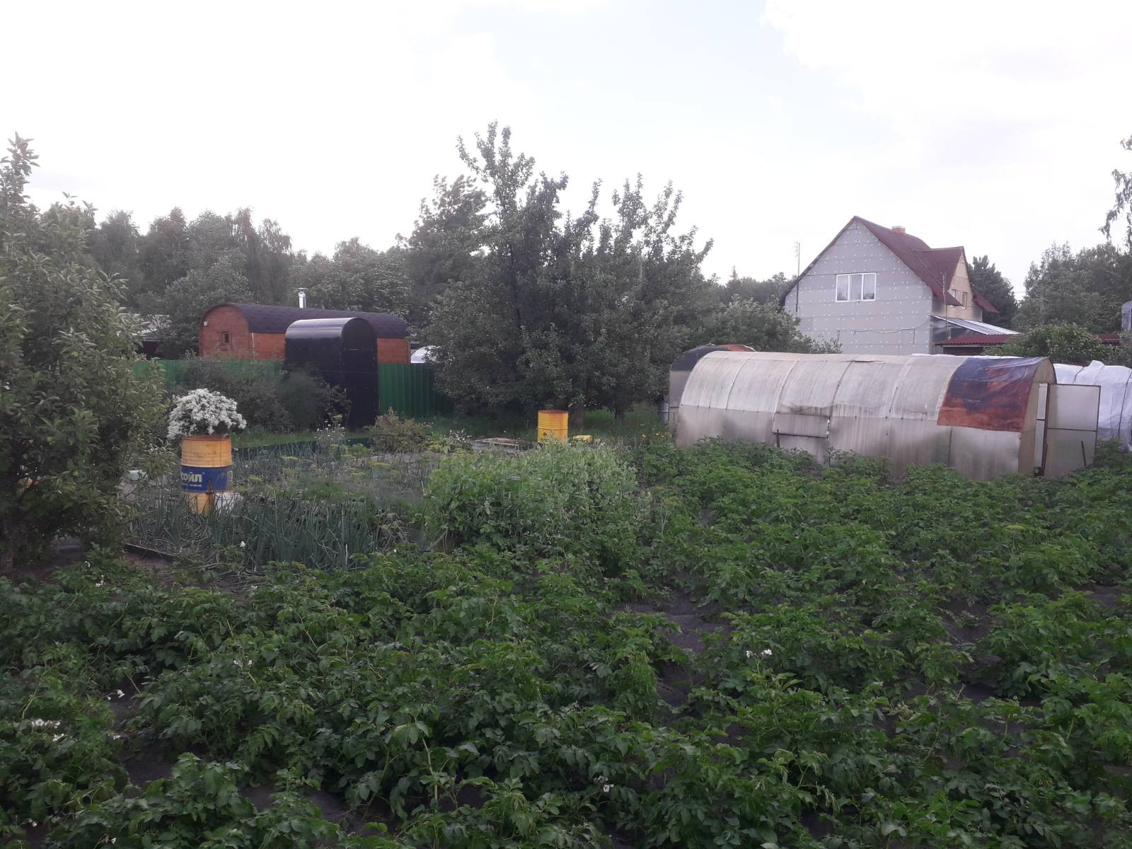 Земля плодородная, участок полностью разработан. Из насаждений: 3 яблони, черемуха, малина, смородина, посажен картофель, засажены теплицы. За всем этим постоянно ухаживают, Вы сможете собрать урожай уже в этом сезоне.