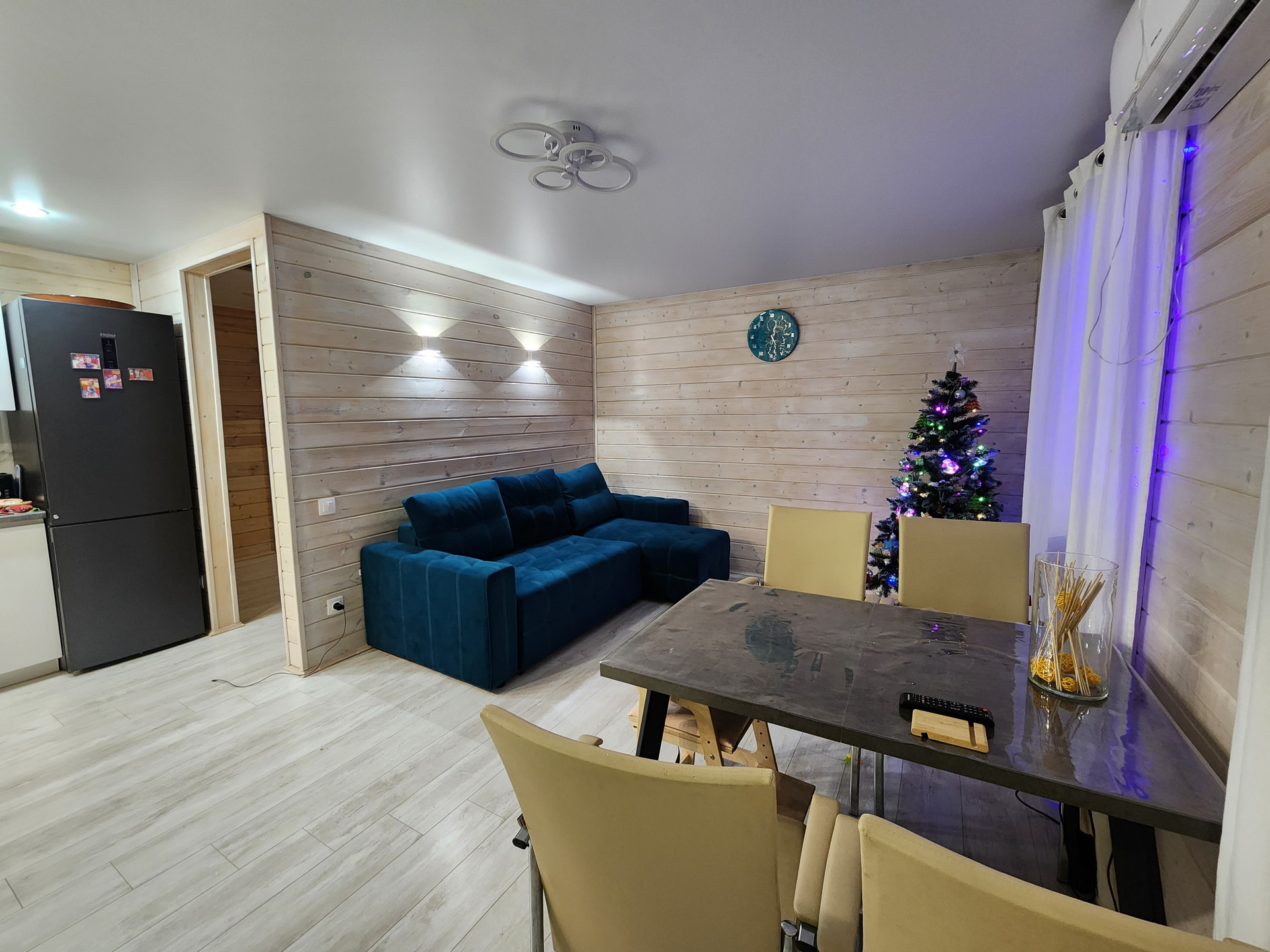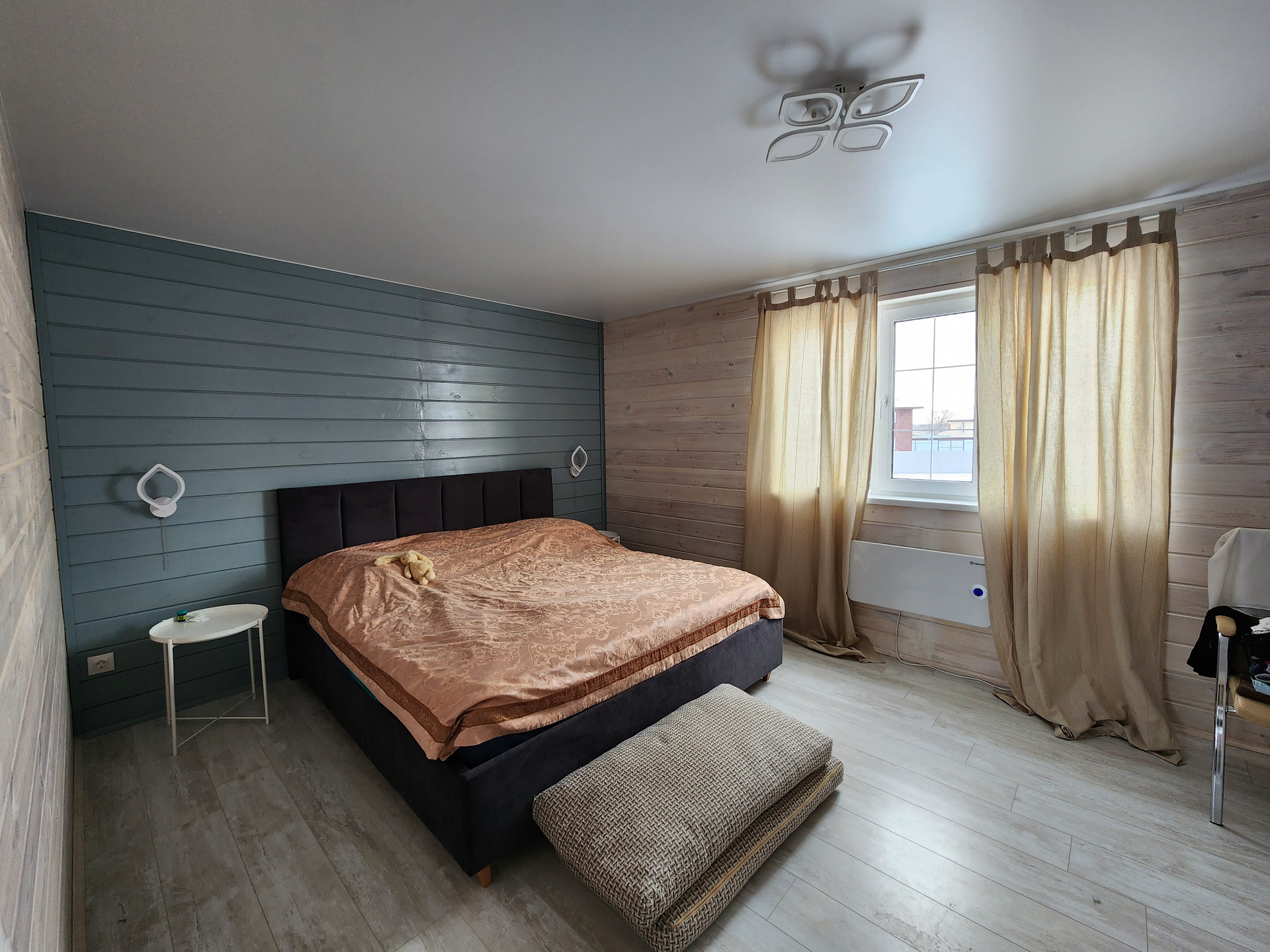 - Дом из сип панелей , утеплённый минеральной ватой , оштукатурен., 200 мм минеральная вата между панелями, снаружи утеплен минеральной ватой 50мм.