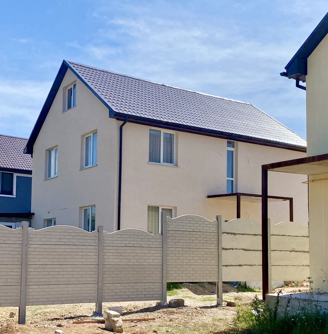 Асфальт до дома,уличное освещение, въезд в улицу через автоматические ворота. Рядом магазины,остановка автобуса и школьного автобуса. На видео пример такого дома с отделкой под ключ.Звоните,будем рады рассказать и показать