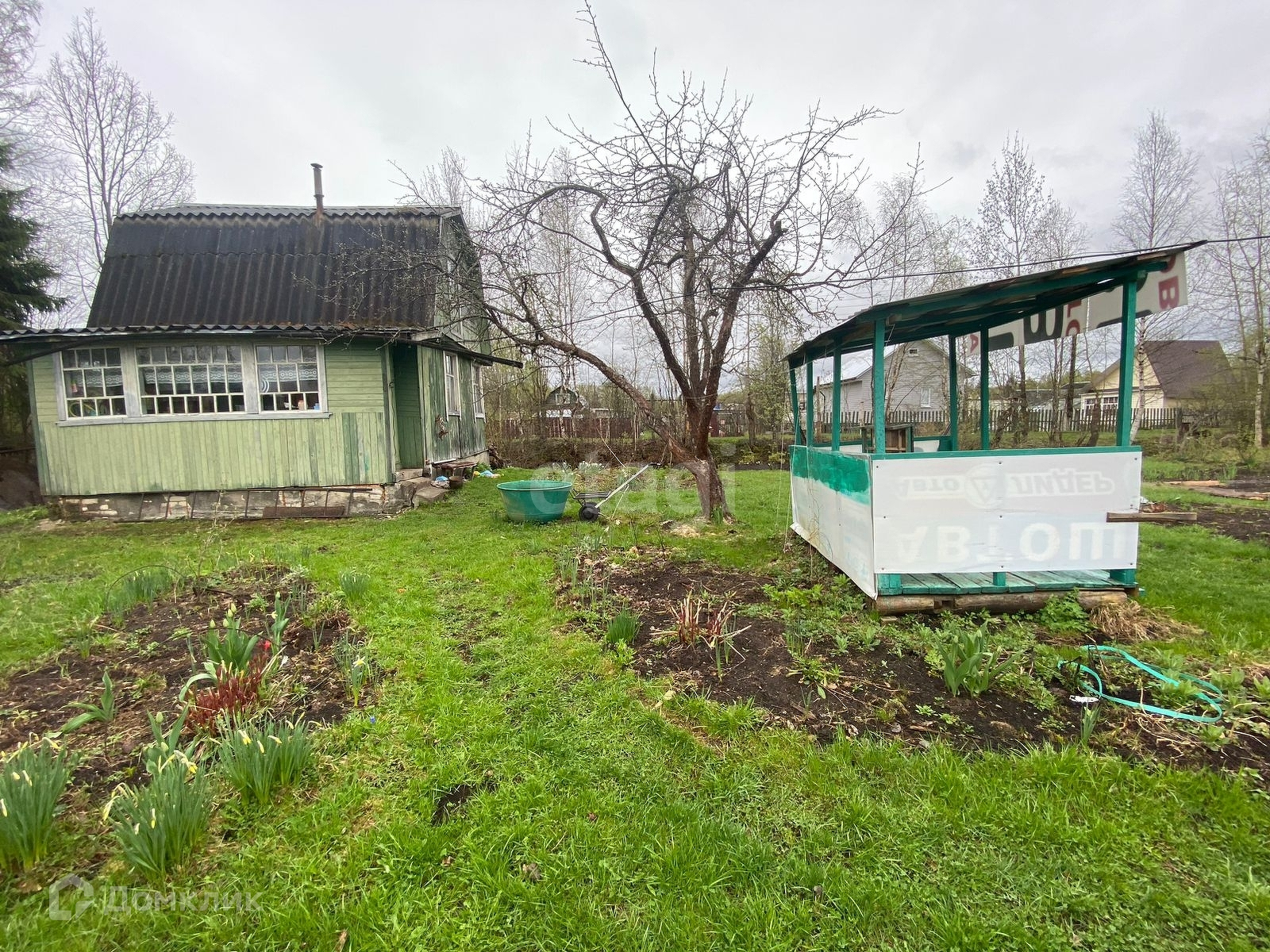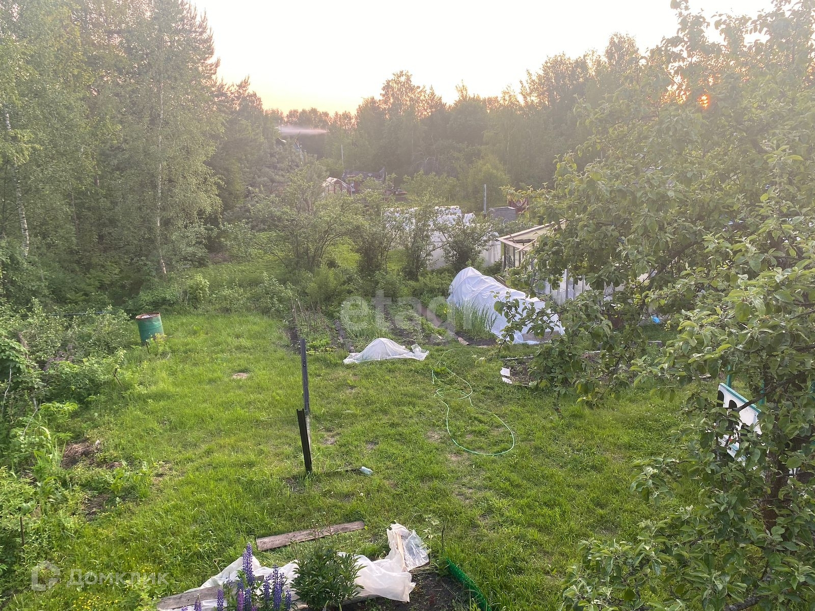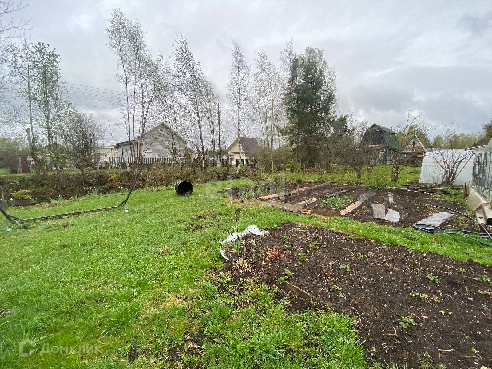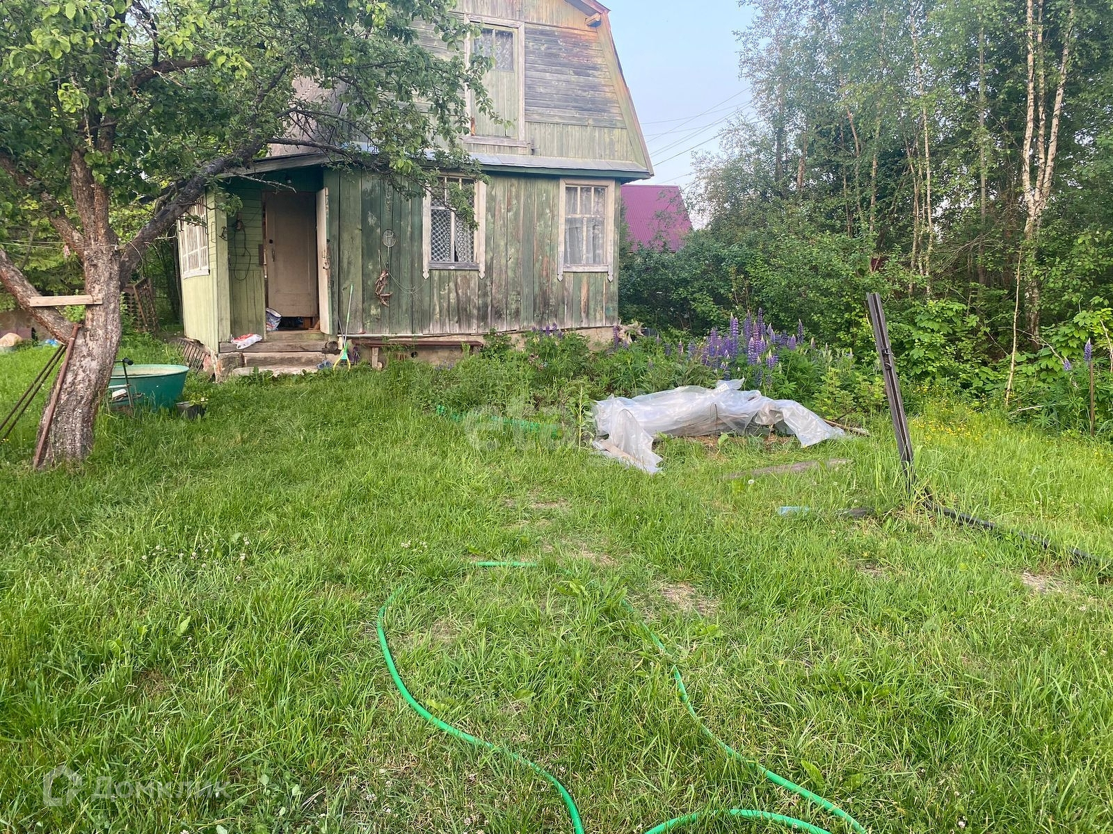 Продается дачный участок на 6 сотках. На участке расположен небольшой 2-х этажный жилой дом с печным отоплением, в летнее время есть водопровод. Также на участке имеется небольшая новая уютная баня, теплица и беседка для вечерних посиделок. Дом конечно требует ремонта, но уже сейчас в нем можно жить. По участку посажены плодоносящие кусты красной и черной смородины, крыжовника, клубники, малины и две яблони. Участок высокий, сухой. Рядом с участком ручей. Подъездные пути хорошие.