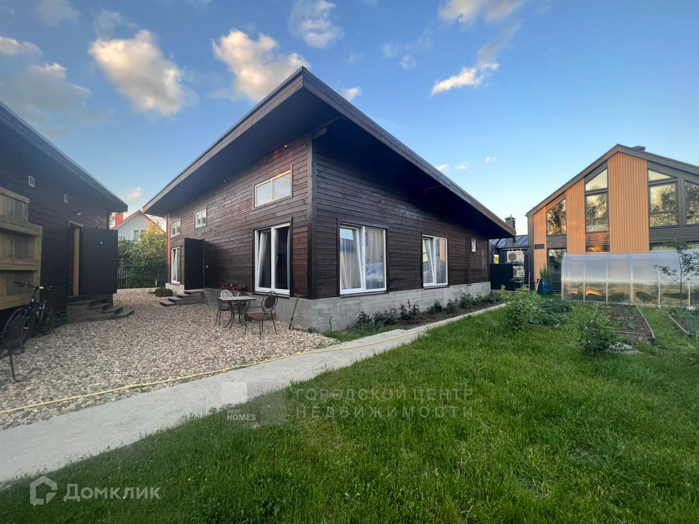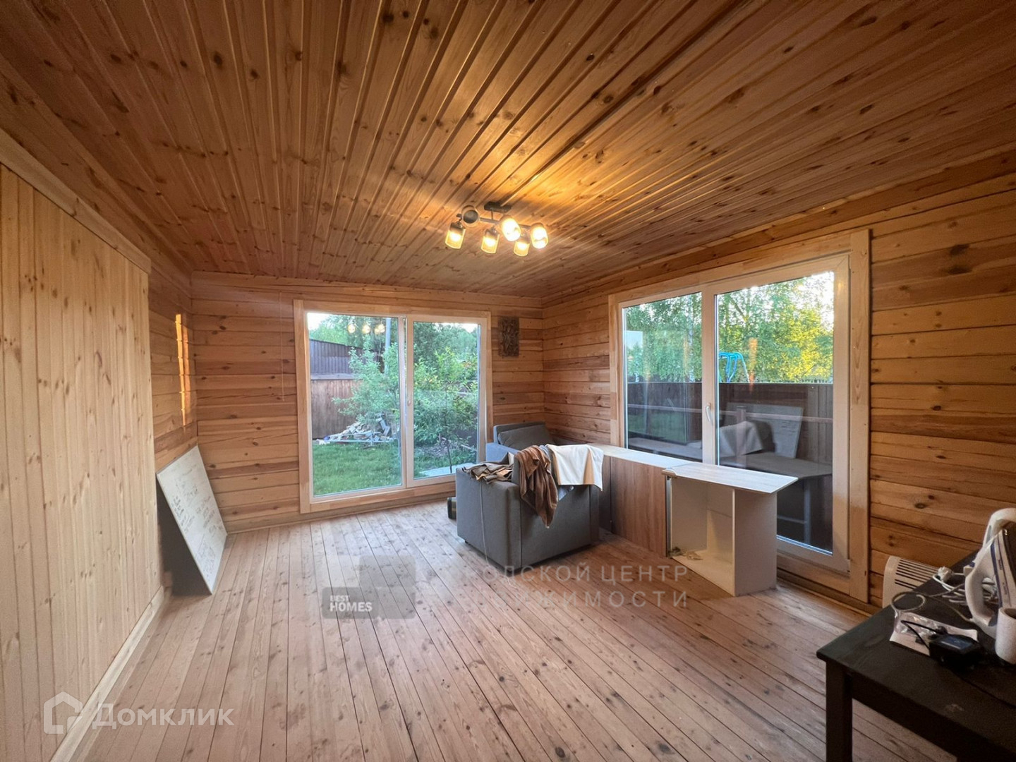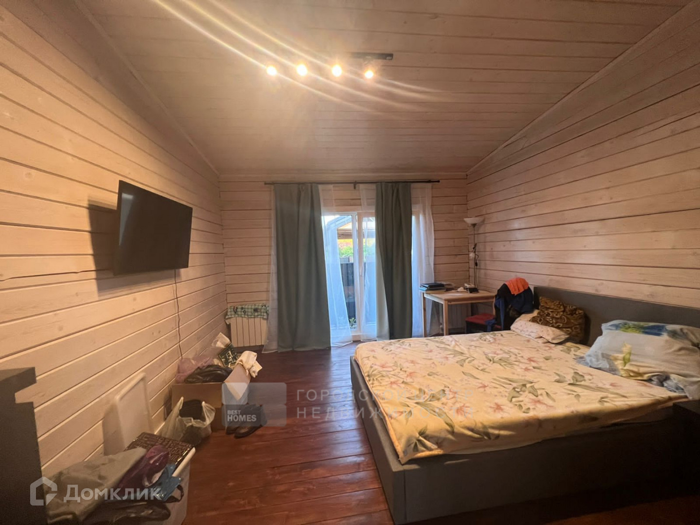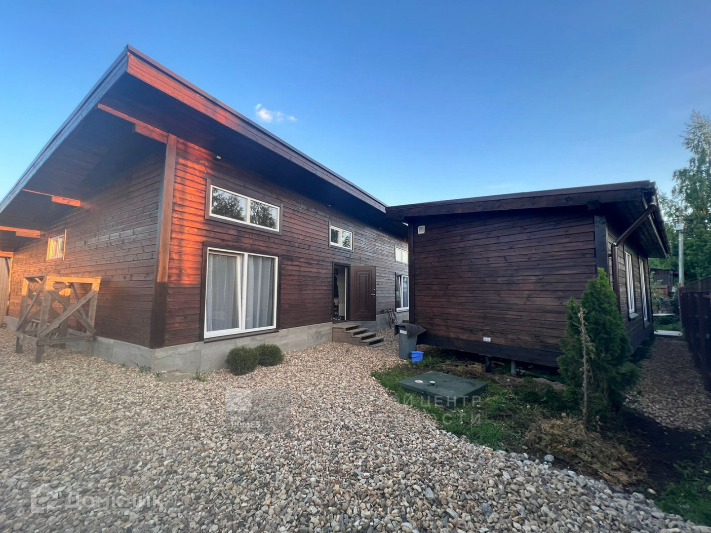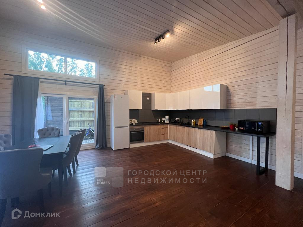 Дом 142 кв. м выполнен из бруса, с высокими потолками, с панорамными окнами, с выходом на участок.