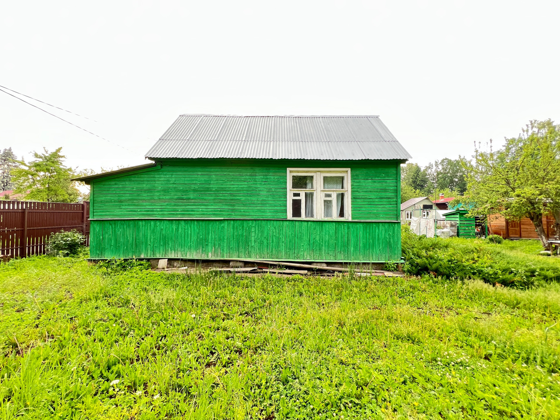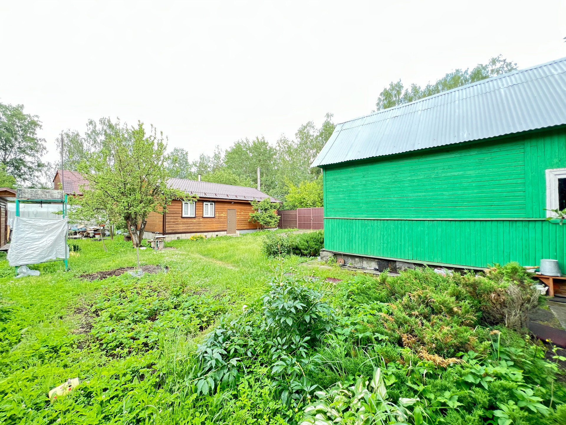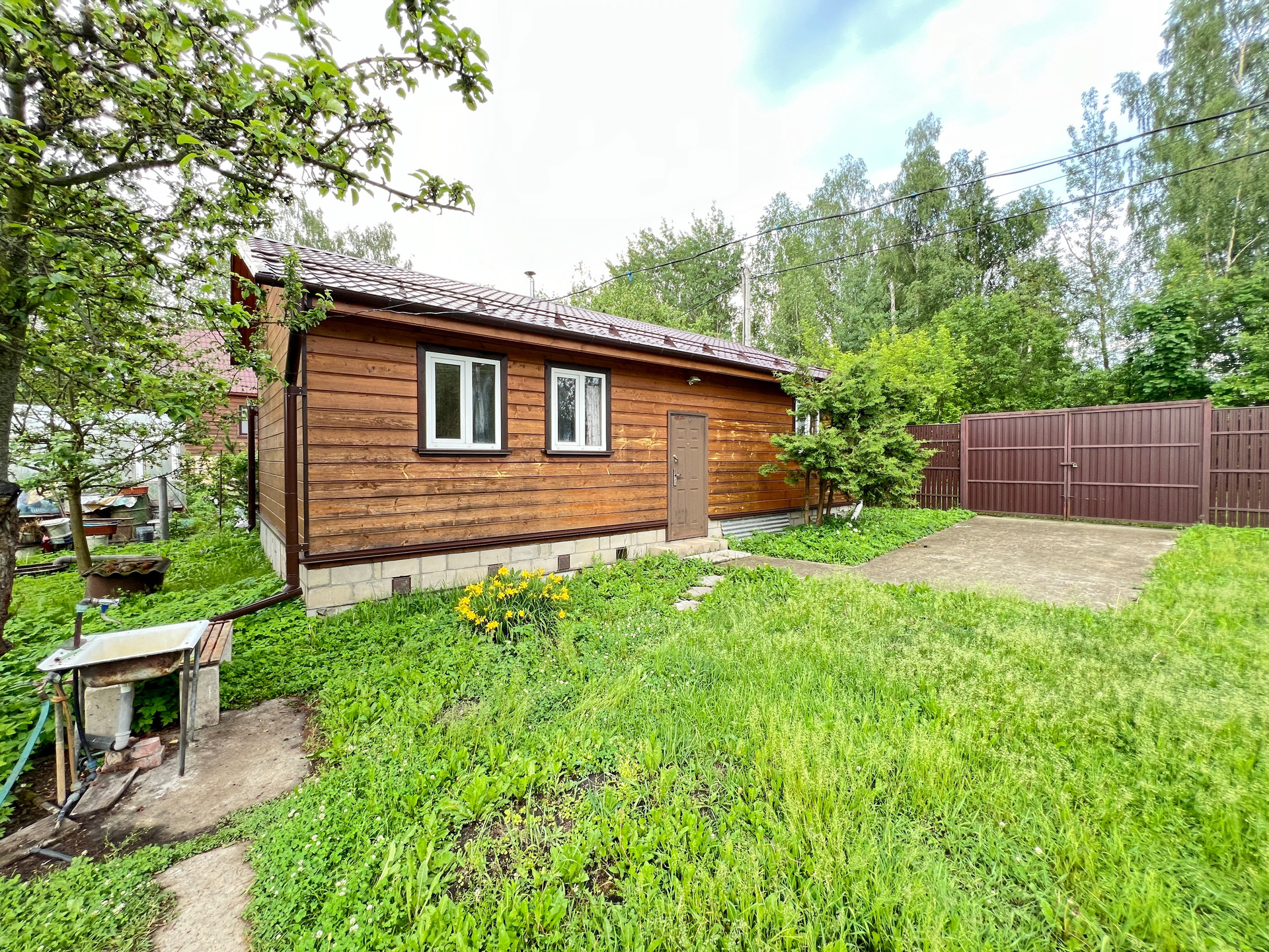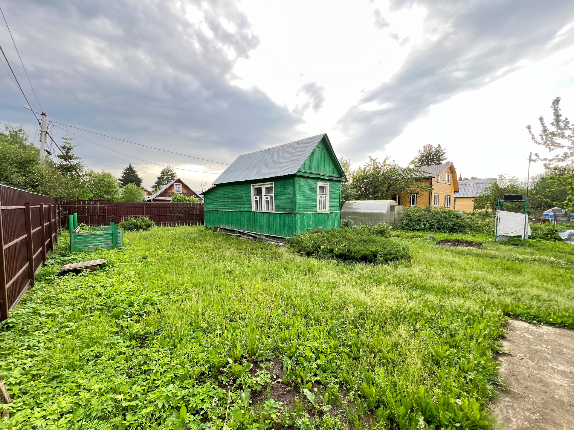 Участок 6.7 соток правильной формы, межевание проведено, весной не затапливает. По периметру огорожен забором, есть ворота для въезда автомобиля, забетонированная площадка.