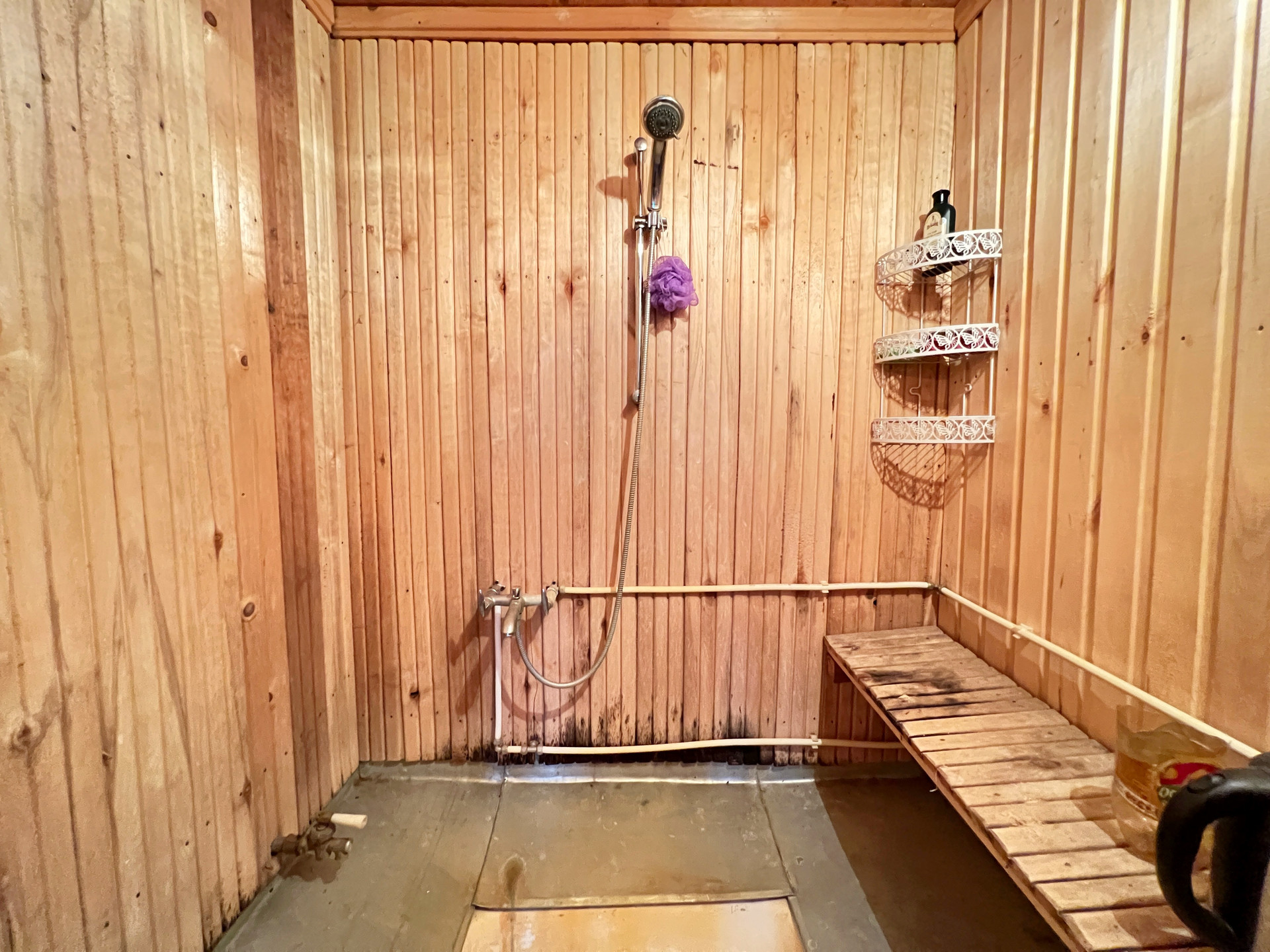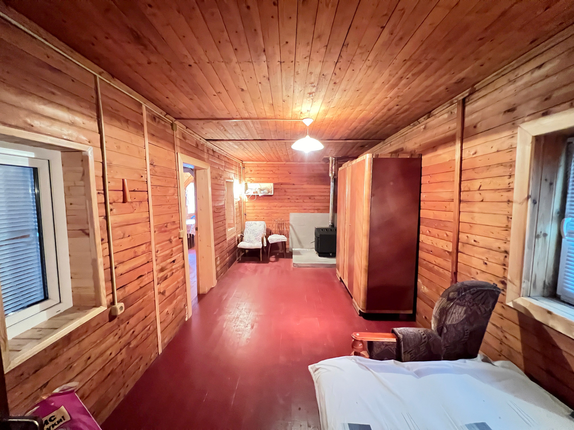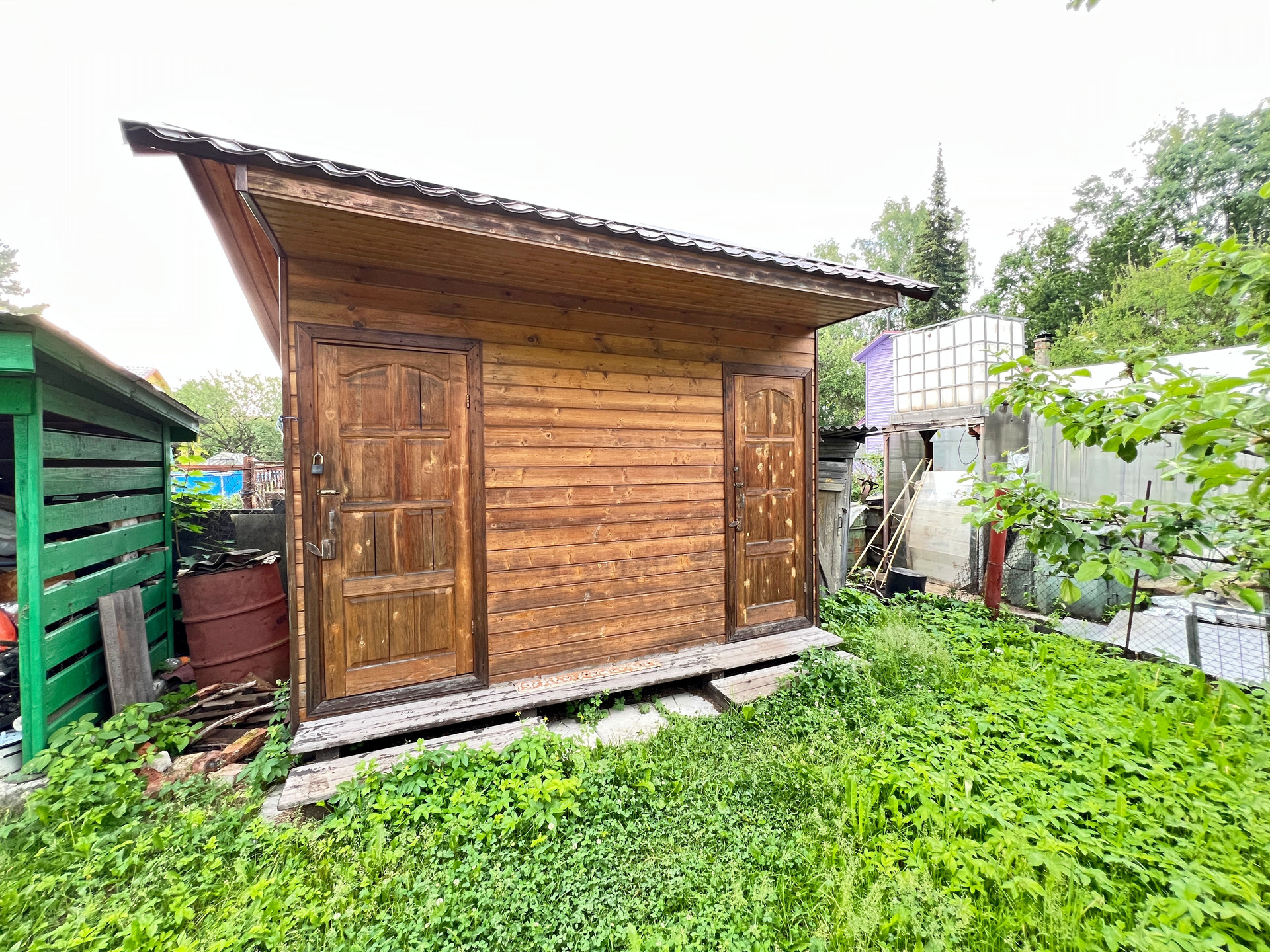 На участке расположены два дома. Первый дом-баня 60 м2., построен в 2015 году, фундамент ленточный, стены бревно, обшит блок хаус, крыша металлопрофиль со снегозадержателями, окна пластиковые стеклопакеты, в доме установлены две печки, одна в парилке вторая в комнате, вода от летнего водопровода заведена в дом.