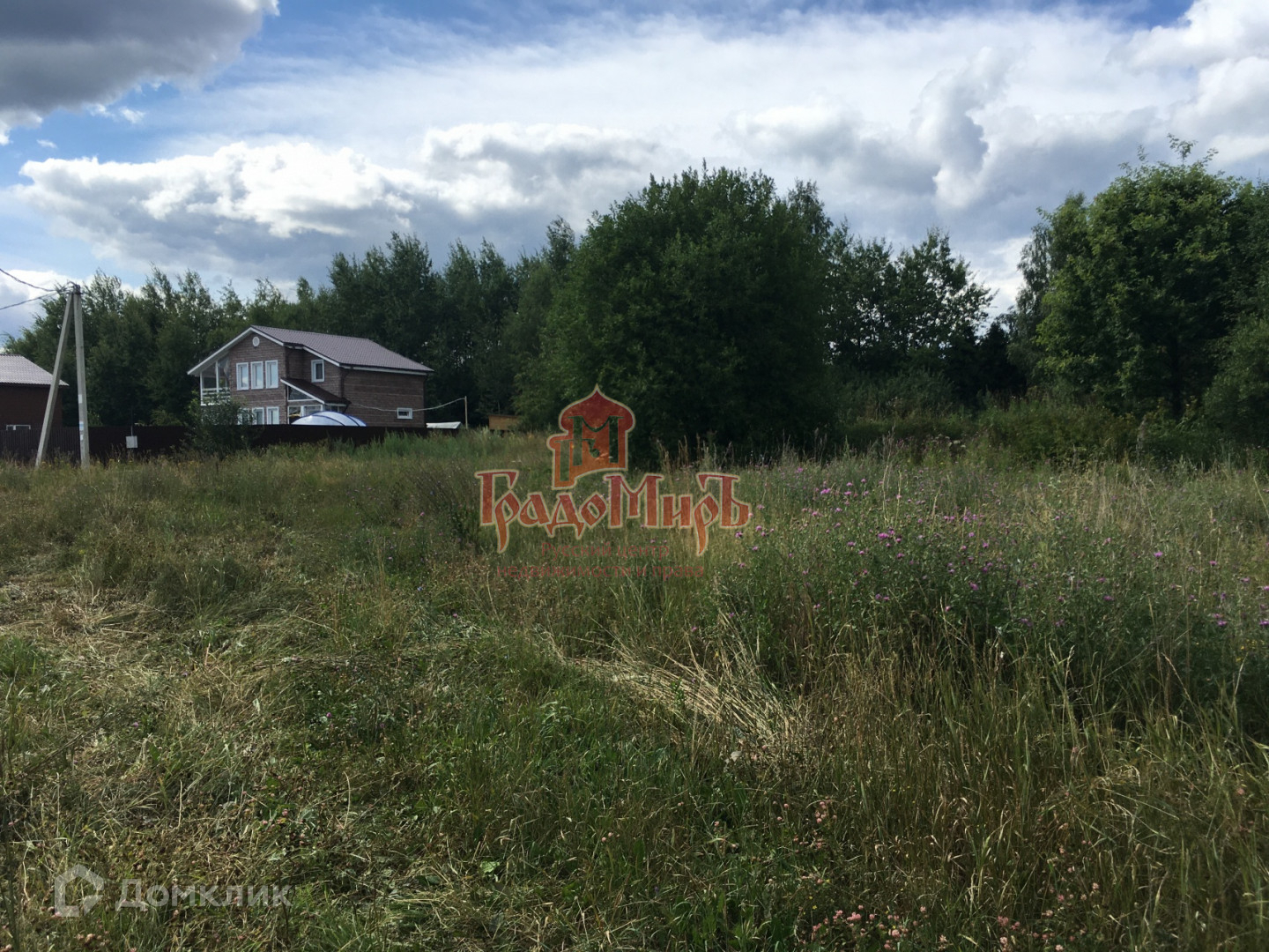 На границе участка находится электрический столб.