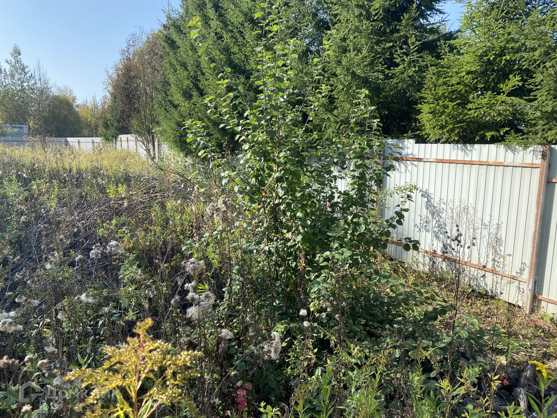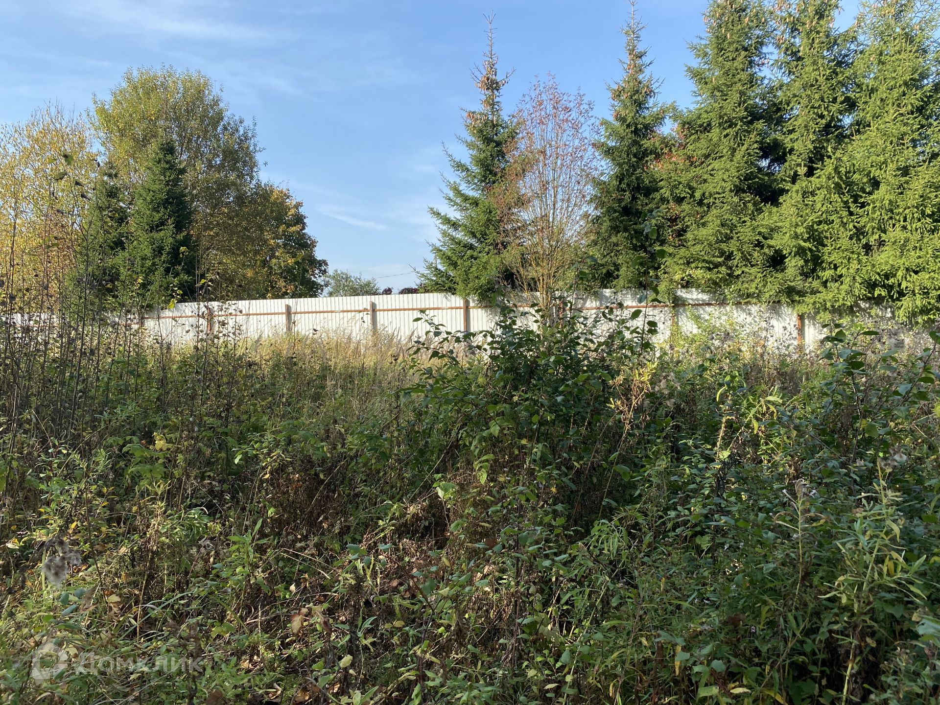 Участок правильной формы, сухой, без построек площадью 11 соток. Участок огорожен металлическим забором с двух сторон, а также сеткой рабицей по остальным сторонам (калитки сделаны в двух сторонах участка, для удобства). Участок граничит с живописным прудом, где можно рыбачить или просто посидеть у воды. Вдоль забора со стороны улицы высаженна аллея елей. В прошлом году была проведена обработка против борщевика.