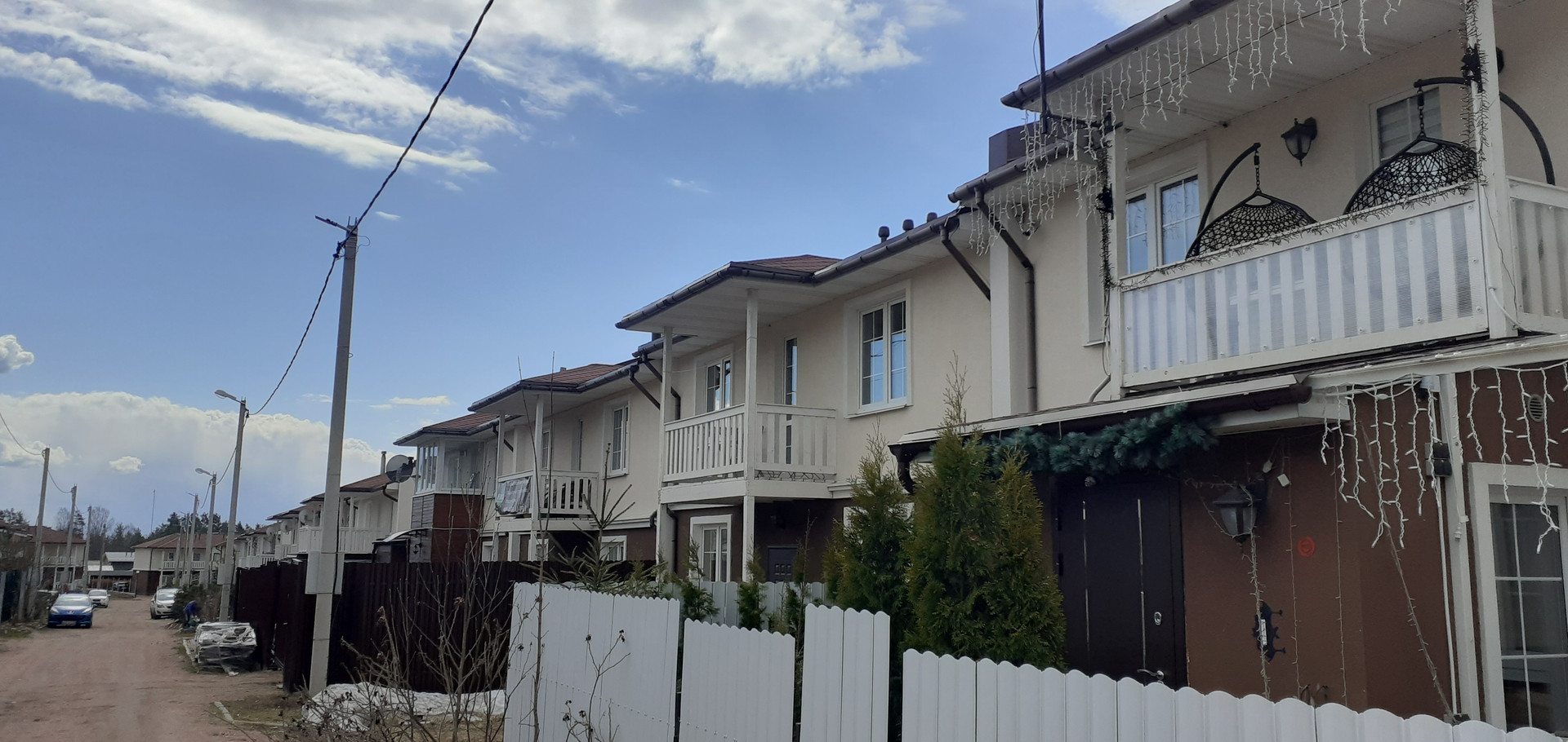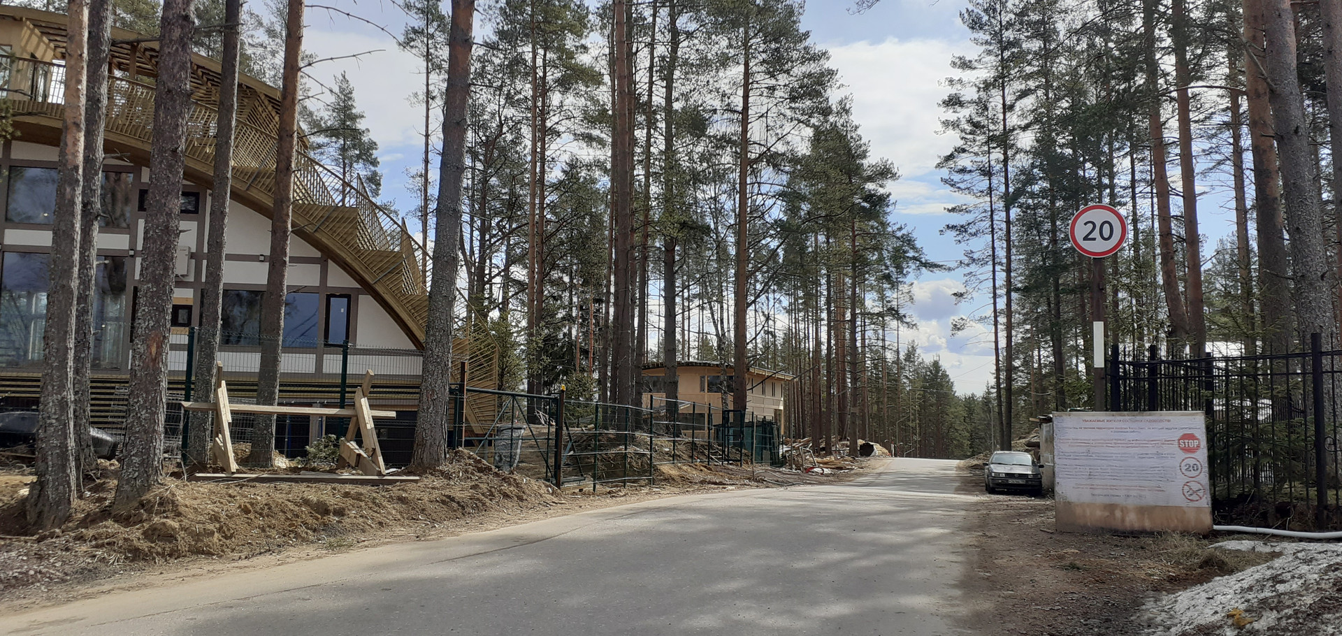 Охраняемый закрытый коттеджный поселок. Въезд по пропускам. Ухоженная территория.  В поселке развитая инфраструктура , детские площадки, магазины, кафе.  Чистый воздух, тишина,  сосновый лес, грибные места, озера. До КАД на машине  20 минут, до ЗСД  10 минут. От ст. метро Парнас идет № 675 маршрутка (30 минут)  ТОРГ.