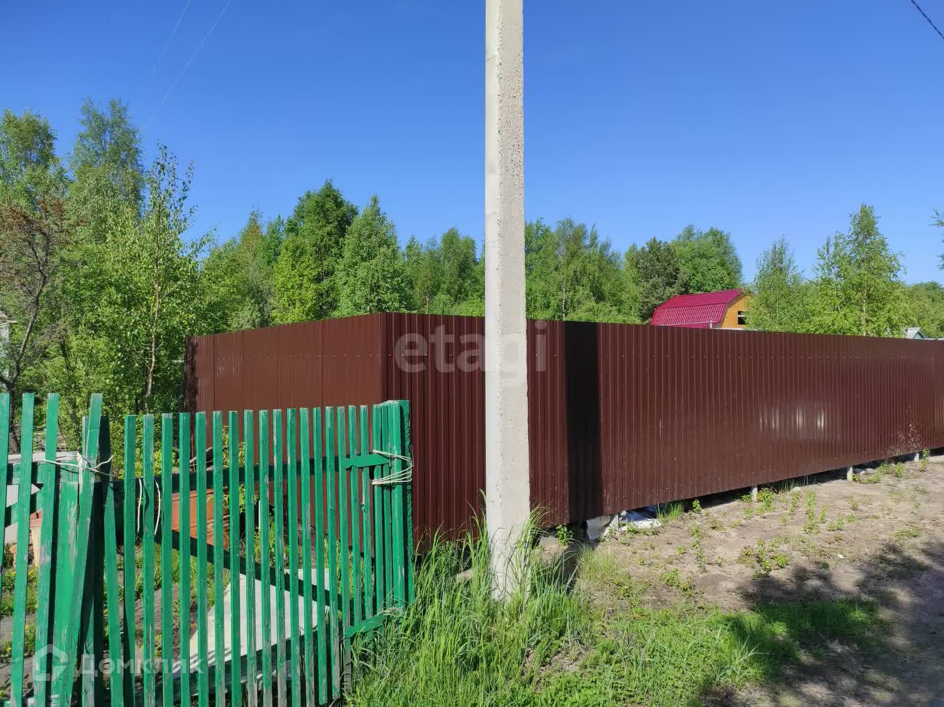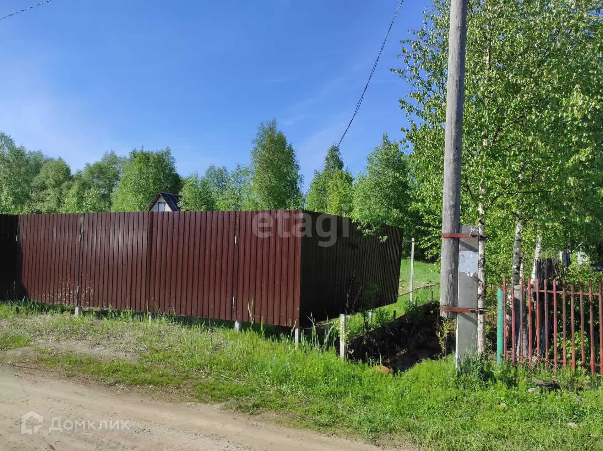 Со стороны улицы участок огорожен забором из профнастила. Предусмотрены ворота для заезда вашего авто.