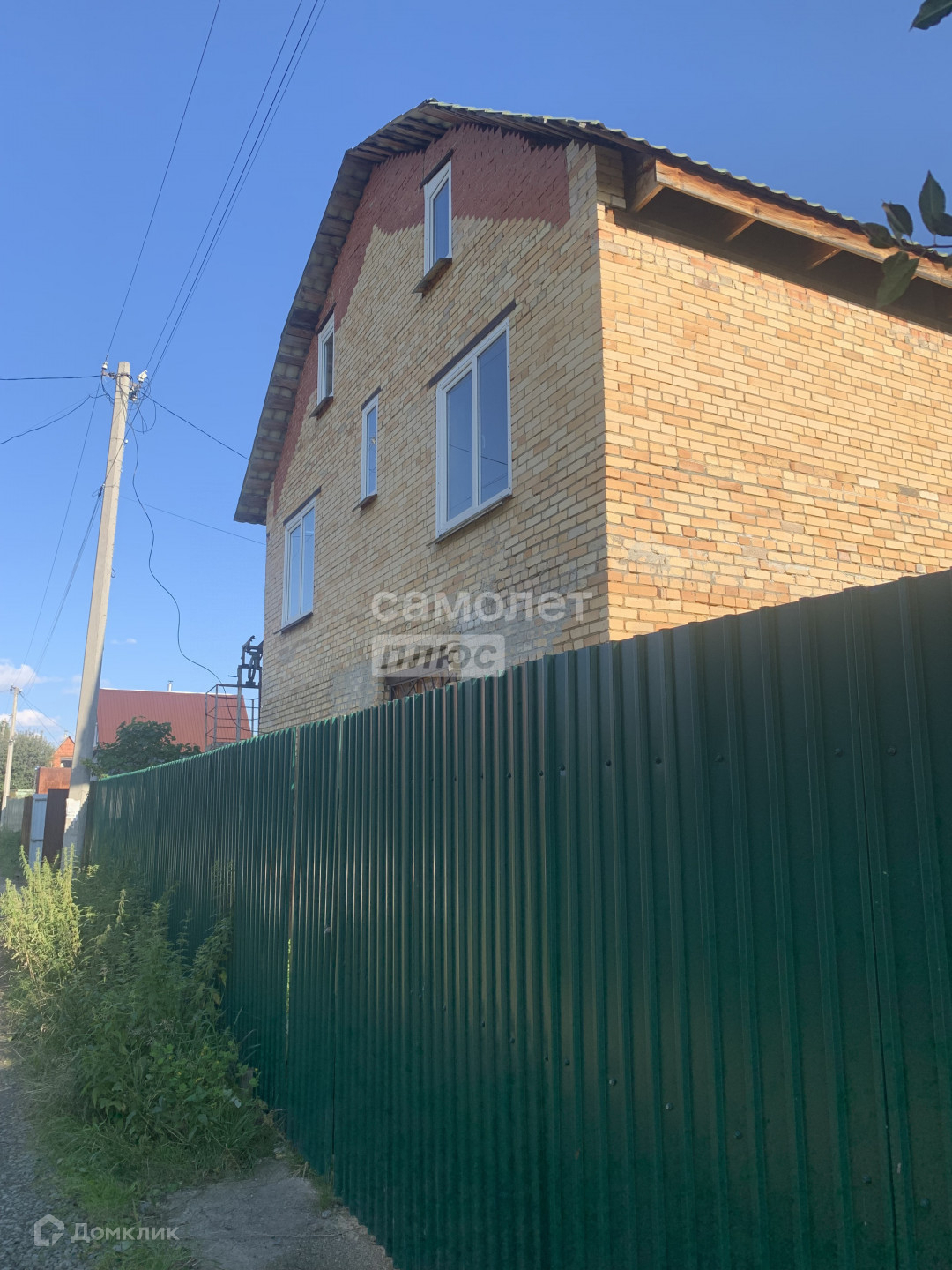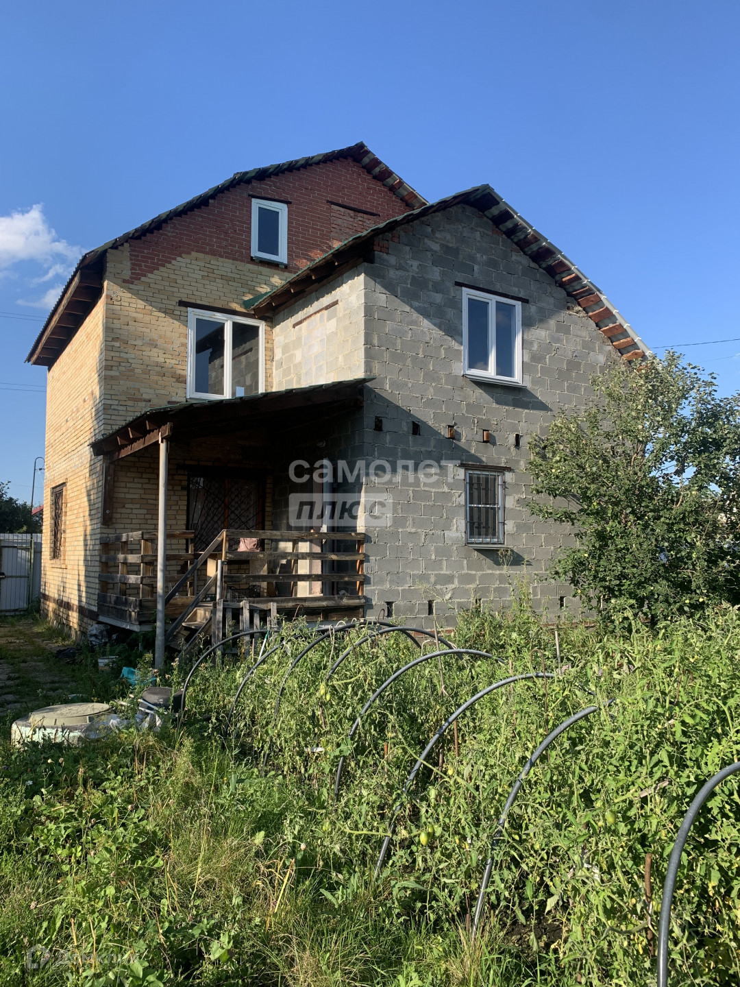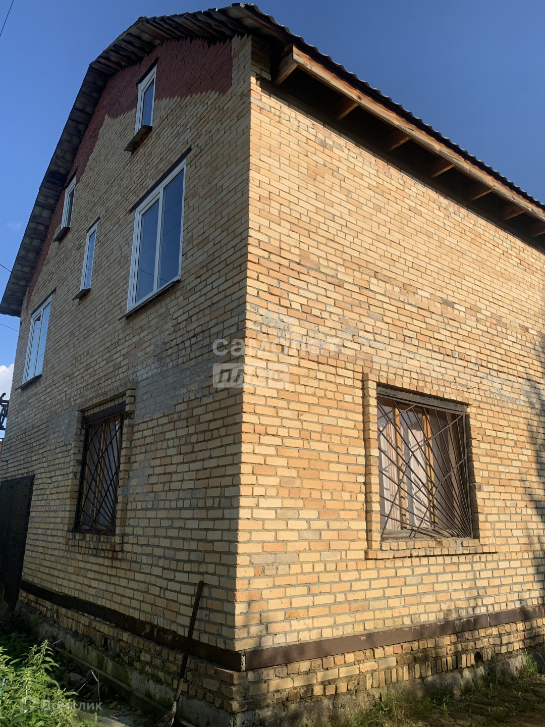 Дом выполнен из кирпича, пристрой из газоблока, крыша - профнастил, фундамент высокий 1,5 м, железобетонные перекрытия обоих этажей.