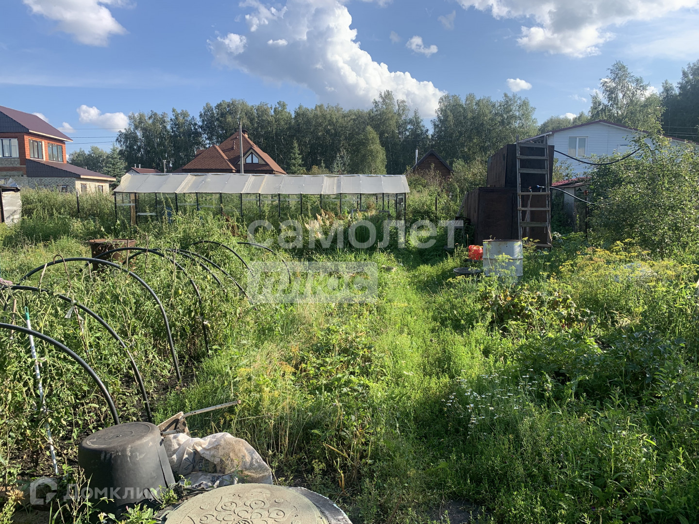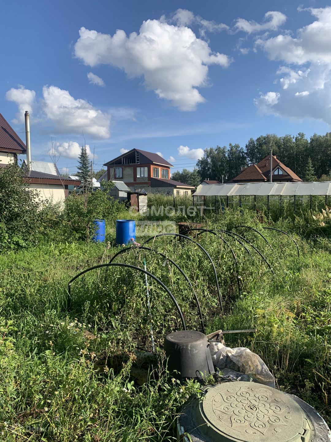 На участке есть яблоня, вишня, абрикосы, расположена 1 теплица.