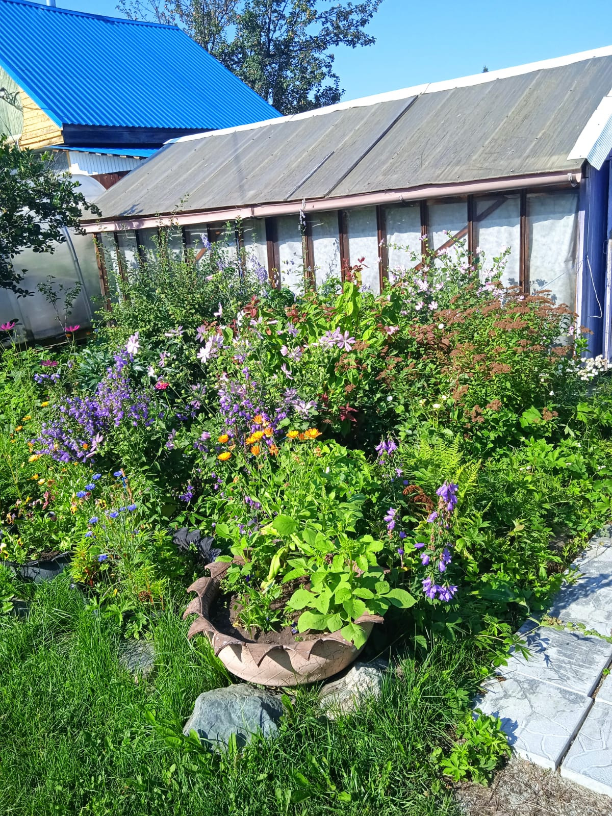 На участке дом, баня, 2 теплицы.