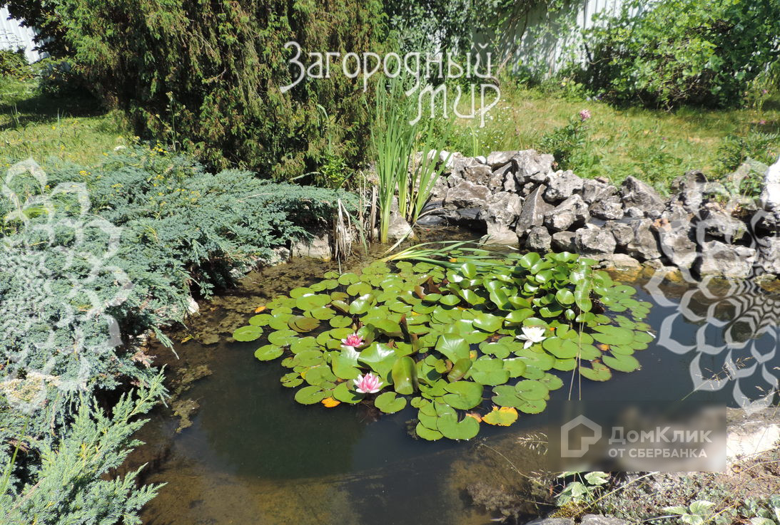 Участок. ровный, ухожен, растут хвойные и плодово-ягодные деревья, есть декоративный пруд.