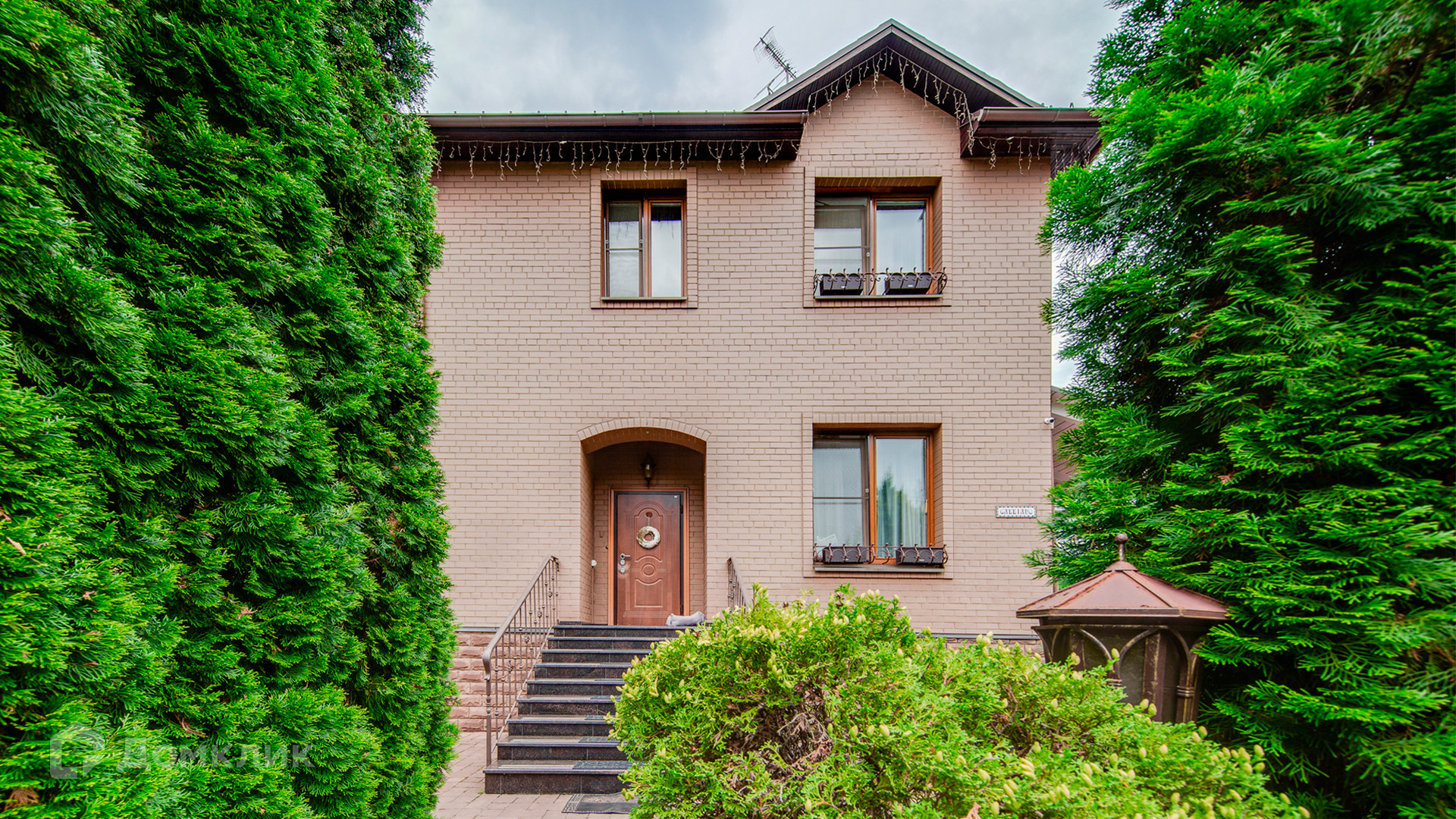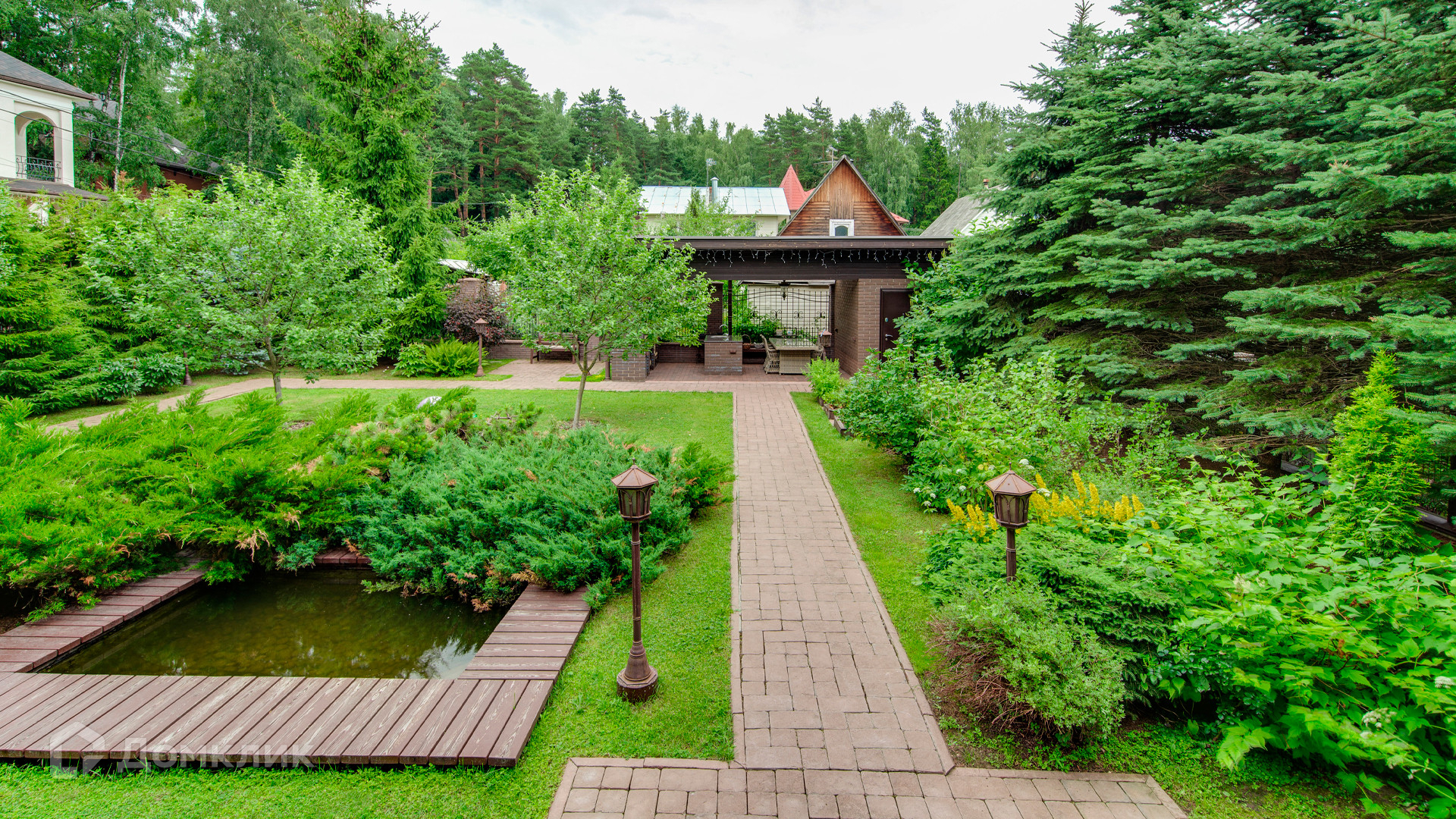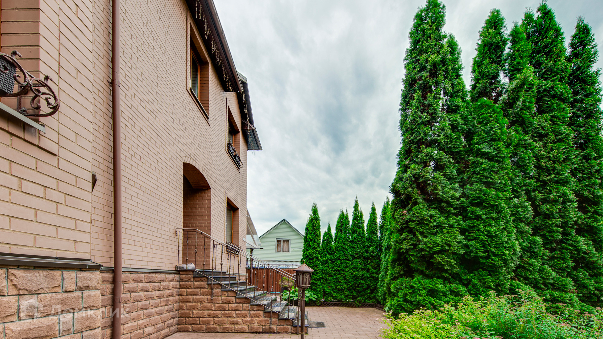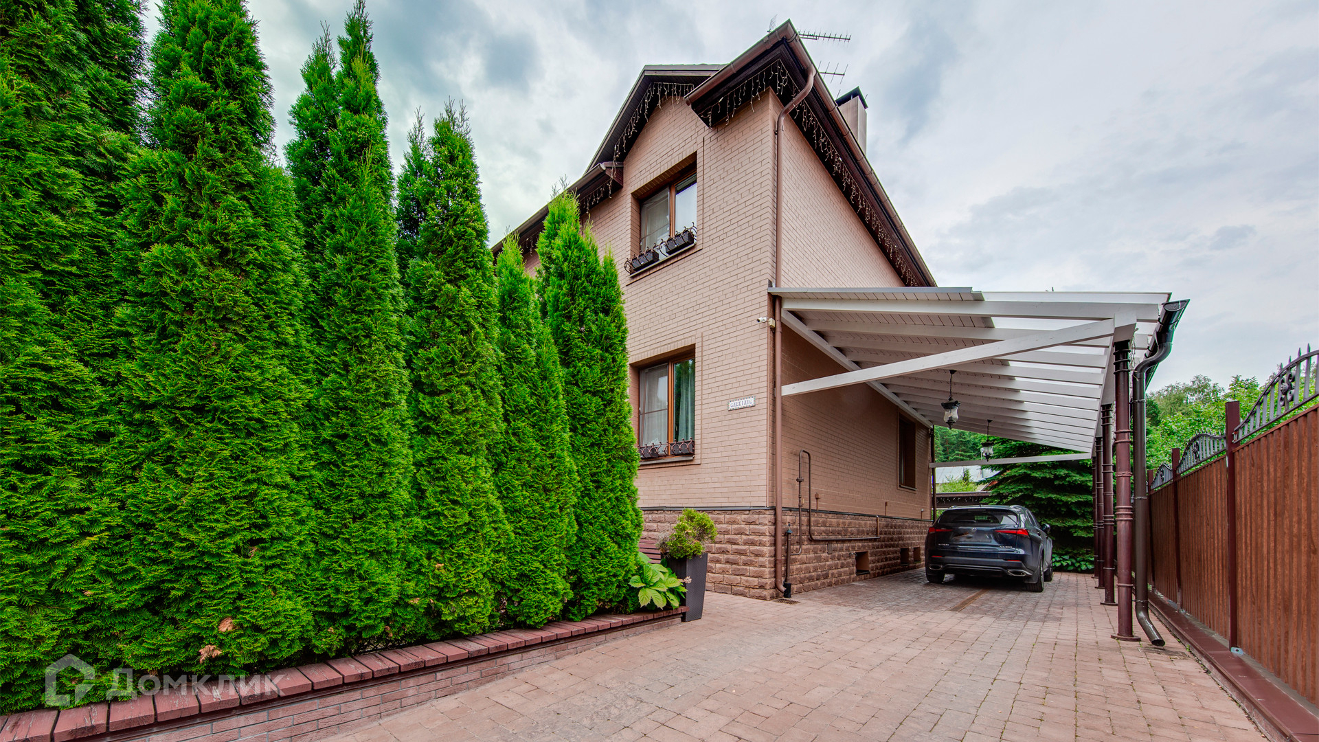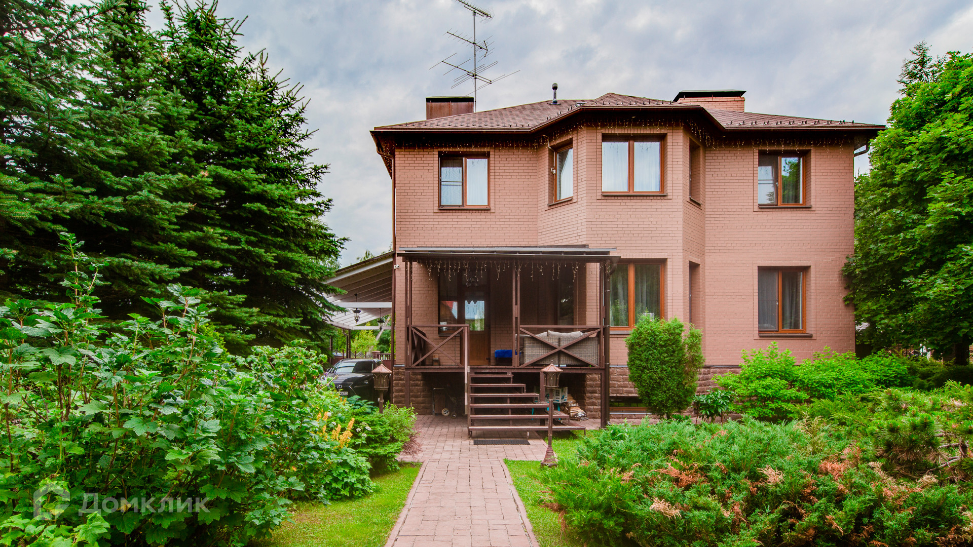 ID 9 969. Урожай. Загородный дом площадью 300 м² расположен на полевом участке 8 соток. Фасад выполнен из красного клинкерного кирпича. Интерьер оформлен в тёплой палитре цветов, установлена бытовая техника Miele. В коттедже спланировали 4 спальни, гостиную с камином и выходом на террасу, кухню, столовую и сауну. На территории предусмотрена беседка барбекю с подведенными коммуникациями. На участке выполнен ландшафтный дизайн, живая изгородь из хвойных высокомеров создает приватность и уют, обустроены декоративный пруд, качели, уличное освещение.