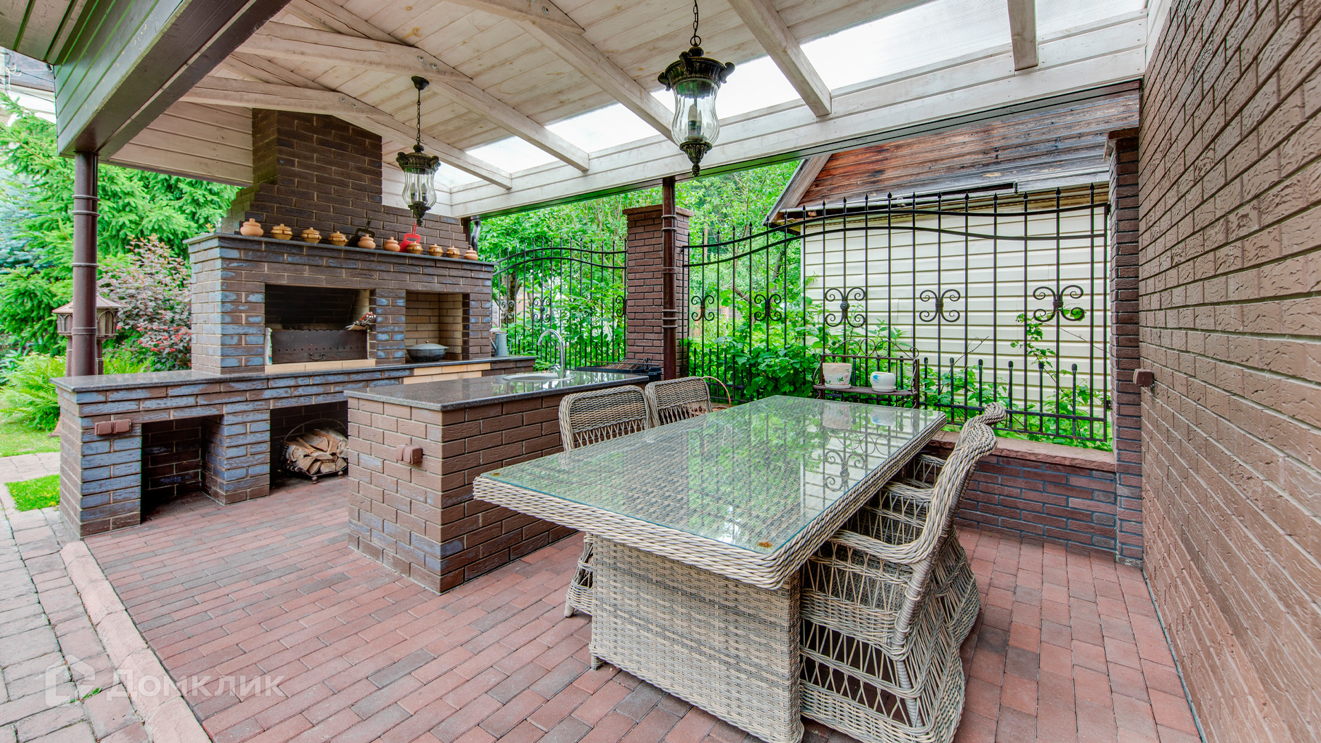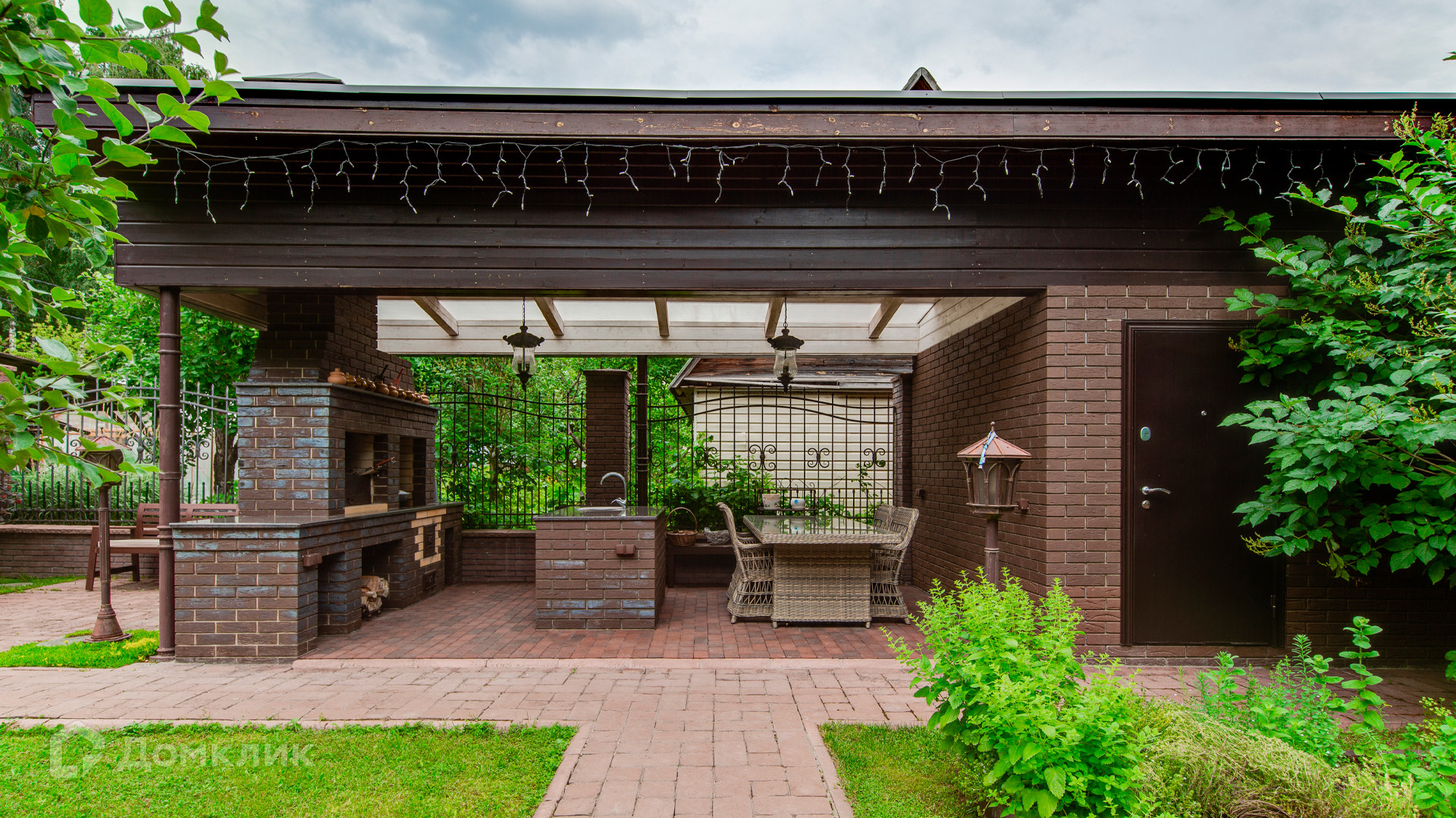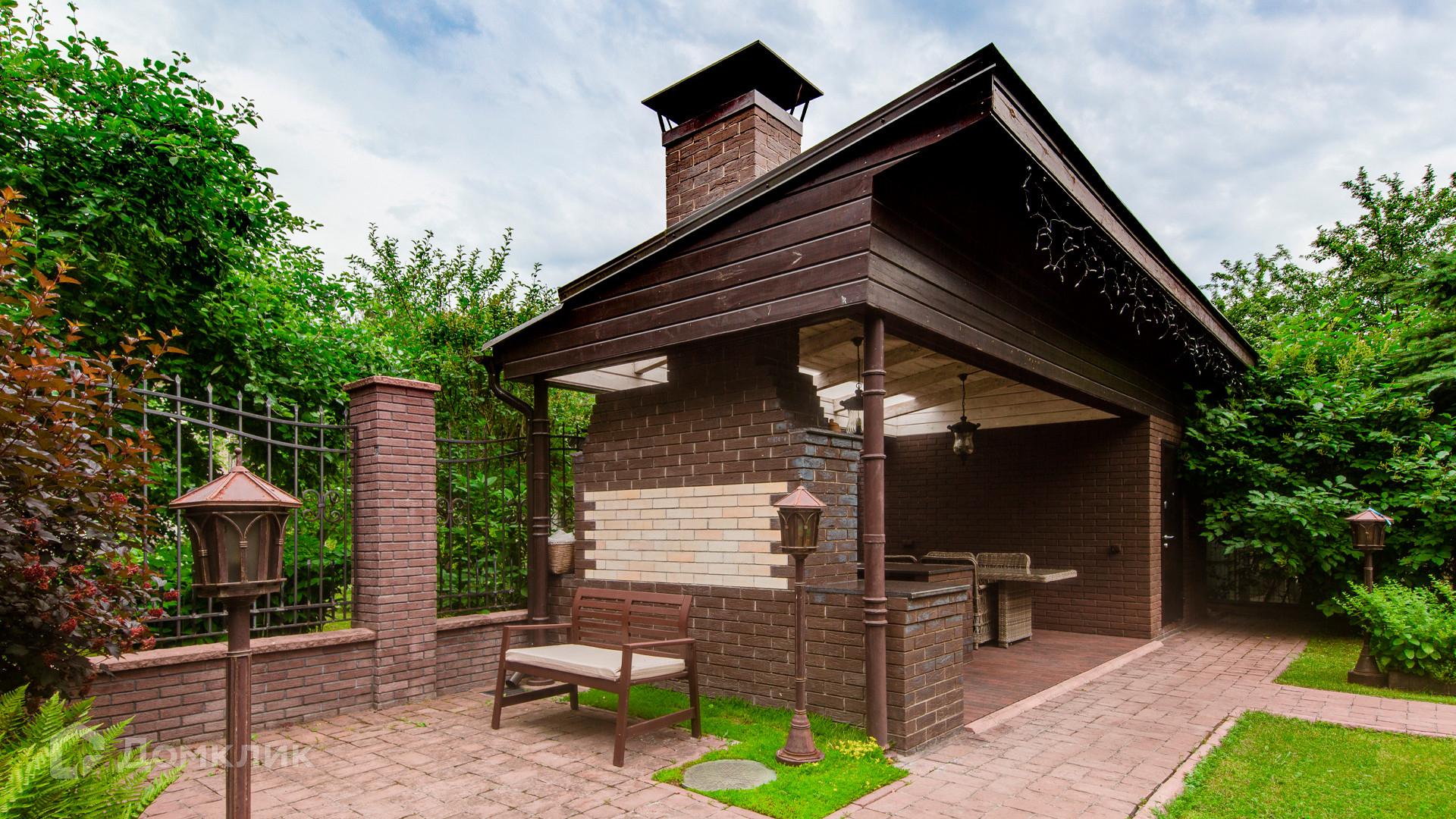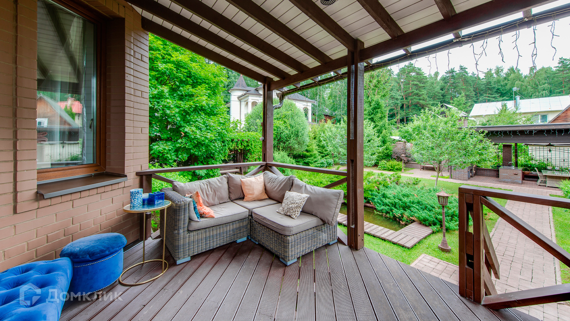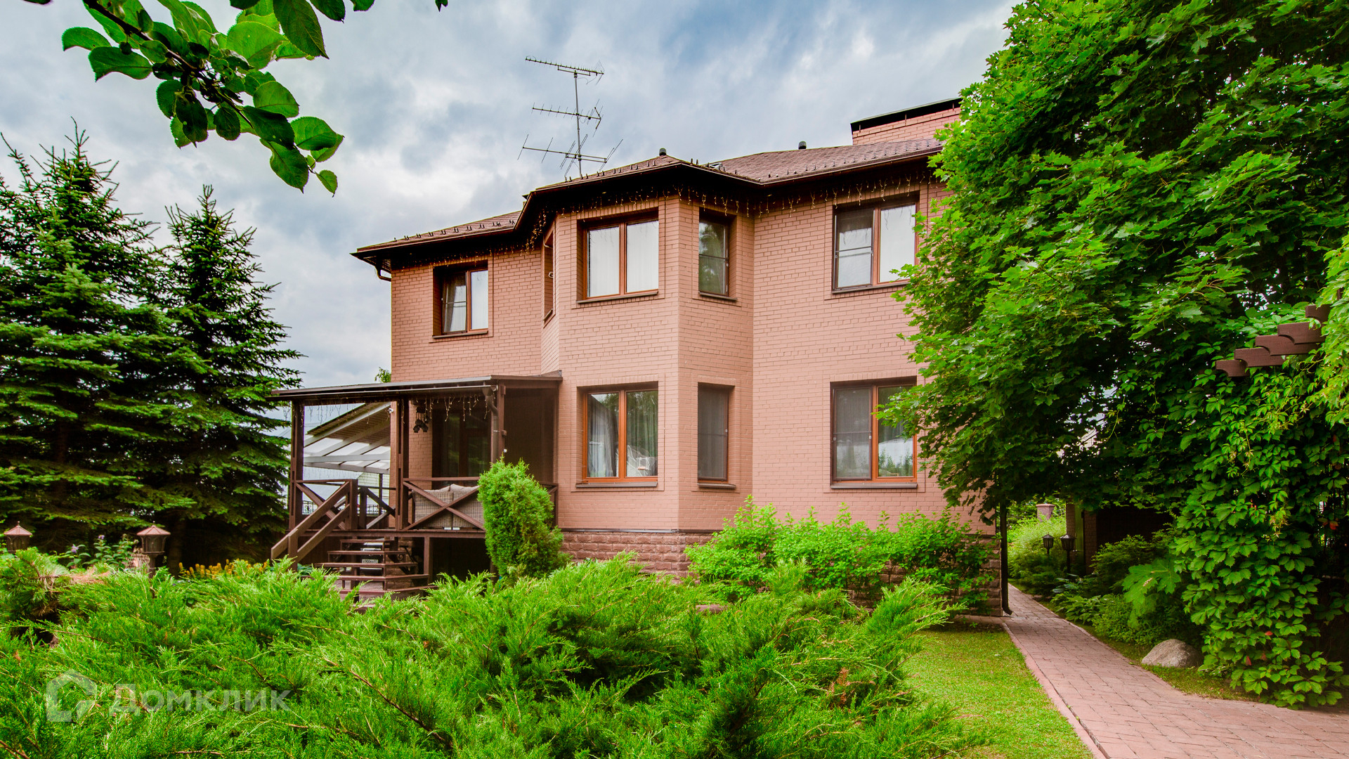 ID 9 969. Урожай. Загородный дом площадью 300 м² расположен на полевом участке 8 соток. Фасад выполнен из красного клинкерного кирпича. Интерьер оформлен в тёплой палитре цветов, установлена бытовая техника Miele. В коттедже спланировали 4 спальни, гостиную с камином и выходом на террасу, кухню, столовую и сауну. На территории предусмотрена беседка барбекю с подведенными коммуникациями. На участке выполнен ландшафтный дизайн, живая изгородь из хвойных высокомеров создает приватность и уют, обустроены декоративный пруд, качели, уличное освещение.