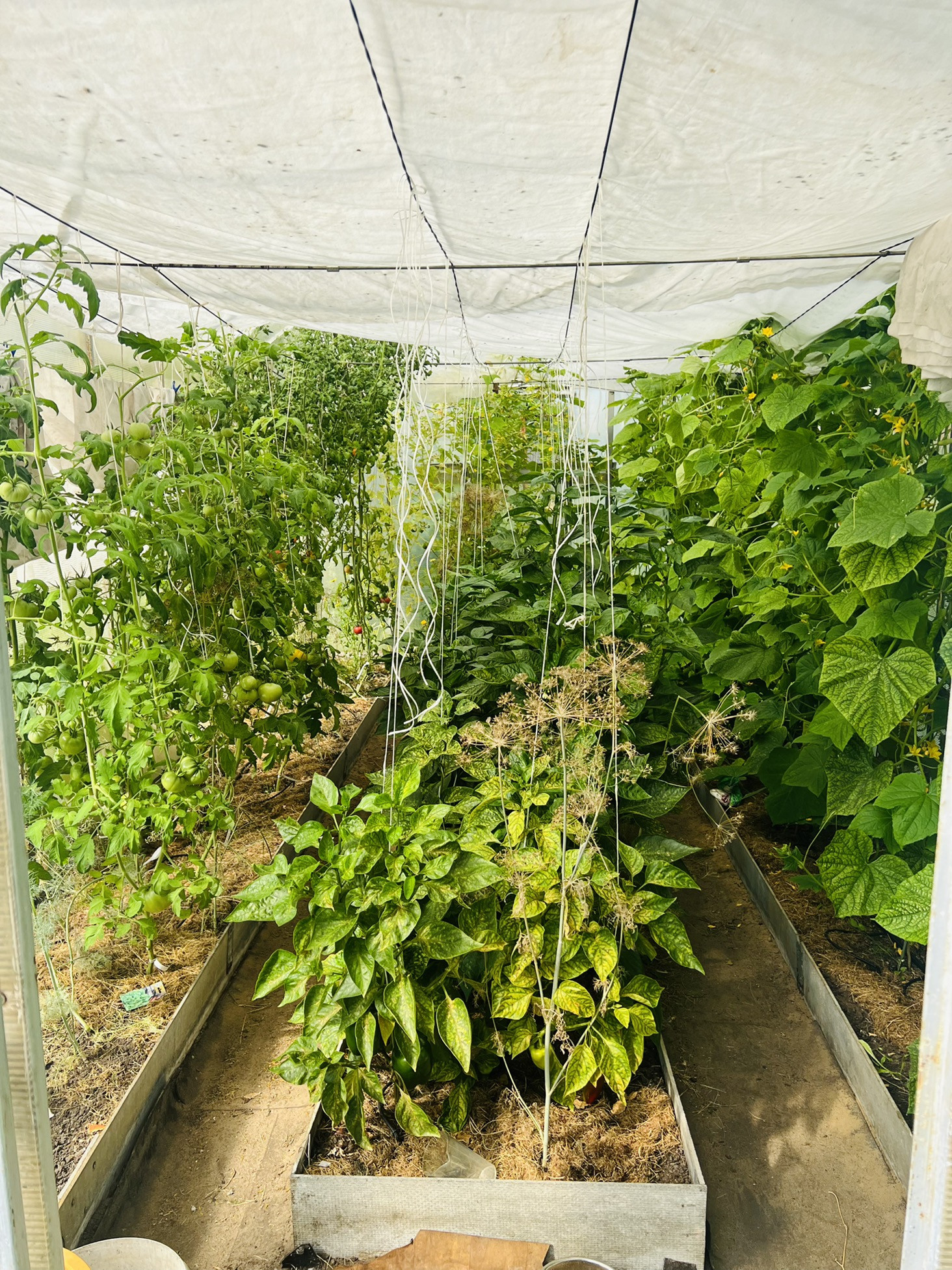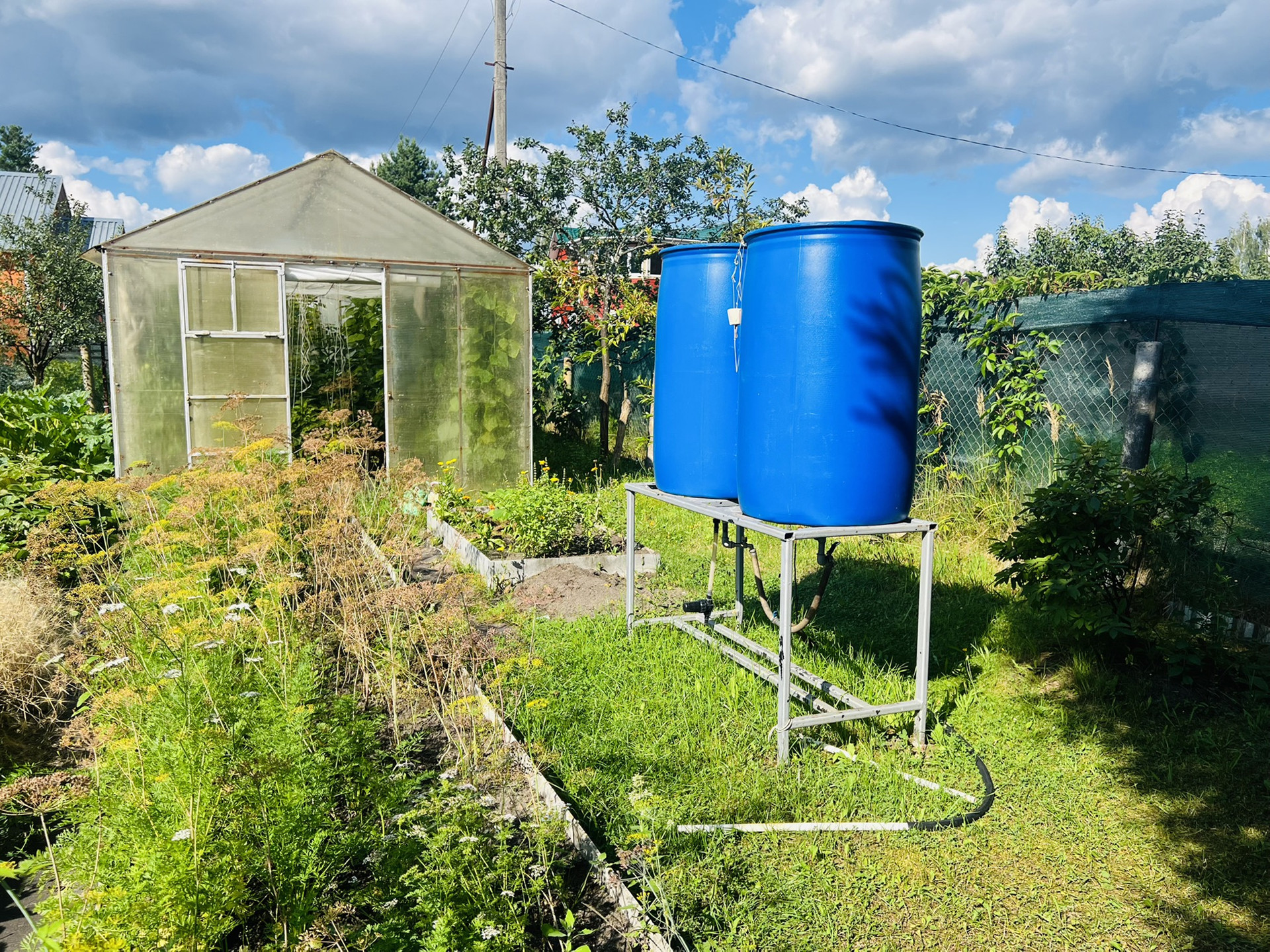 Огород с высокими грядками и парником, организован капельный полив!