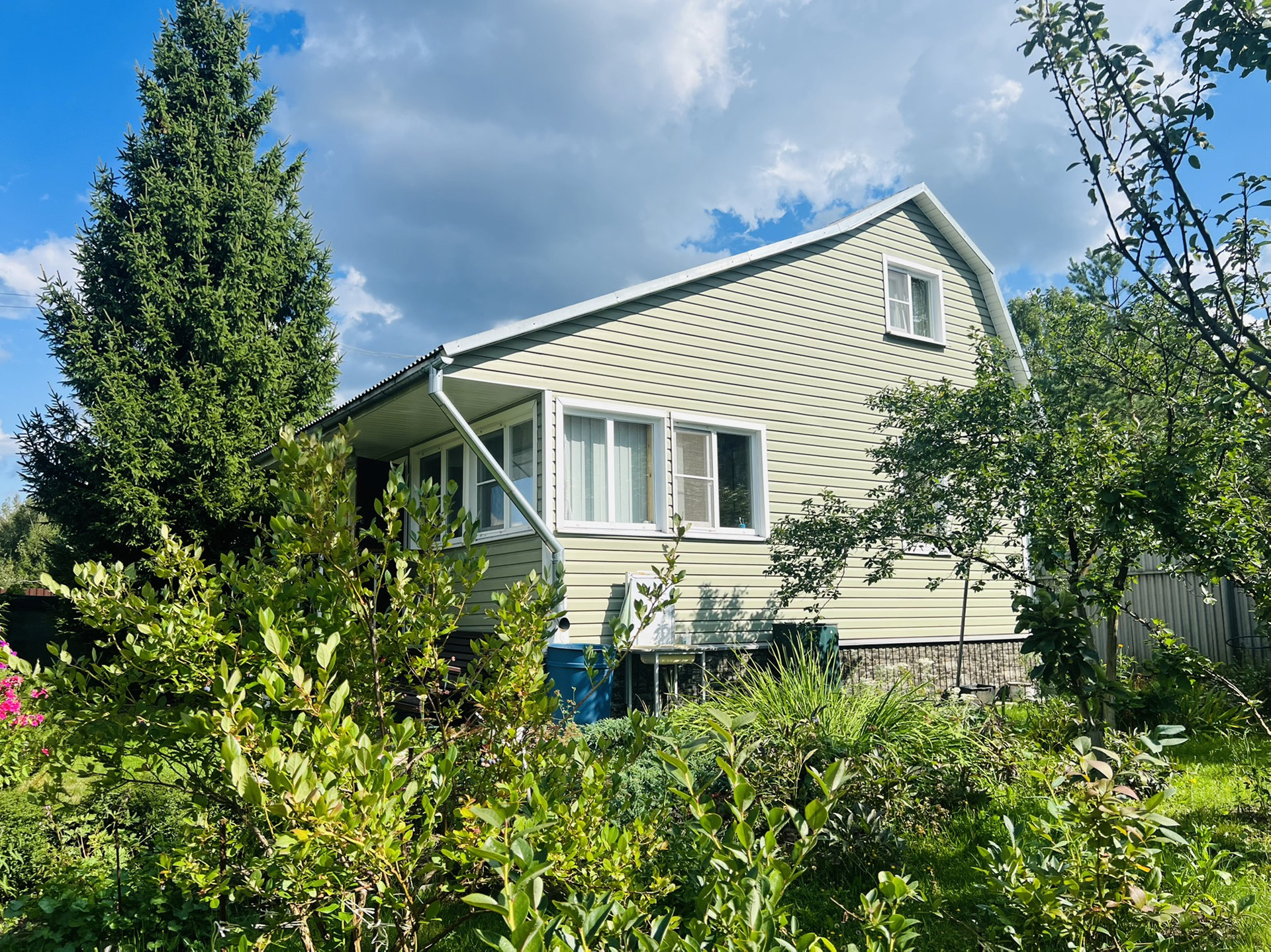 На участке за 18 лет владения растёт абсолютно всё: яблони, сливы, малина, ежевика, смородина, голубика, виноград. Очень много цветов.