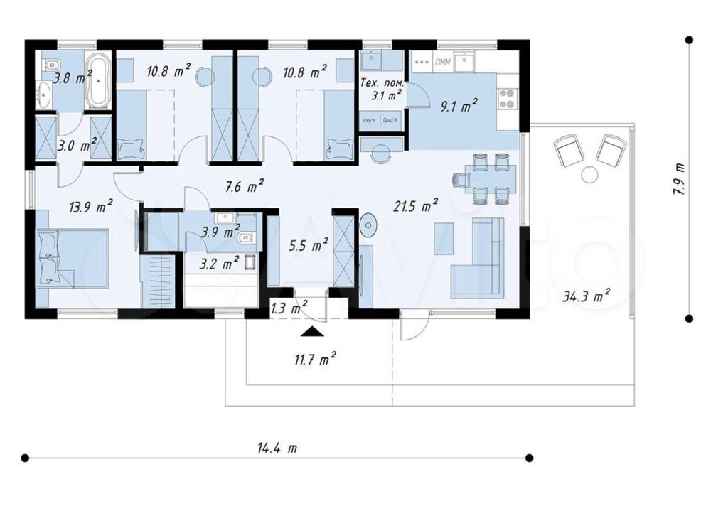 Общая площадь 120 м2
