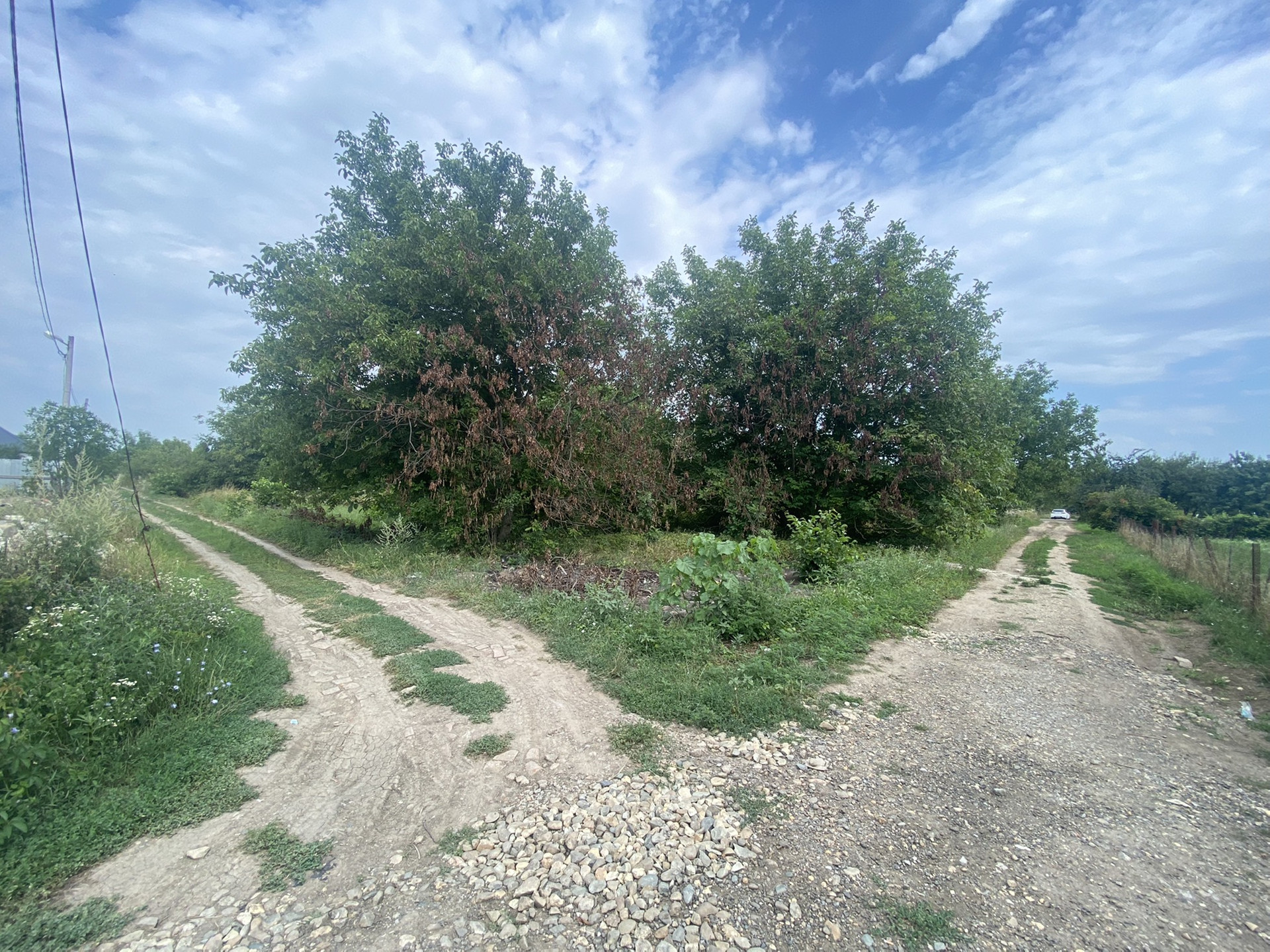 Электричество идёт вдоль участка.