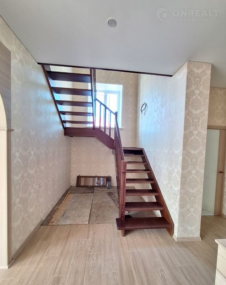Этажи соединены лестницей: металлический каркас, деревянные ступени.
