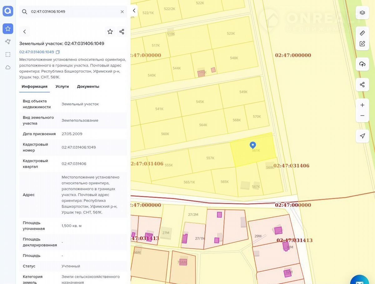 Земельный участок СНТ "Уршак" площадью 15 соток состоящий из 2-х участков №: К-561, К-563(можно разделить), садоводство. Хорошее местоположение, угловой. Расположен на границе с СНТ "Тюльпан". Рядом дорога. Также реализуются соседние участки от 8 до 15 соток.