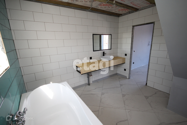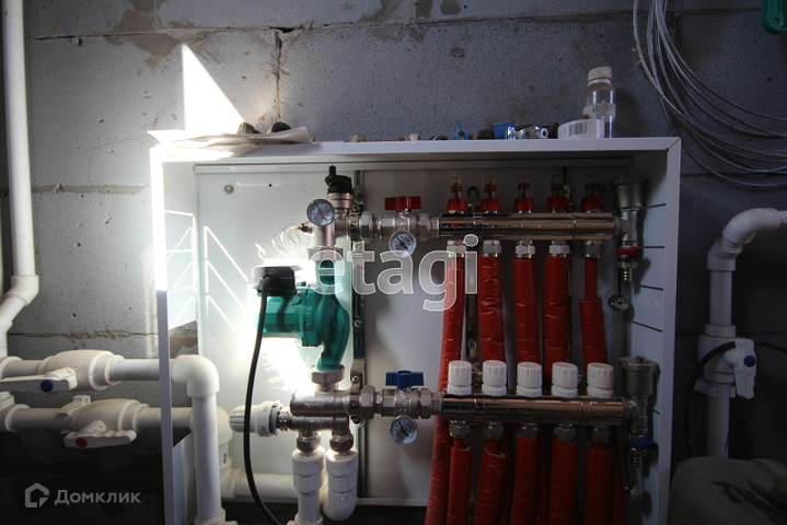 Отопление - двухконтурный газовый котел (Navien) с пультом для управления из дома (котельная пристроена к дому, вход - отдельный). Первый этаж - водяные теплые полы, второй этаж - радиаторы (Rommer). Стены кухни-гостиной отштукатурены и покрыты краской, на полу - керамогранит. Кухонный гарнитур выполнен на заказ, вся фурнитура высочайшего качества (остается новым хозяевам!). Потолок и стены спальни обшиты гипсокартоном. Второй этаж - предчистовая отделка.