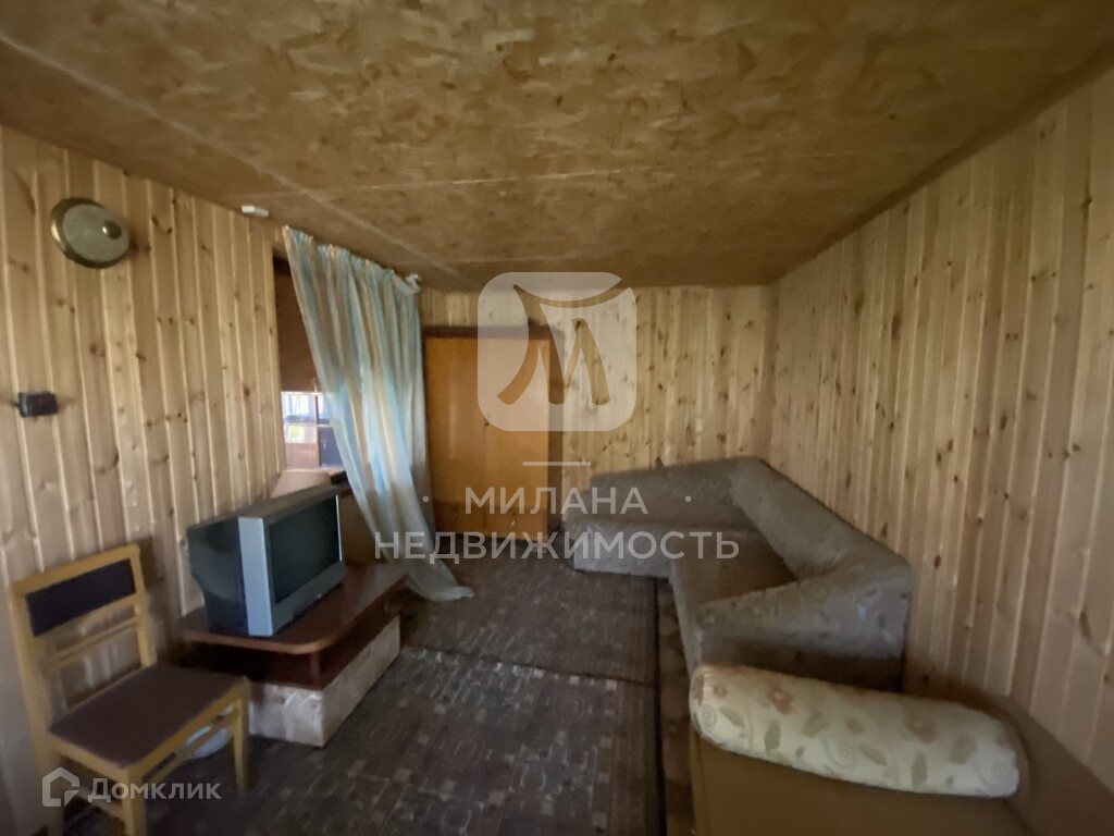 На первом этаже две жилые комнаты. Стены обшиты деревом, присутствует мебель, есть холодильник, душ в доме.