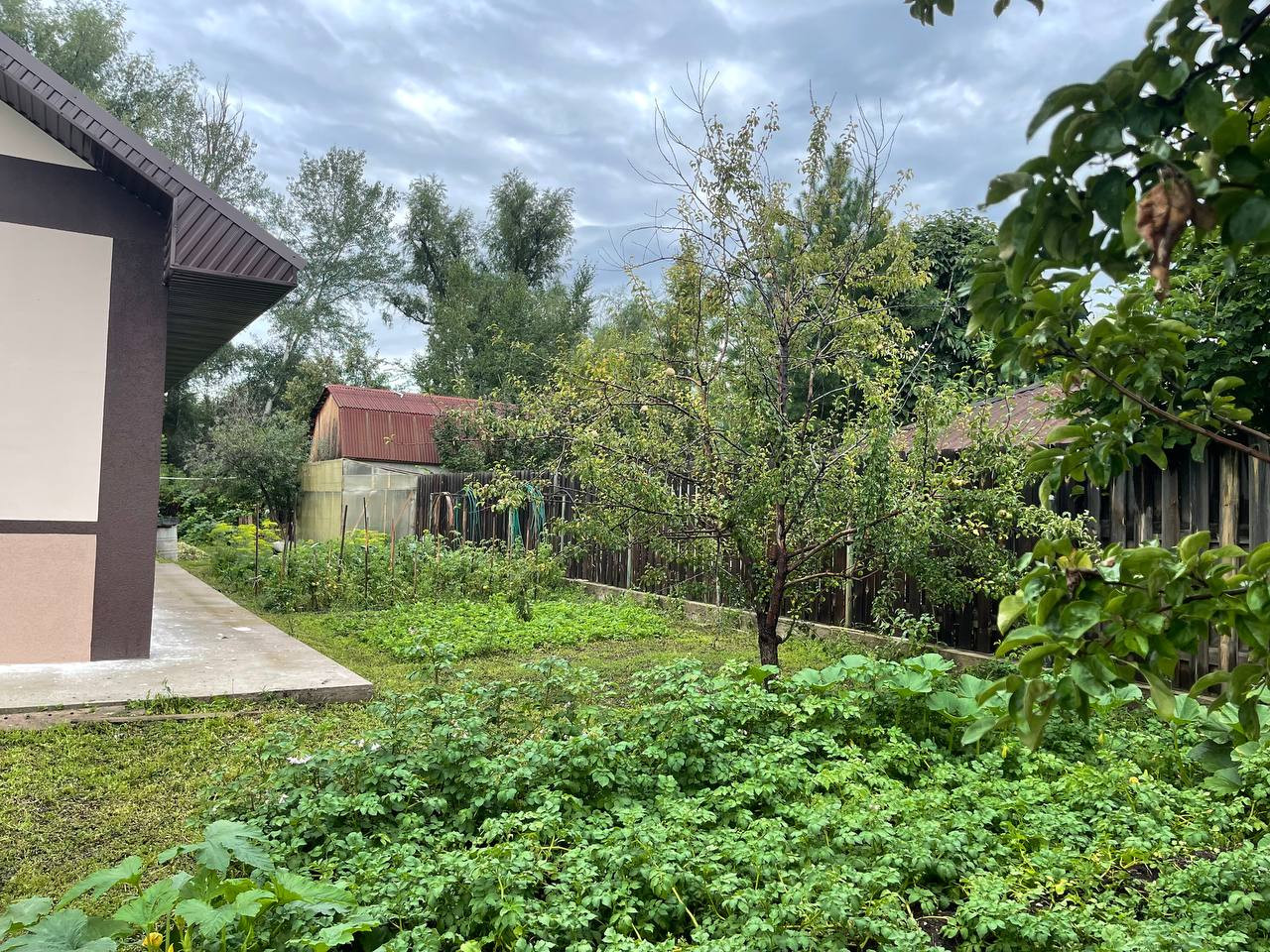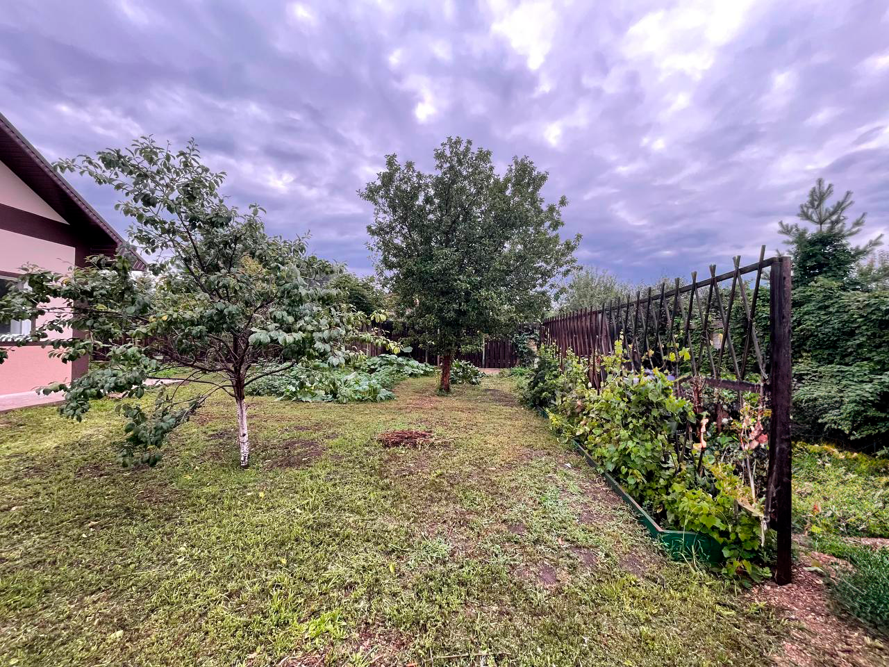Дом расположен на участке 12 соток, с зелеными насаждениями (яблоня, груша, виноград, малина, вишня, смородина).
