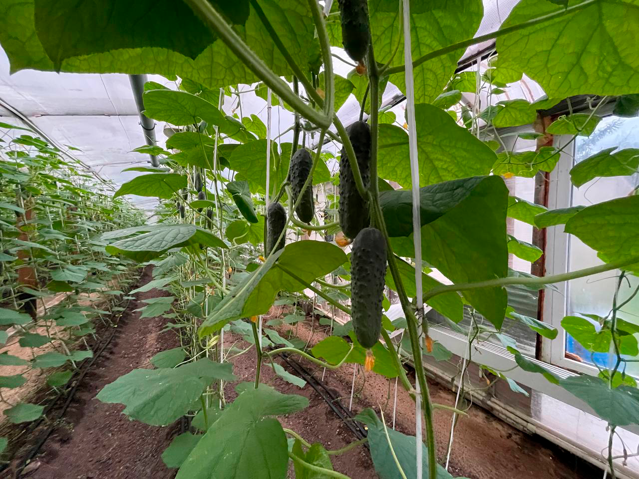 На данный момент в теплице выращиваются огурчики, готовый урожай с высокой доходностью для тех, кто хочет работать и зарабатывать.