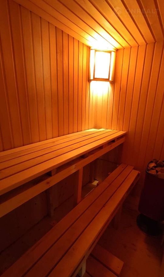Установлен повысительный насос для воды и бойлер для нагрева. Сауна новая с финской электрической печкой Harvia. Очень удобно, дрова не нужны и протапливается за час.