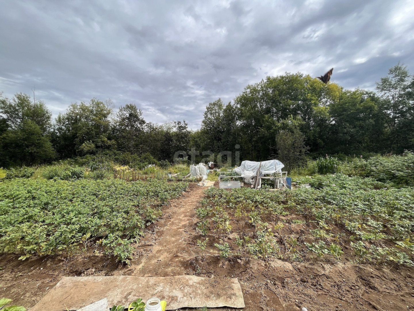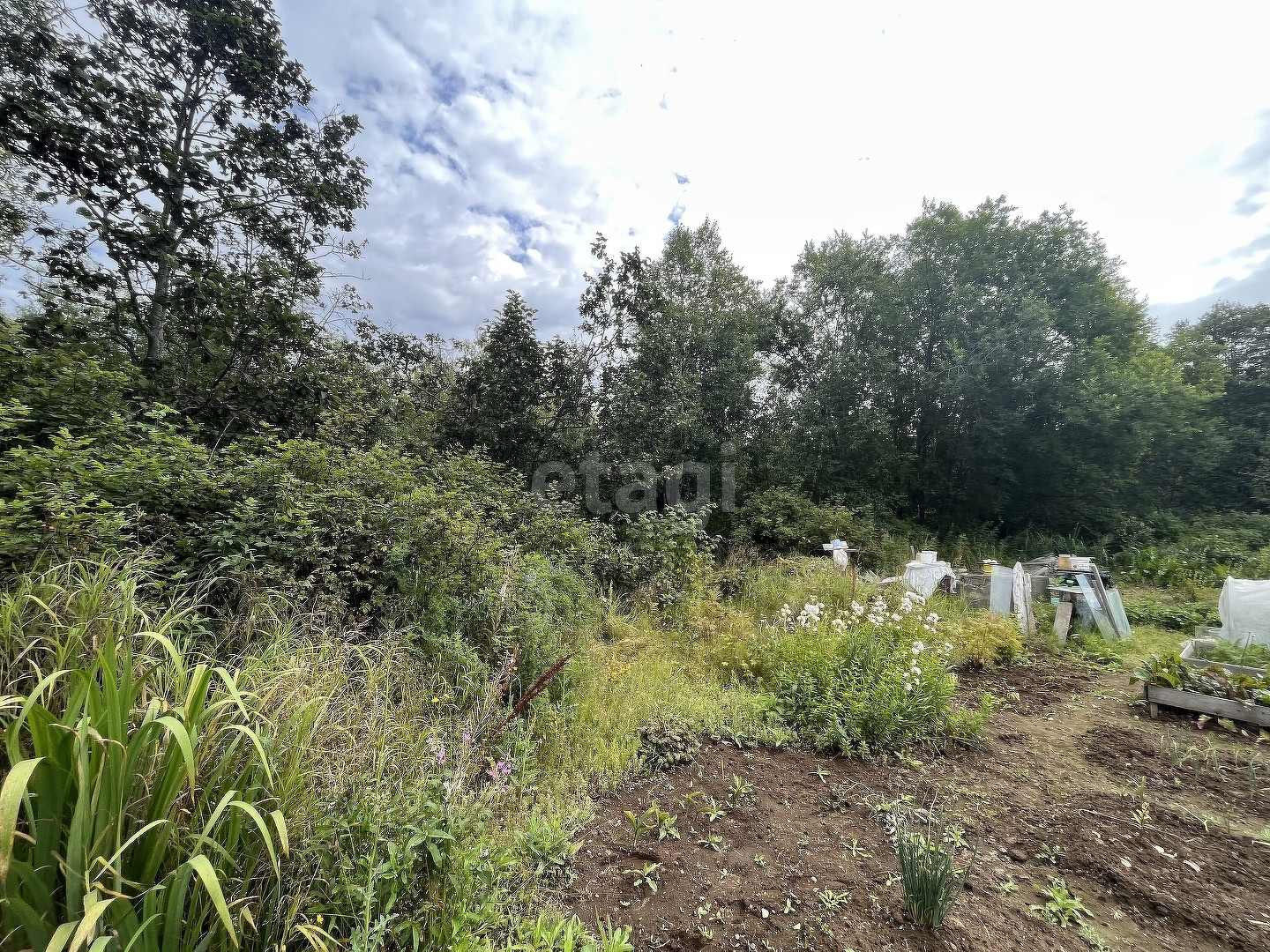 Участок подходит под строительство с рекреационной зоной: берёзы на участке прекрасно отделяют от соседей.