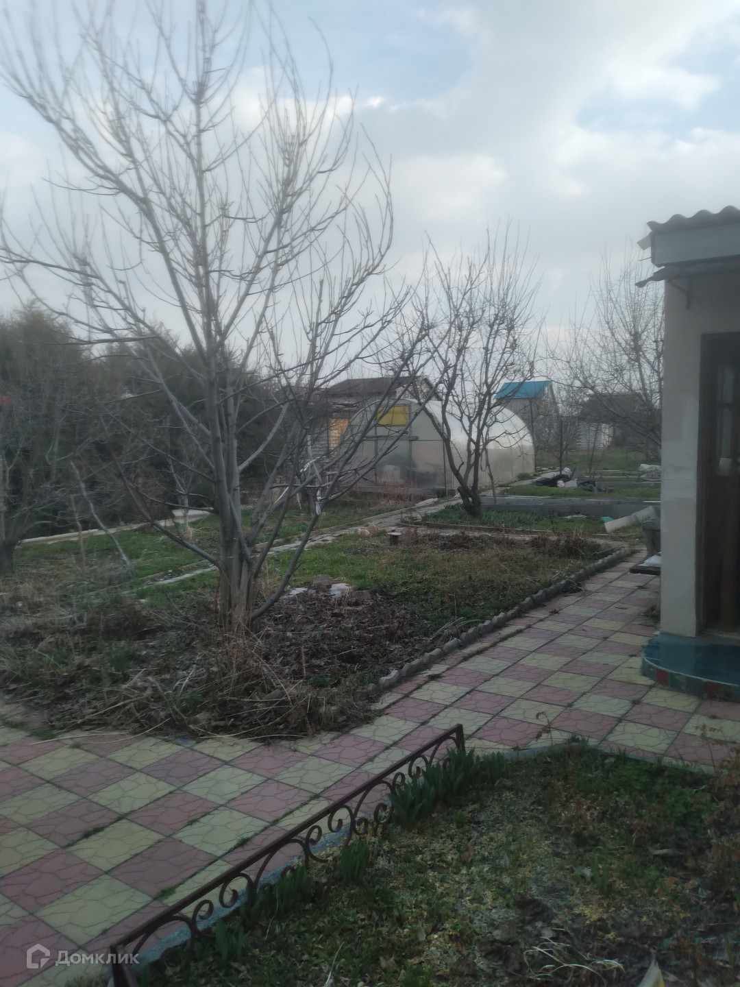 Деревья: вишня, абрикос, яблони, слива, виноград, клубника, малина, цветы.