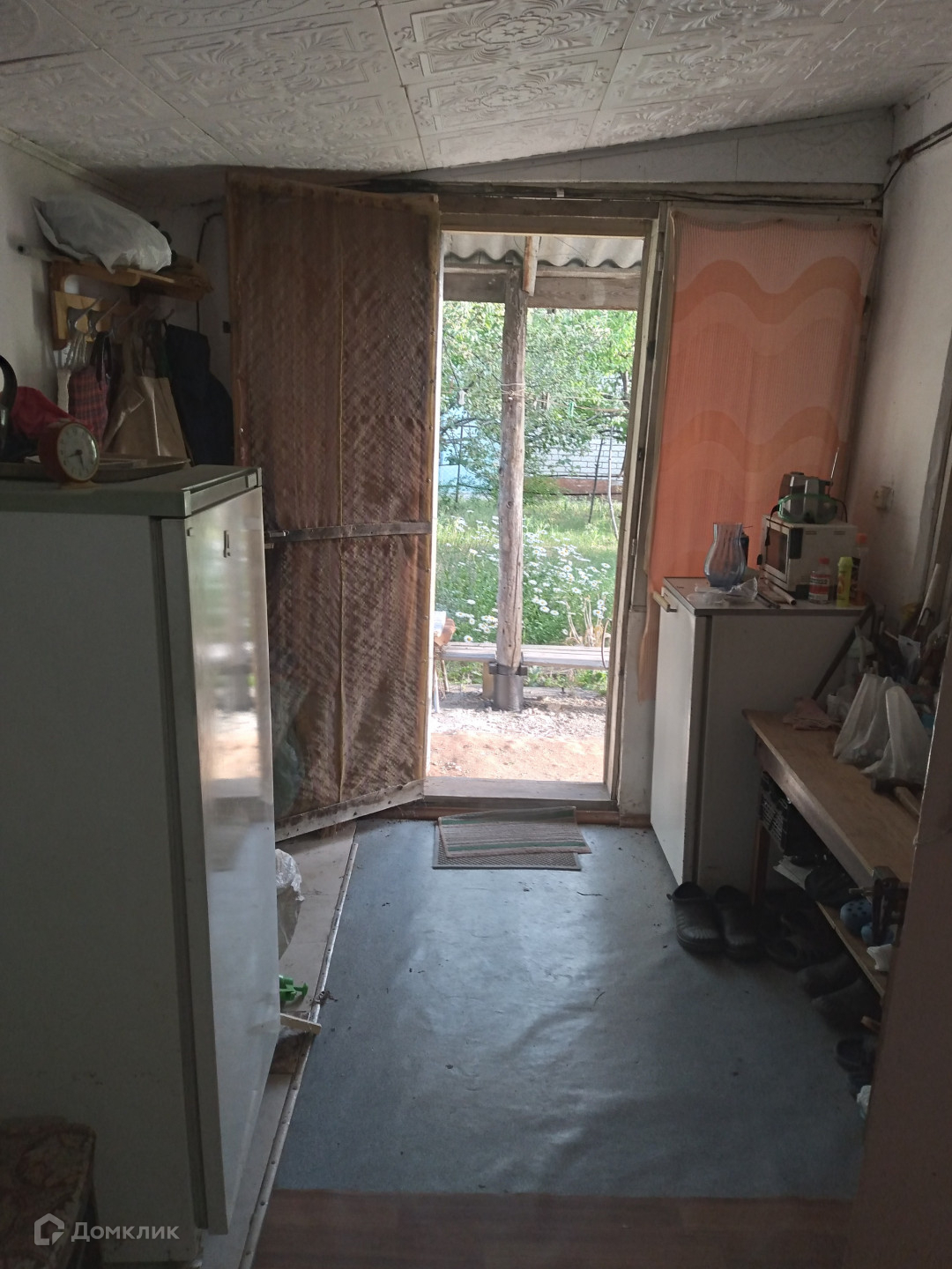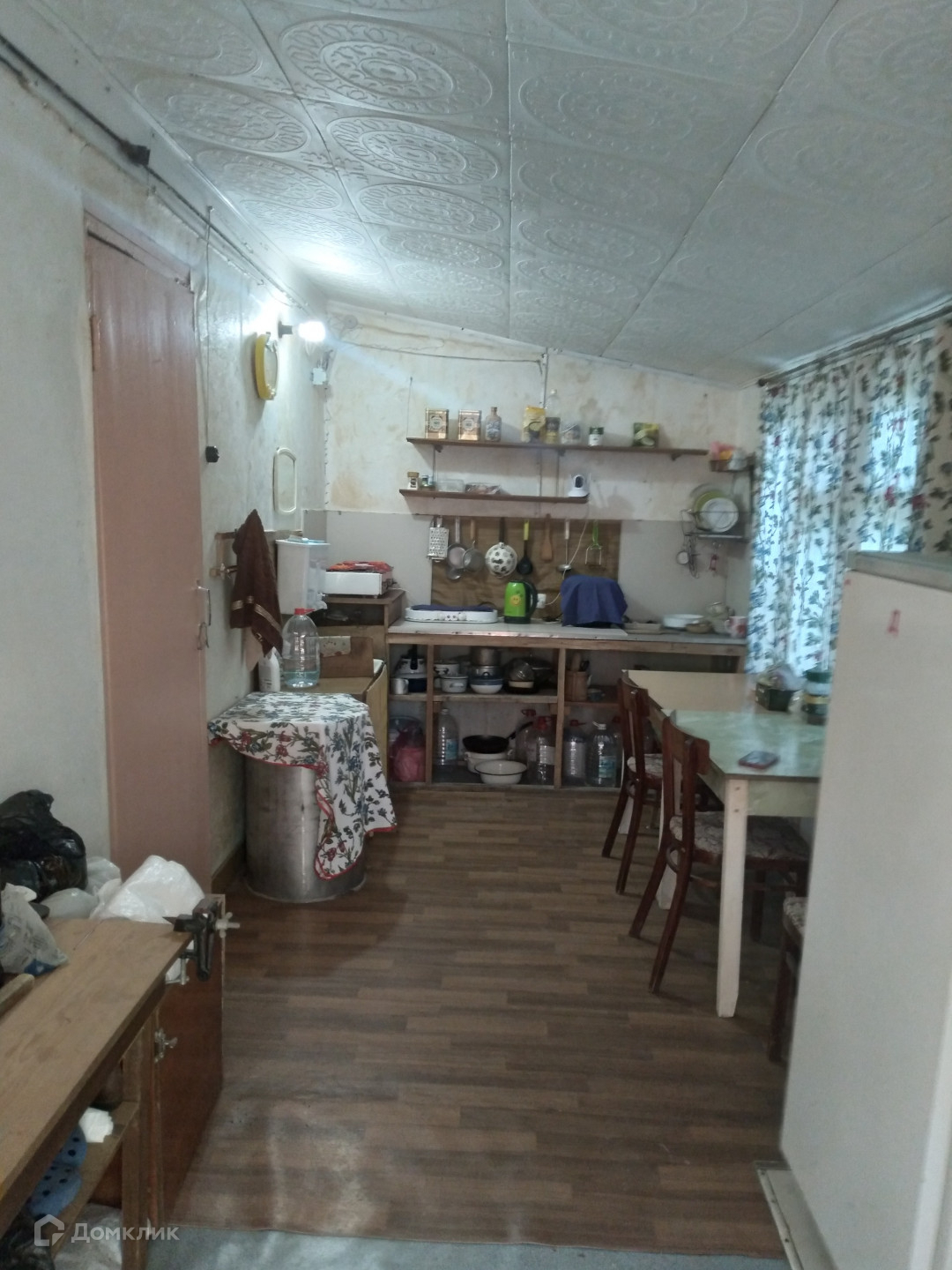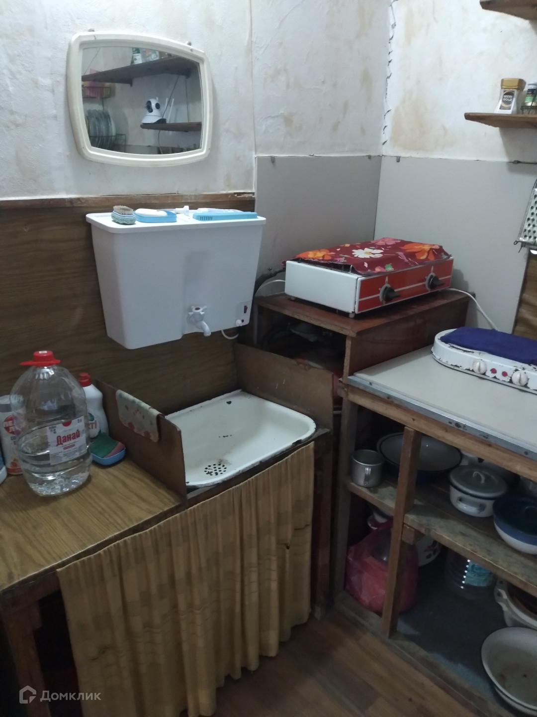 В доме имеются 4 комнаты (1 этаж- кухня + прихожая с лестницей и 2 жилые комнаты, 2 этаж- терраса и 1 жилая комната). В доме требуется косметический ремонт.  На кухне установлен нагреватель горячей воды.