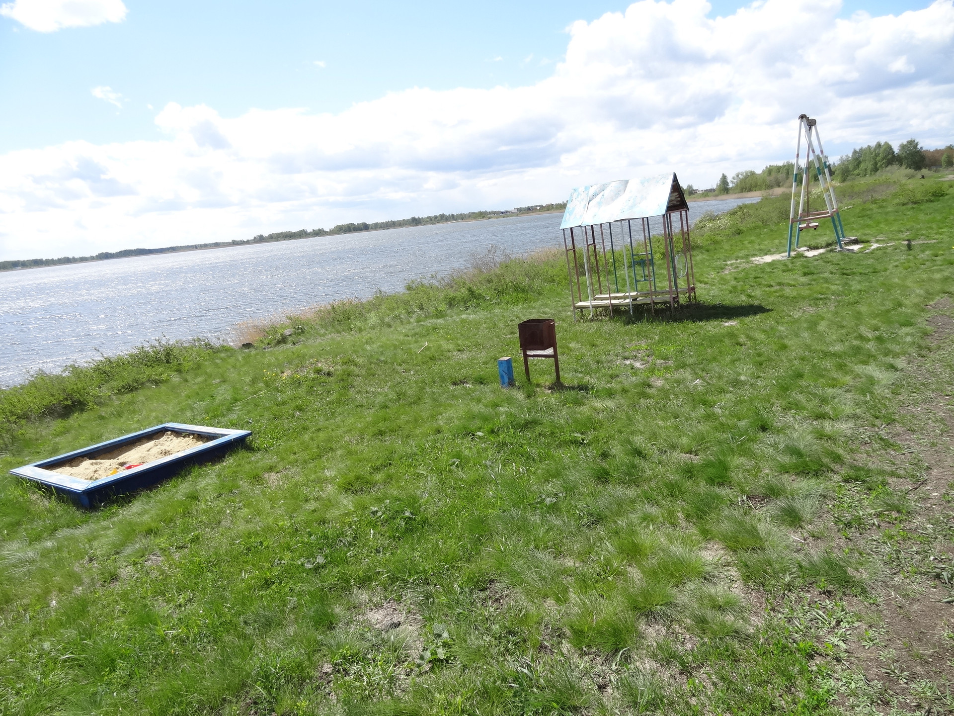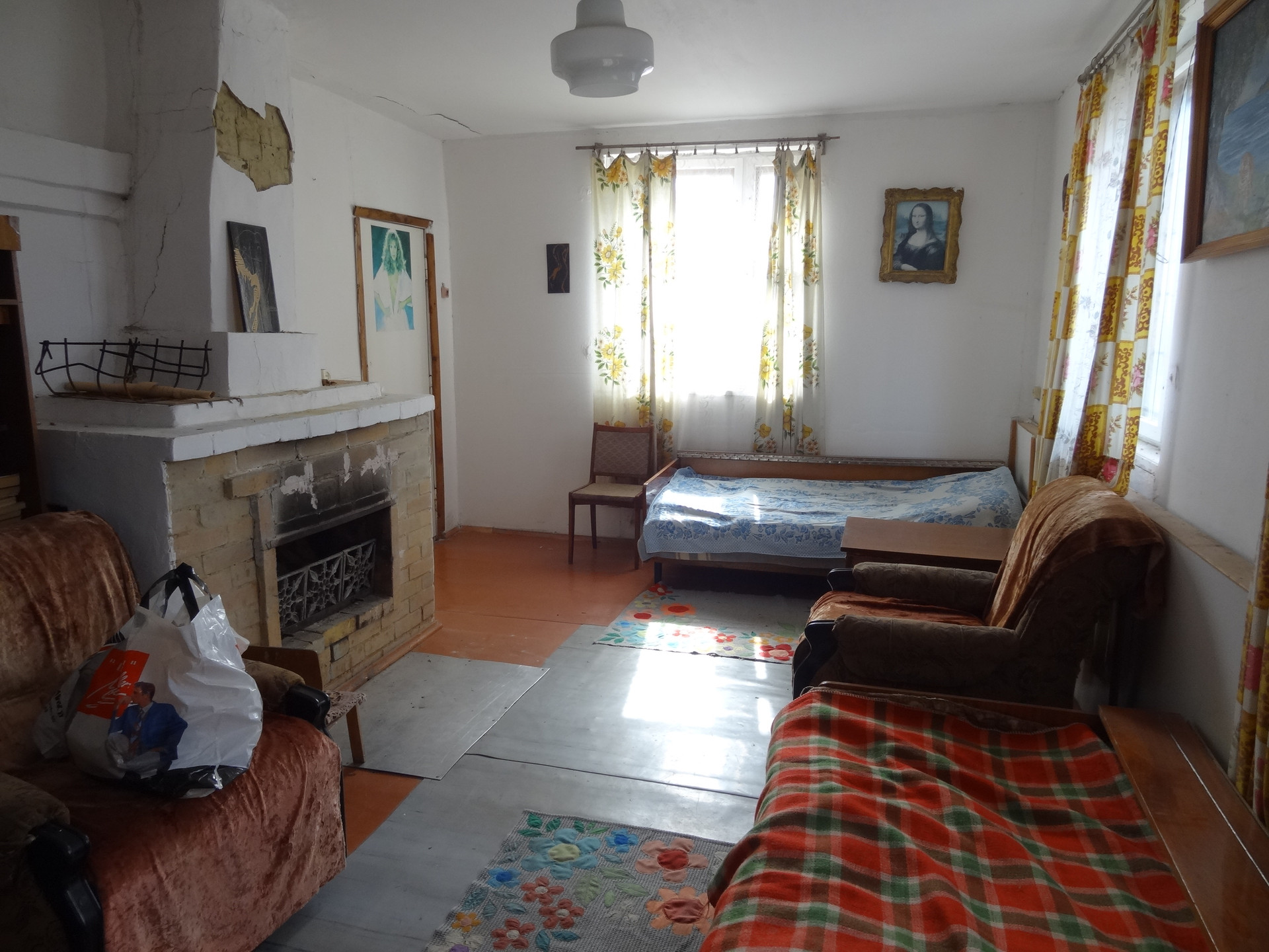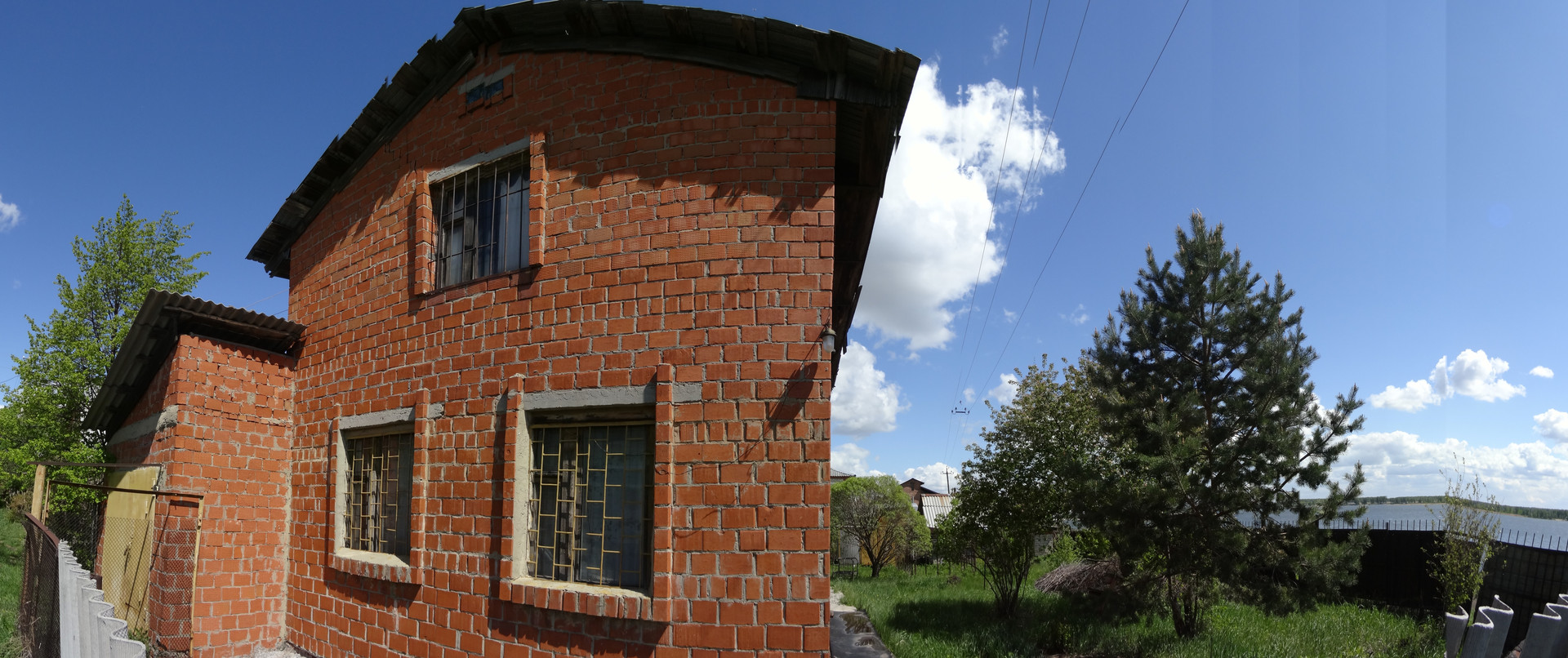 А из нашего окна, водная гладь озера видна и на берегу есть детская площадка. Электричество, печное отопление, в зале камин. Крыша из профнастила. Плиты перекрытия в доме жби.