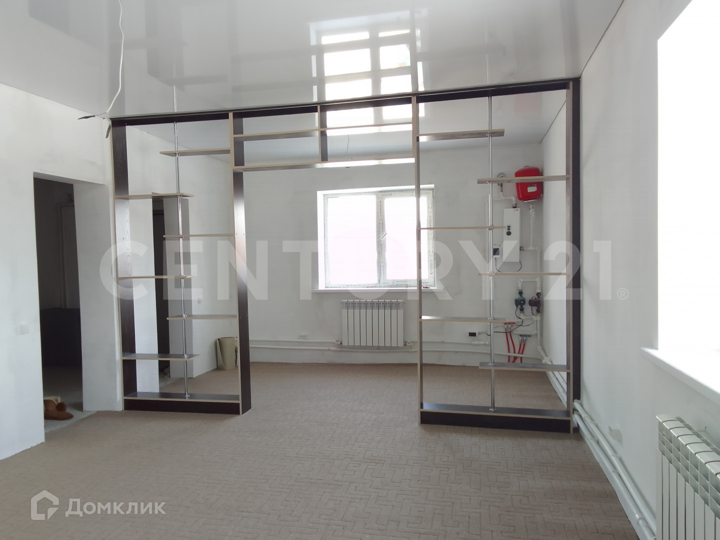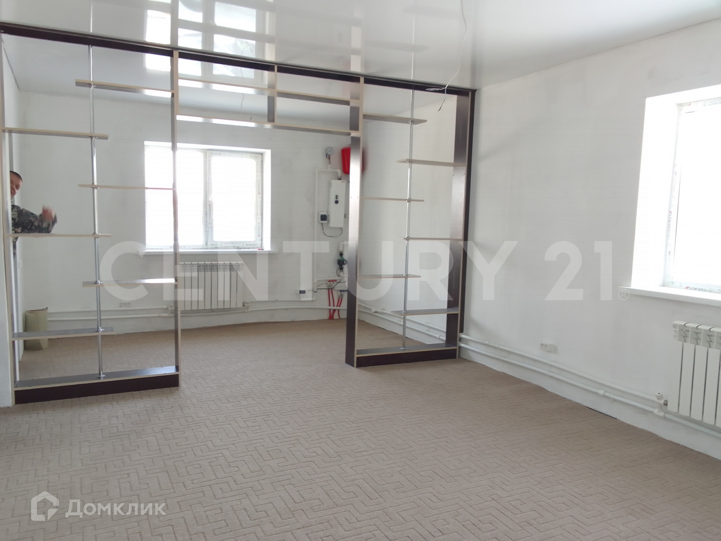 На входе прихожая. На первом этаже большая гостиная-кухня (ковролин) и санузел.  На первом этаже теплые полы. Натяжные потолки, предчистовая отделка. Второй этаж - две просторные комнаты.