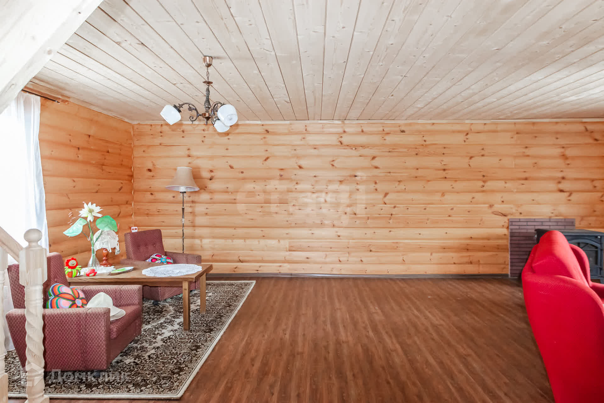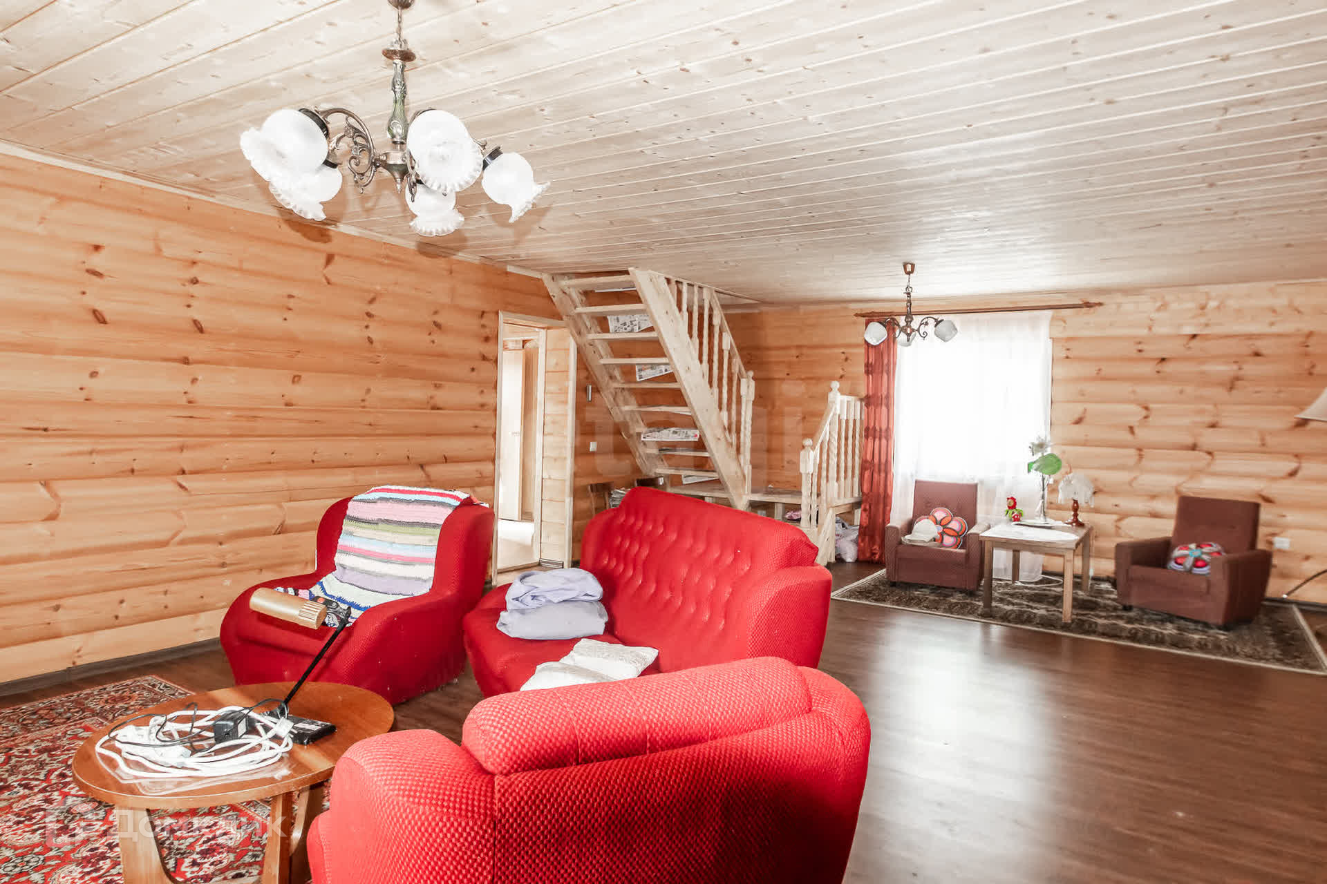 Дом размером 9*9 метров, выполненный из оцилиндрованного бревна и установленный на сваях, общей площадью 140 кв.м., двухэтажный, построен в 2017 году.