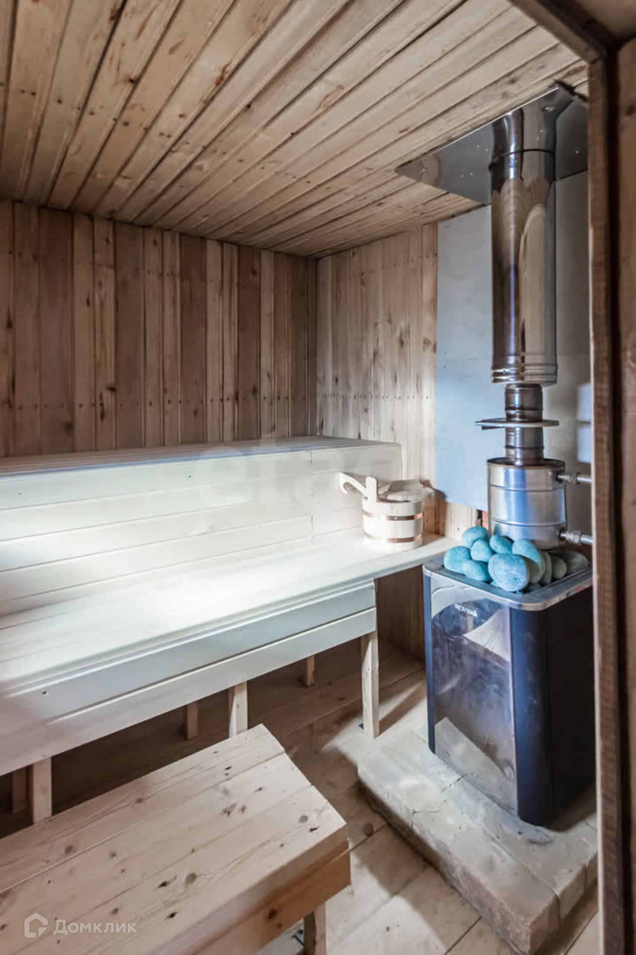На первом этаже расположены кухня, ванная комната и большая гостиная с печью-камином. На втором этаже находятся две спальные комнаты. Дом готов к круглогодичному проживанию (имеется электрическое и печное отопление, теплые полы). Все удобства в доме (септик, вода подведена из колодца, есть водонагреватель).