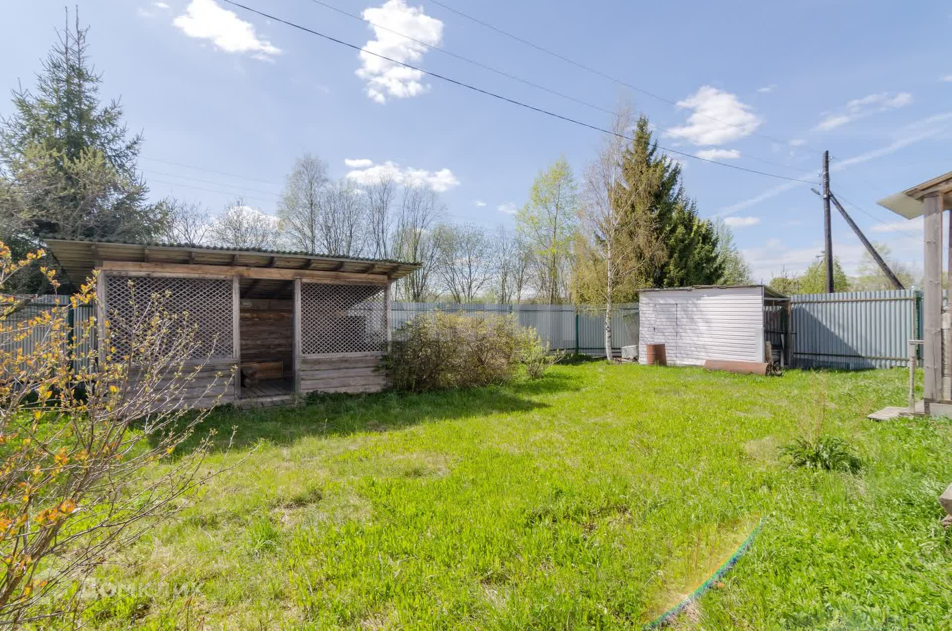 Участок площадью 9 соток, огорожен забором из профнастила (два въезда на участок, парковочные места отсыпаны щебнем на 2 автомобиля), круглогодичный подъезд к участку. На участке расположены баня размером 6*6 метров (новая), беседка, хозяйственные постройки, летний водопровод. Река находится в менее чем 100 метрах от дома.