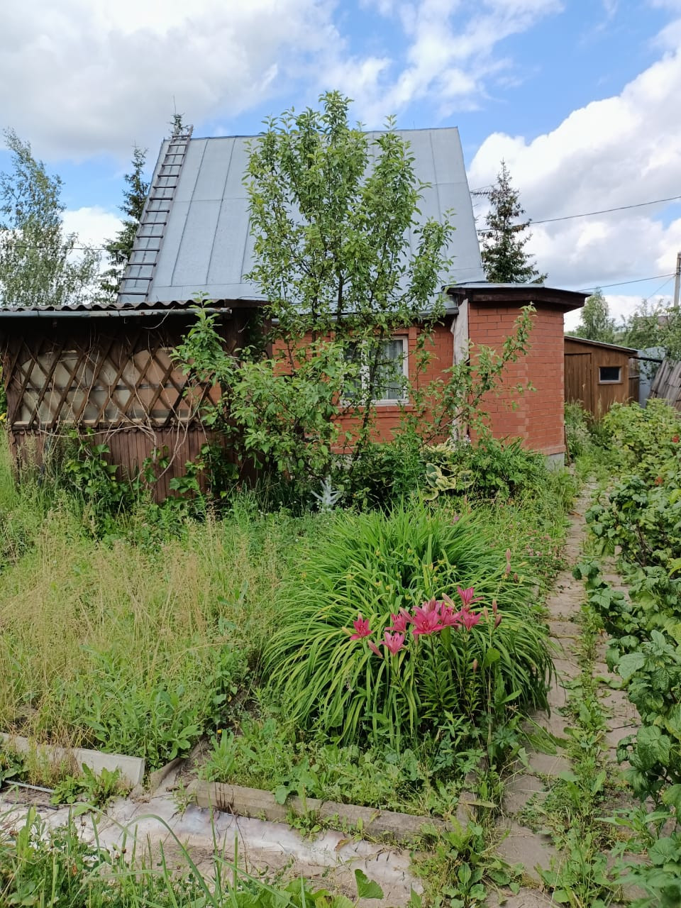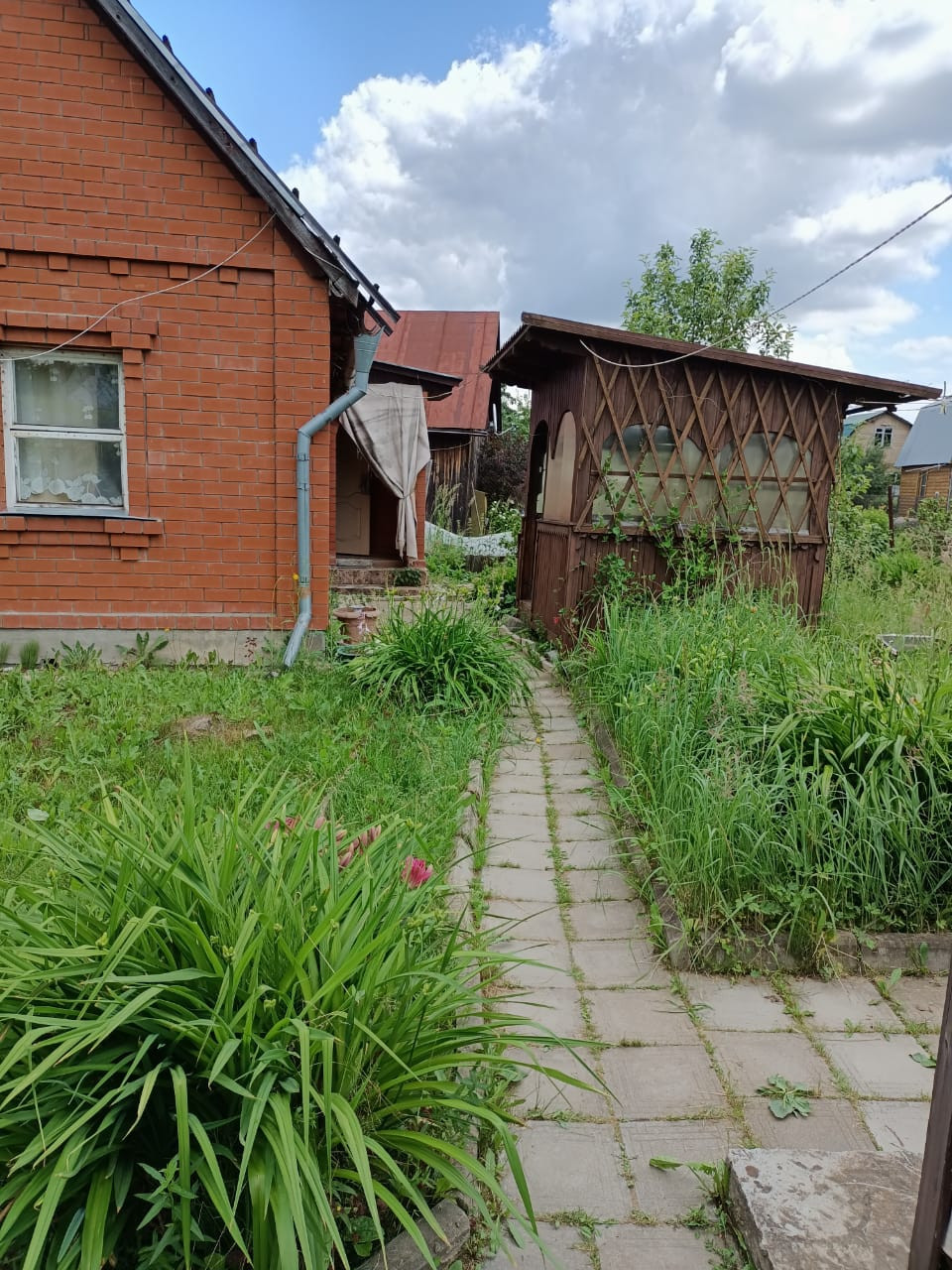 Участок ухожен, есть беседка, теплицы, место для барбекю, баня, сарай, колодец ( вода поливочная )