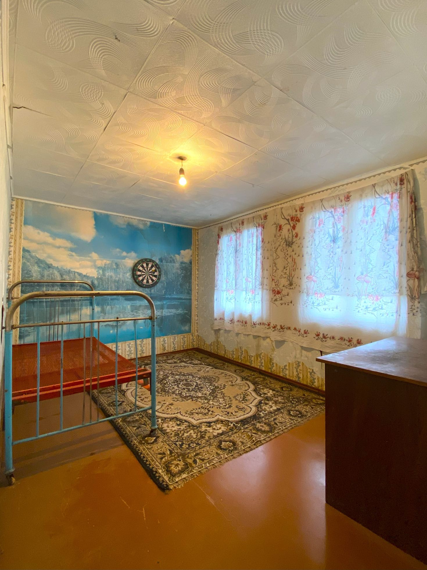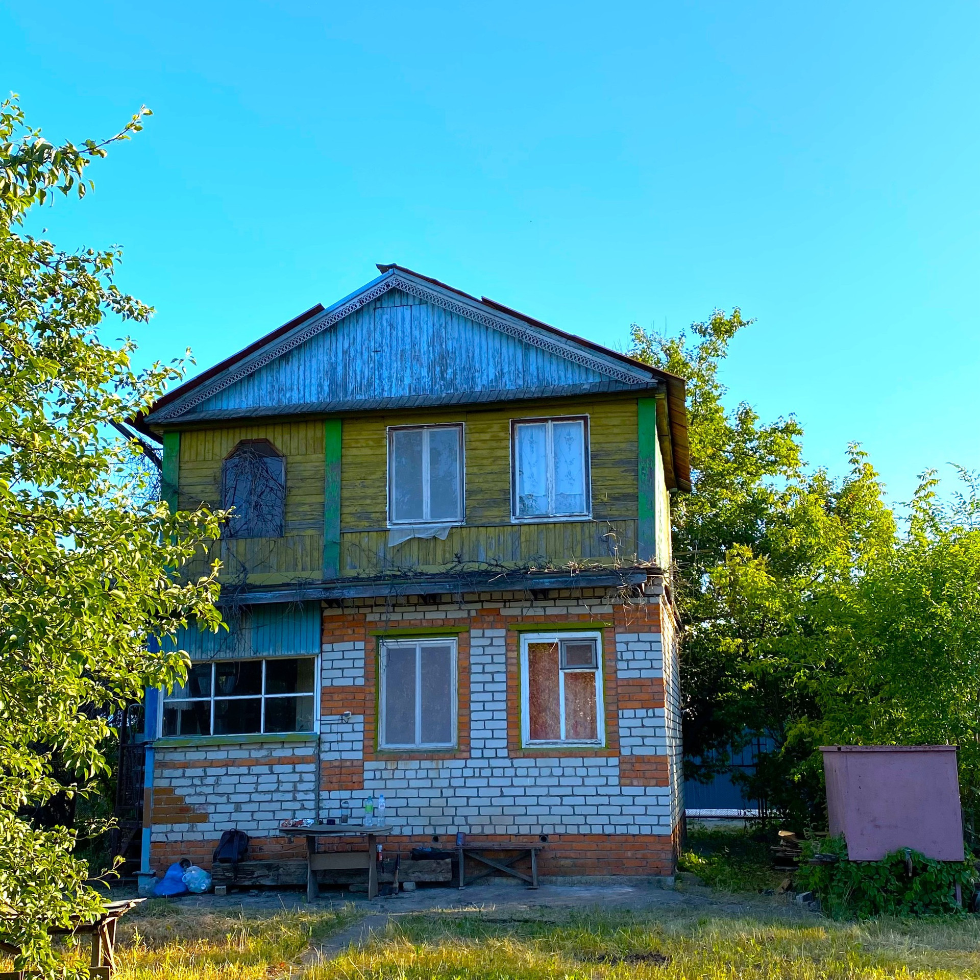 • два этажа + чердак. 1 этаж кирпич, 2 дерево