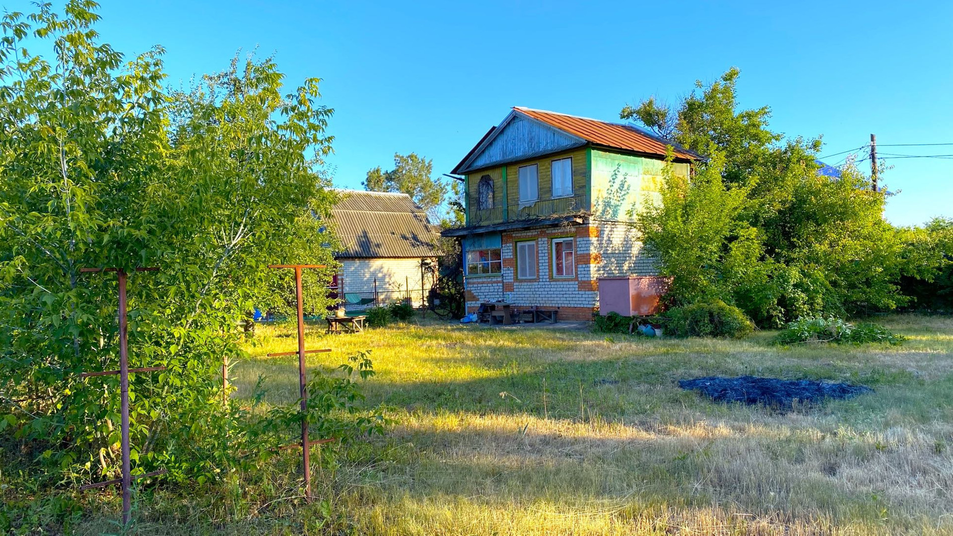 • на участке пара груш, абрикосов, скважина (нуждается в чистке), хозблок, туалет