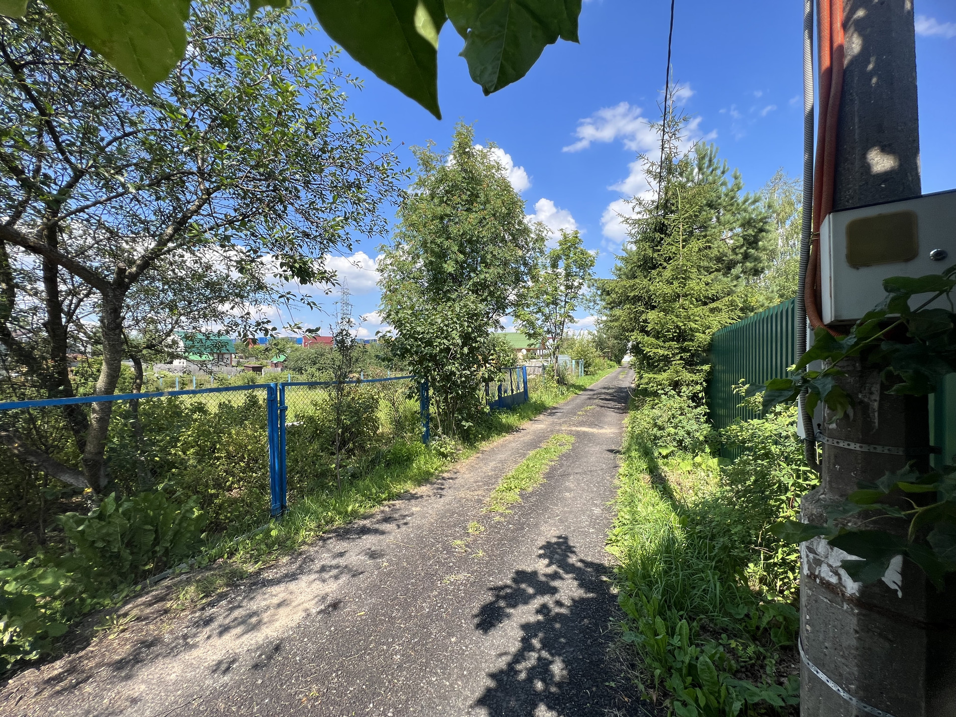 Дороги внутри СНТ из гравийной и асфальтовой крошки. Далеко от трассы, очень тихое место. Соседи построились. Коммуникации - 15 кВт по заявке от РОССЕТИ, столбы установлены; водоснабжение и канализацию необходимо будет установить автономные.