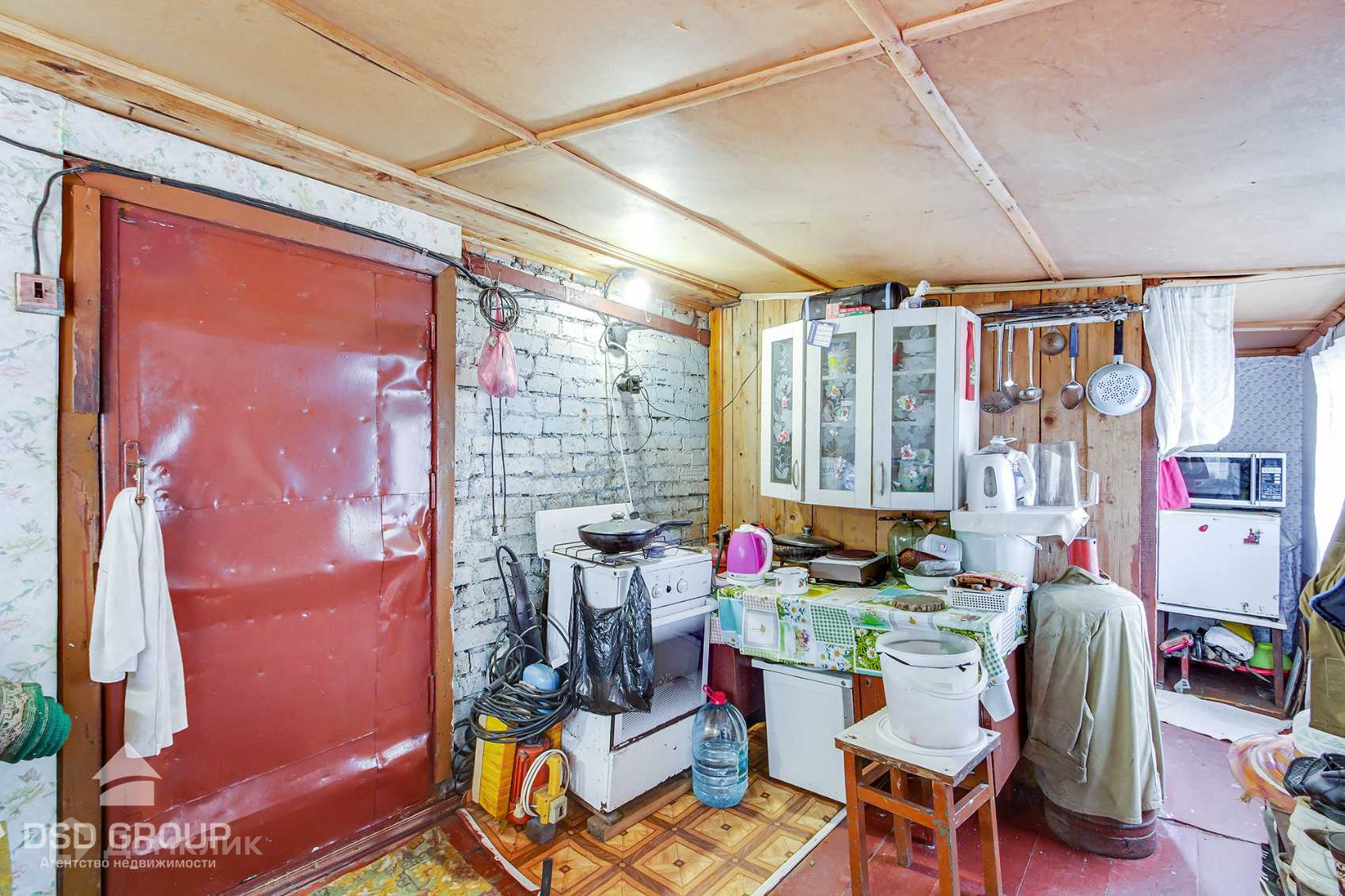 -прочный кирпичный дом 4х7 м., 1 комната, кухня, мансарда с просторной комнатой и лоджией;