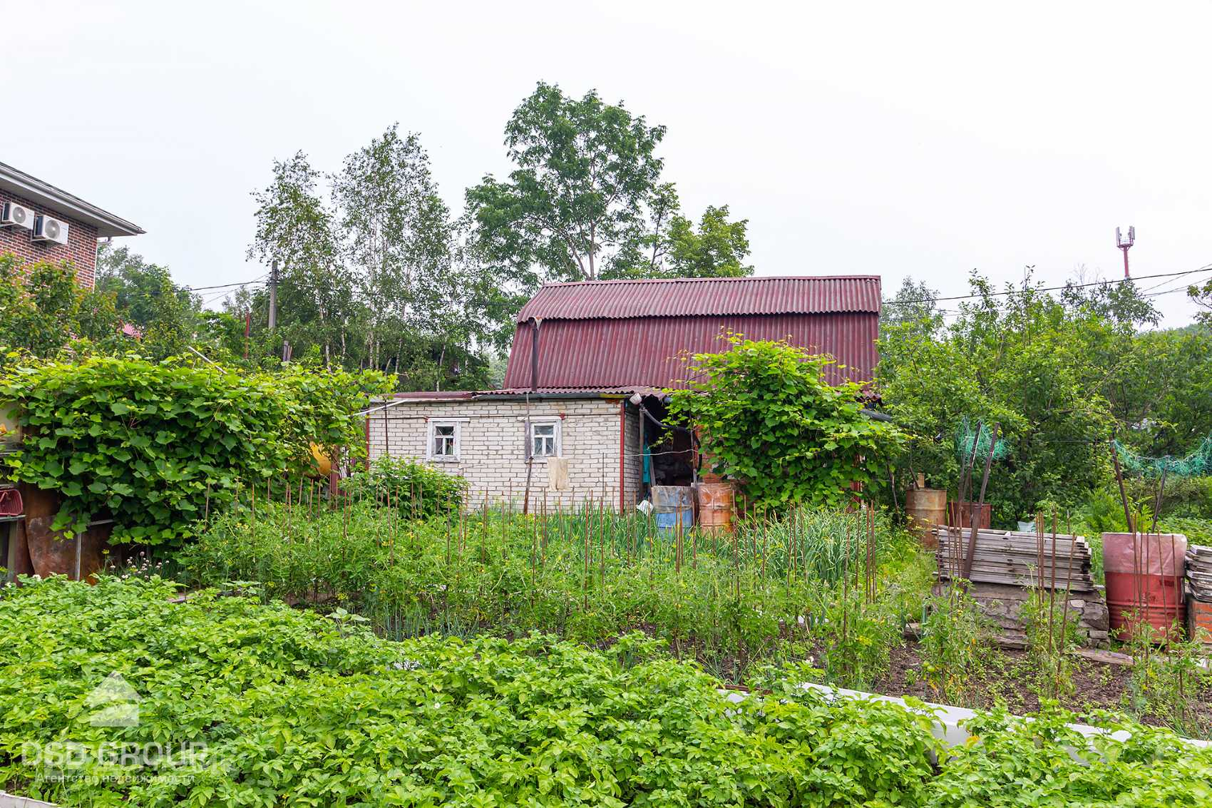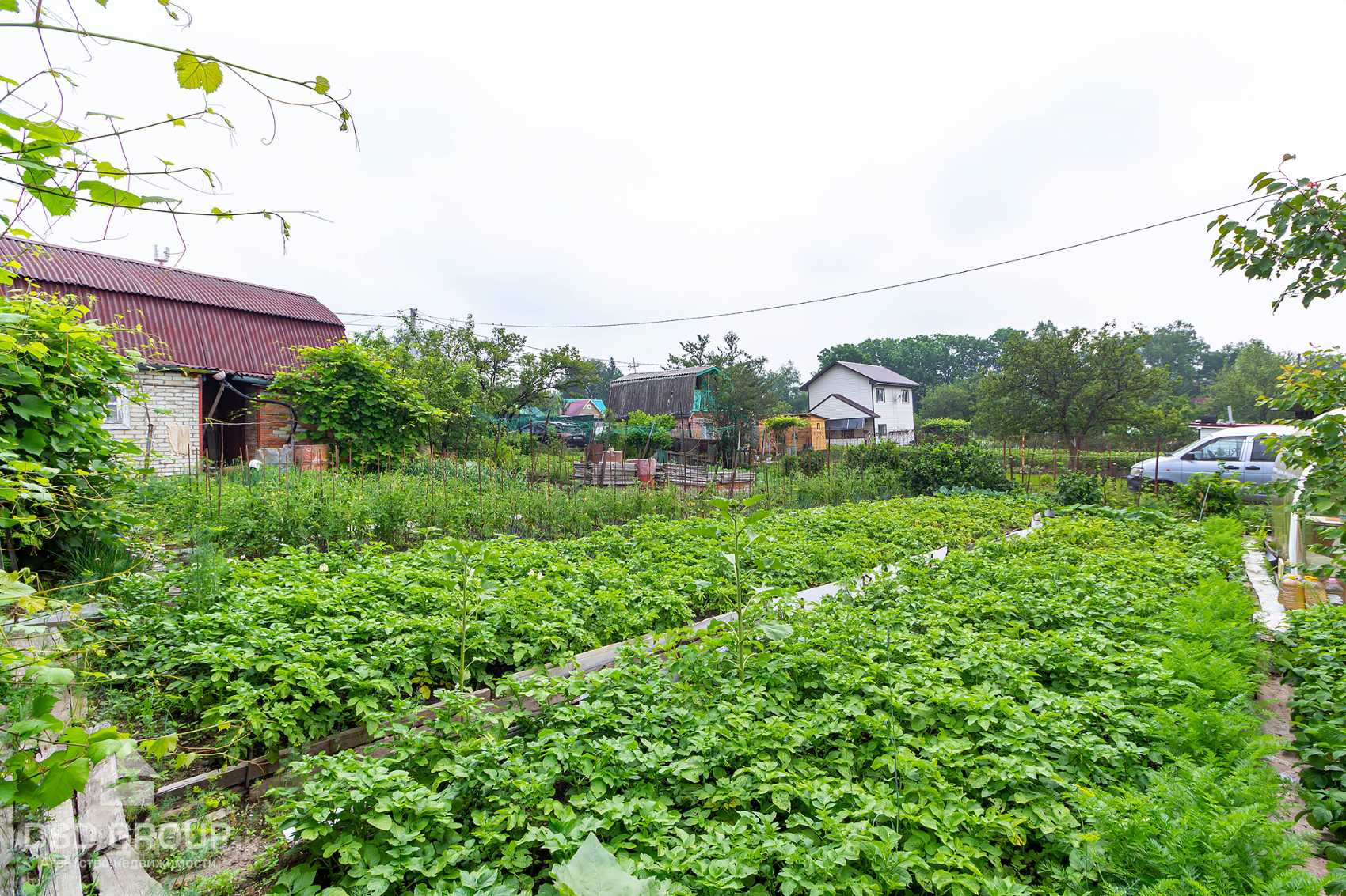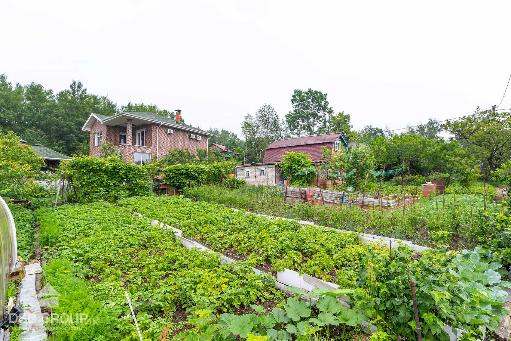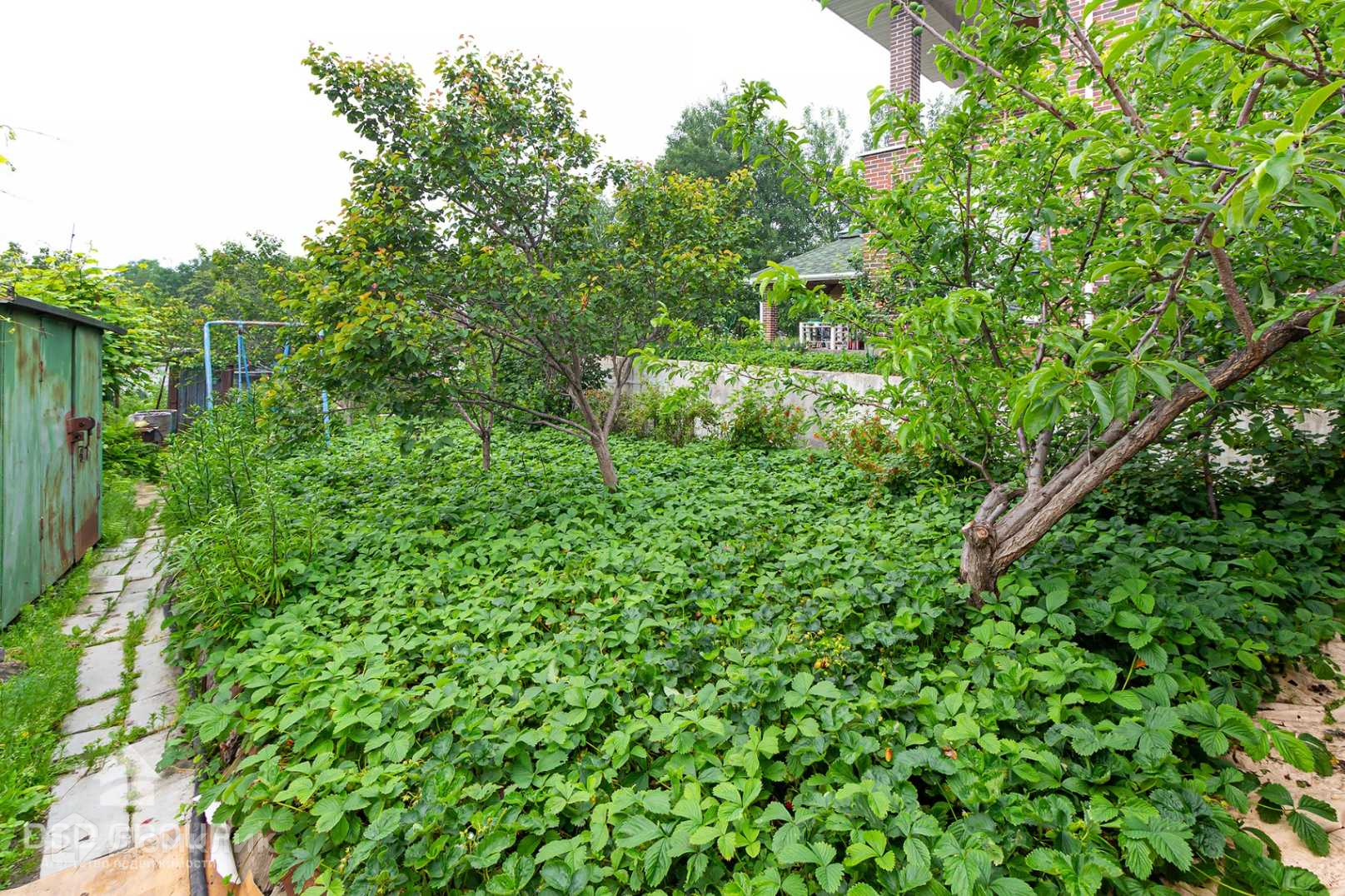 -большое количество садовых деревьев и кустарников (несколько абрикосов, яблонь, сливы, облепиха, три сорта винограда, малина, ежевика, жимолость, вишня, несколько сортов смородины, крыжовник, много клубники);