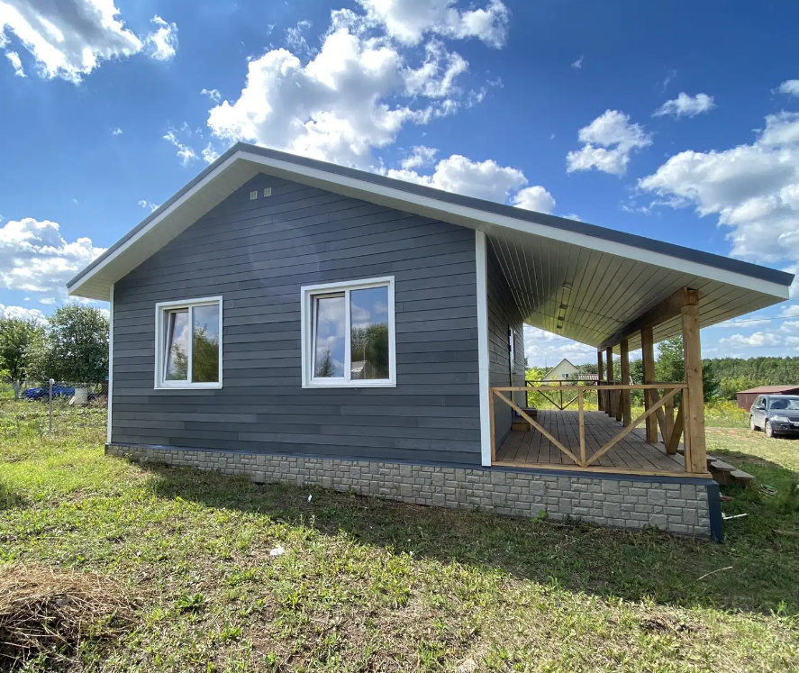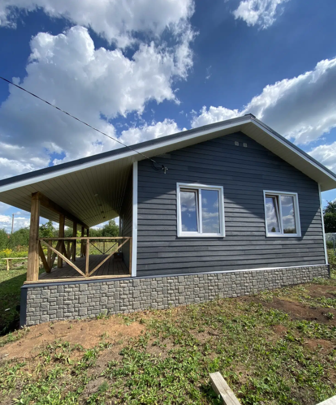 В стоимость дома входит наружная отделка, кровля –  с водосточной системой; качественная входная дверь с терморазрывом; энергосберегающие окна, внутренняя предчистовая отделка, теплый пол, разводка по дому, переливной септик.